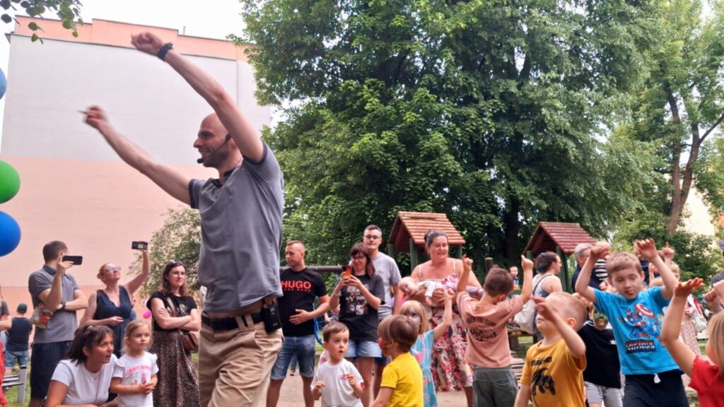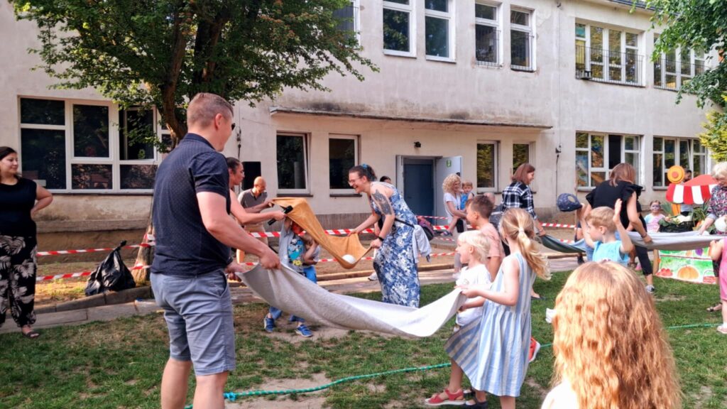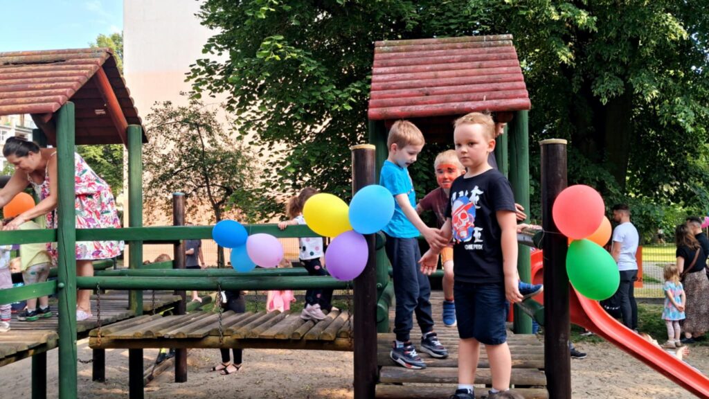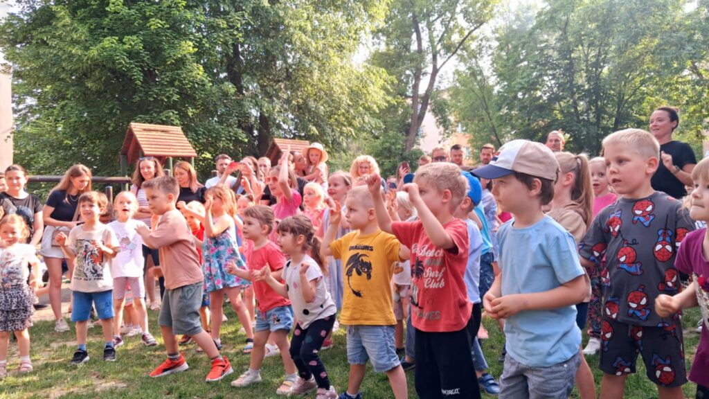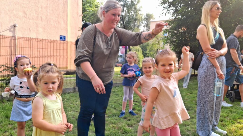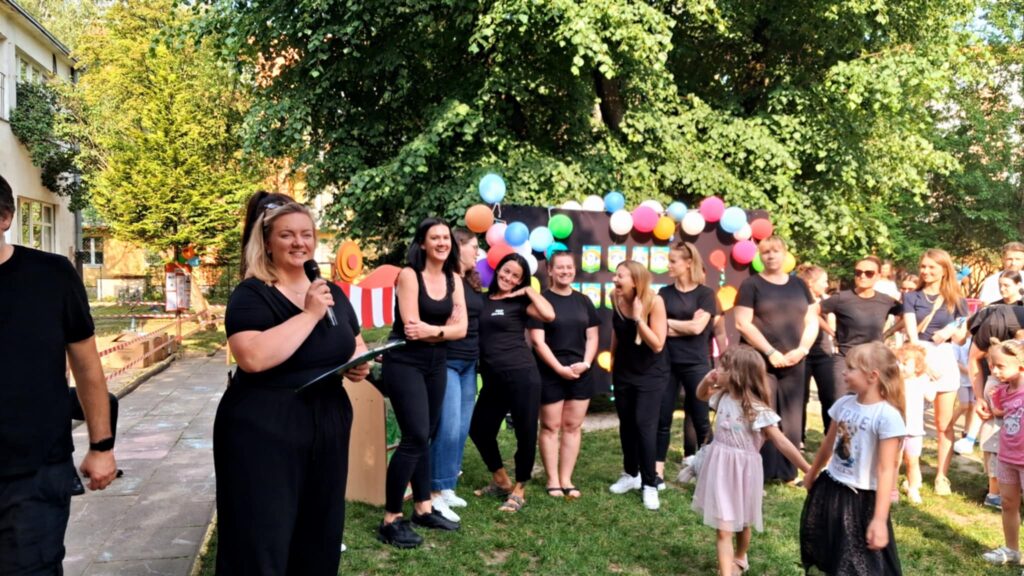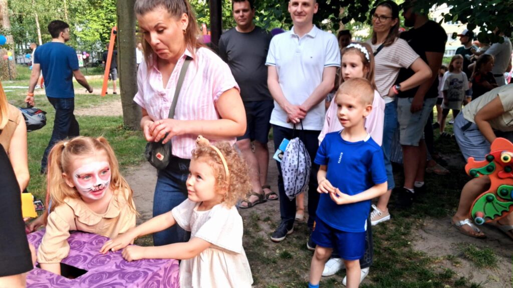 Posileni dobrym jedzonkiem dzieci i rodzice ruszyli do zabawy, a atrakcji było bardzo dużo. Przez cały czas trwania pikniku na środku ogrodu odbywały się konkursy oraz zabawy taneczne. Dodatkowo można było korzystać z wielu stanowisk tj. loteryjka, kącik sportowy, fotobudka, robienie warkoczyków, malowanie twarzy.