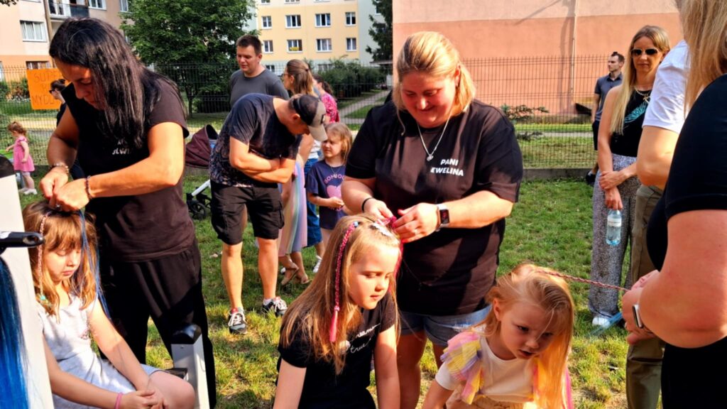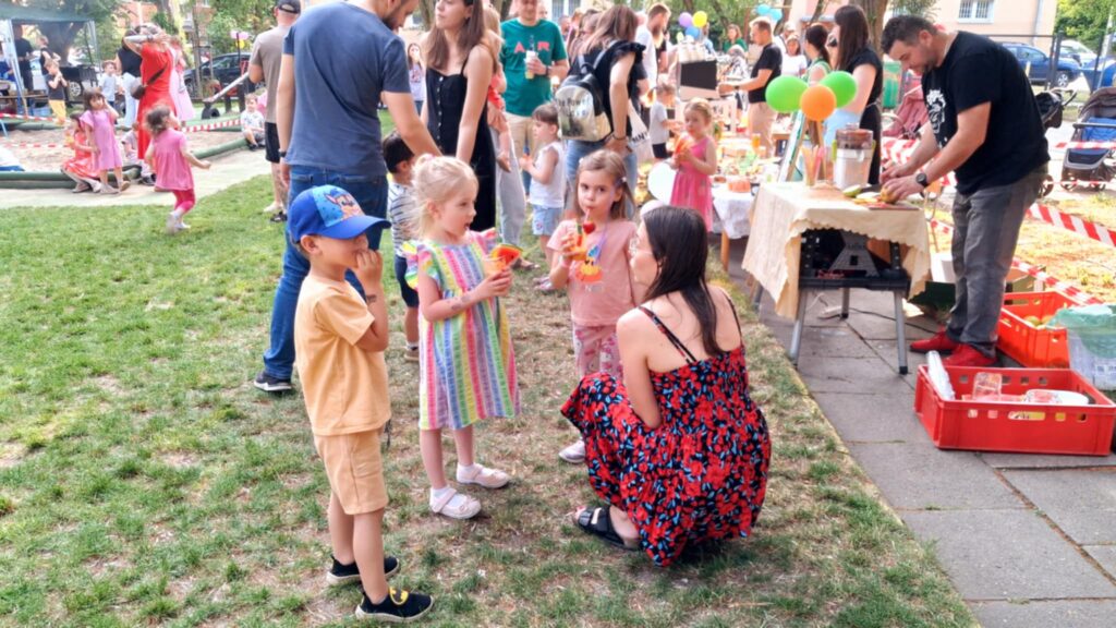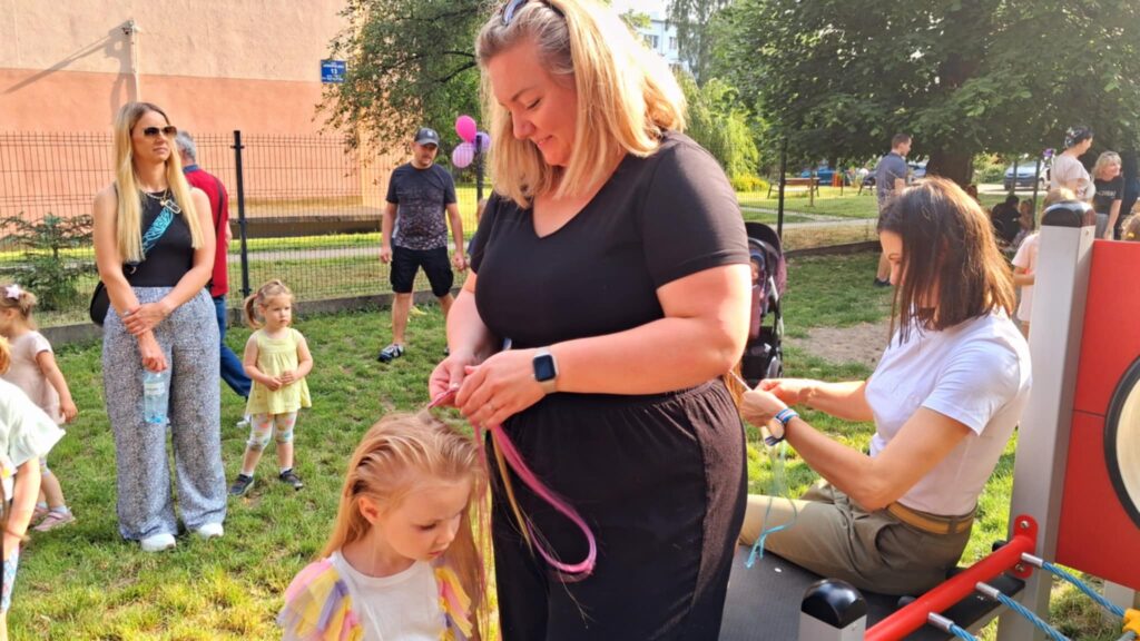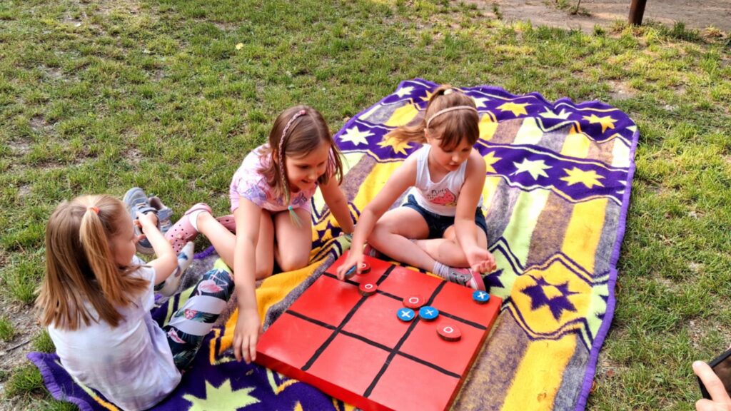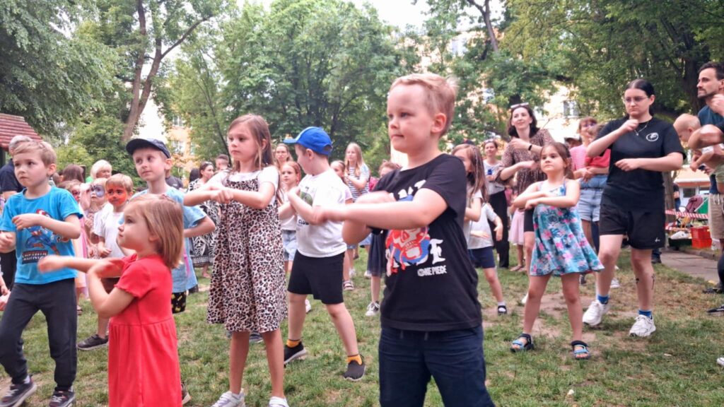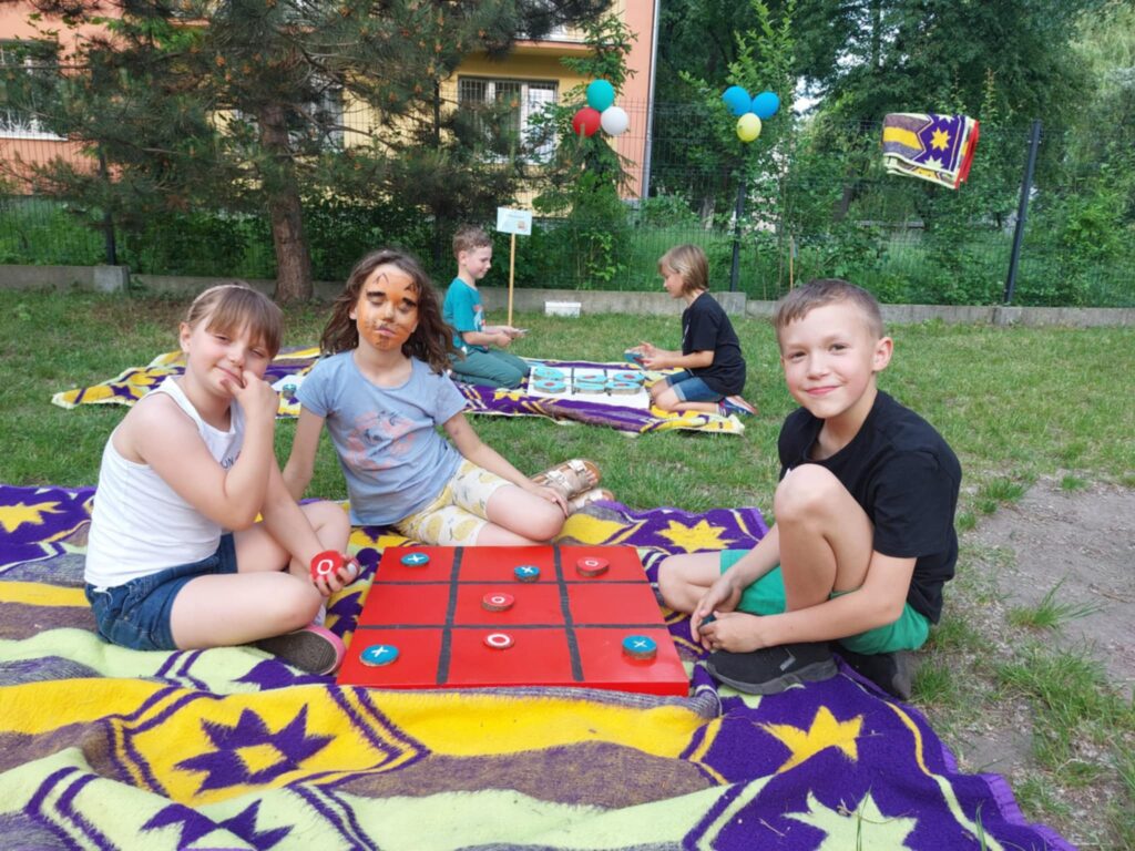 Posileni dobrym jedzonkiem dzieci i rodzice ruszyli do zabawy, a atrakcji było bardzo dużo. Przez cały czas trwania pikniku na środku ogrodu odbywały się konkursy oraz zabawy taneczne. Dodatkowo można było korzystać z wielu stanowisk tj. loteryjka, kącik sportowy, fotobudka, robienie warkoczyków, malowanie twarzy.