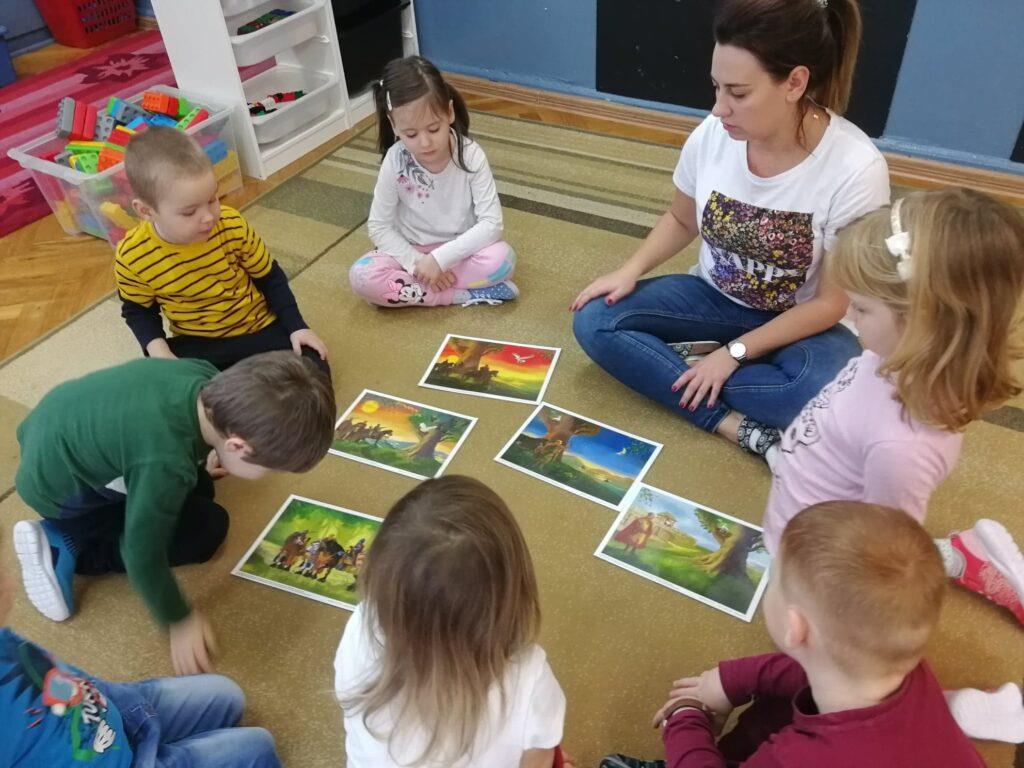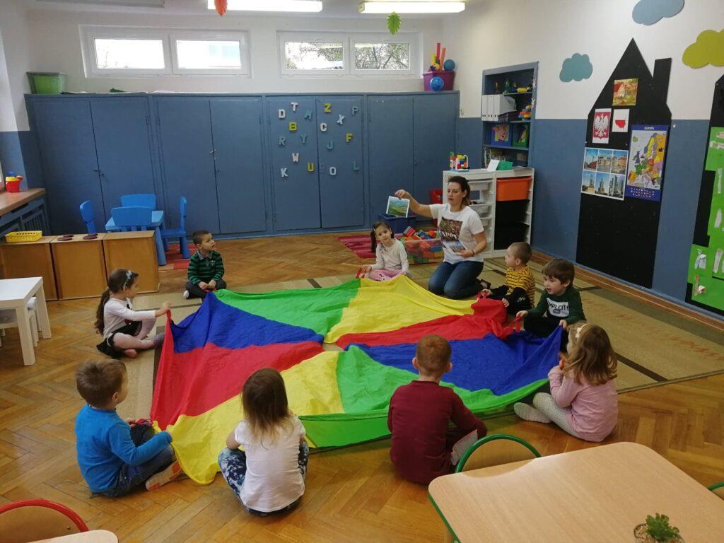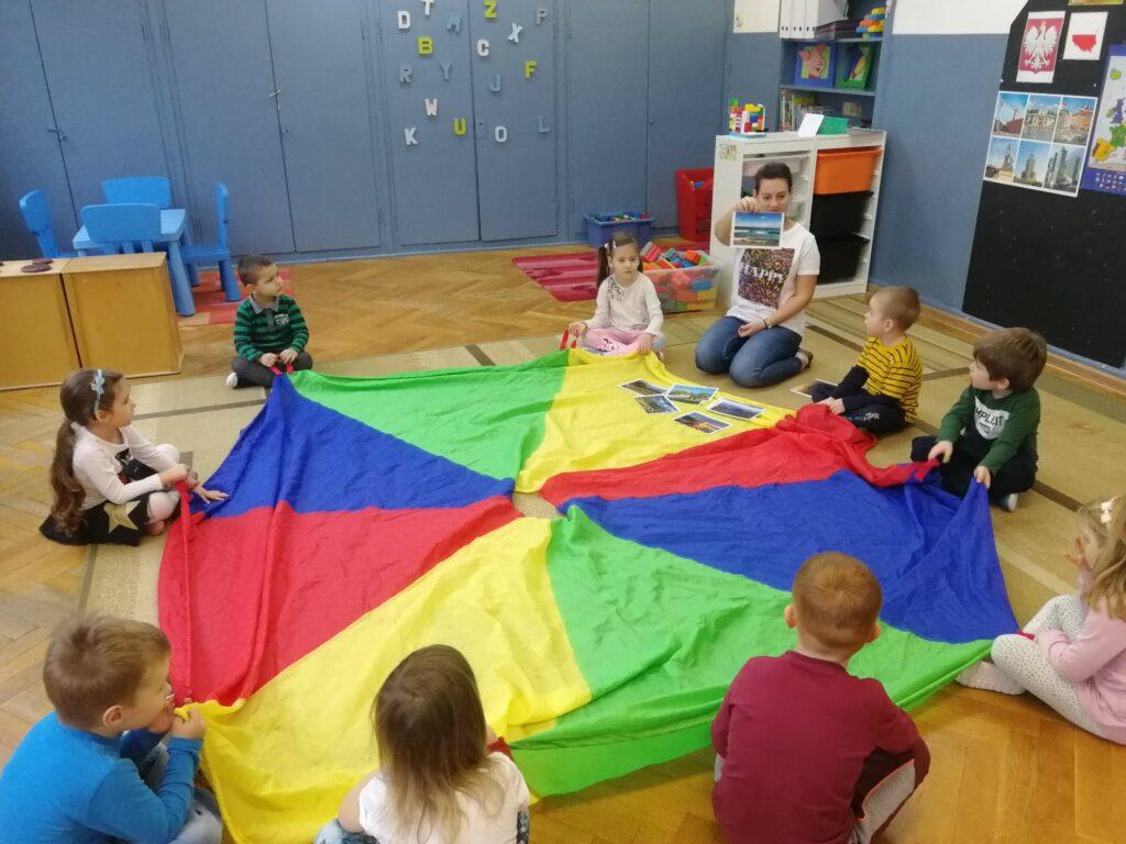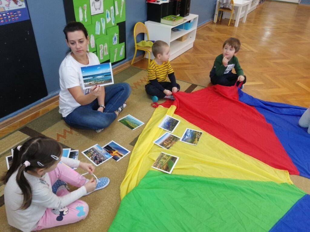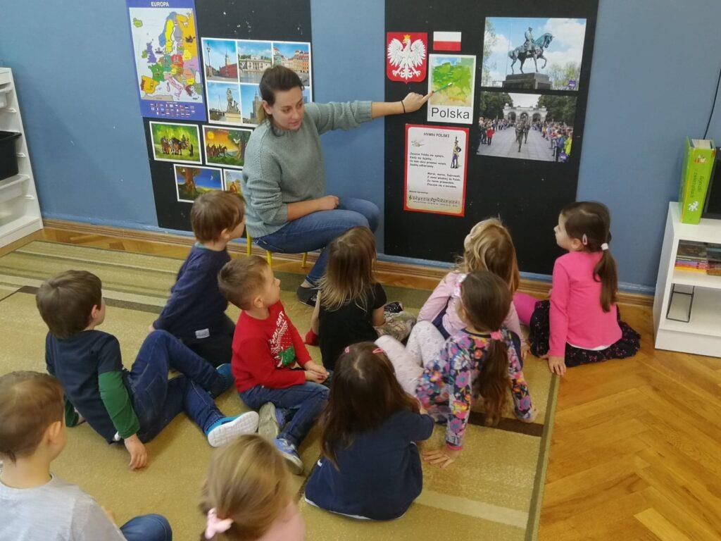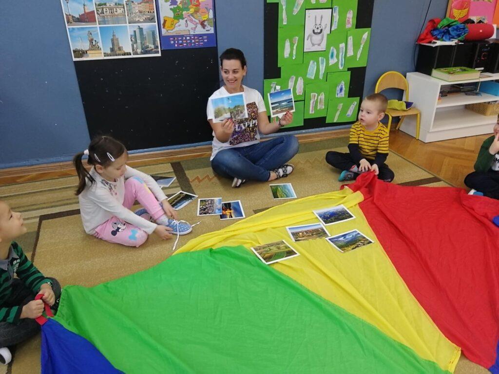 W ubiegłym tygodniu, ze względu na rocznicę odzyskania przez Polskę Niepodległości, rozmawialiśmy właśnie na jej temat. Na początku odbyliśmy podróż po Polsce, słuchając piosenki i oglądając fotografie, które nawiązywały do treści utworu. Mieliśmy okazję obejrzeć krajobrazy gór, jezior, morza, a także polskiej wsi oraz miasta. Wspólnie uzgodniliśmy, że nasza Polska to niezwykle piękny kraj 🙂