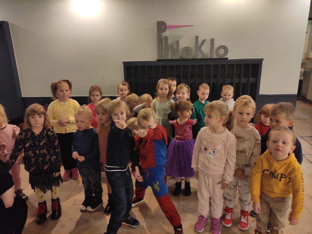 W piątek, 05 listopada dzieci z grupy Żuczków i Biedronek wybrały się do Teatru Pinokio na spektakl pt:,,Pokolorowanki”. Sztuka ta w prosty sposób przybliża dzieciom strefę zmysłowego poznawania świata za pomocą kolorów. Na początku jest biel. Podczas całego przedstawienia dzieci razem z aktorami zastanawiają się jak pokolorować biały świat oraz jak stworzyć kolory. Zabawa farbami, barwnikami, dźwiękami i różnymi ciekawymi przedmiotami stworzyła niesamowitą opowieść o odkrywaniu otaczającego nas świata. Wszystkie dzieci były zafascynowane muzyką i kolorami jakie pojawiały się na scenie oraz faktem, że na koniec wspólnymi siłami udało się ,,Pokolorować świat”.