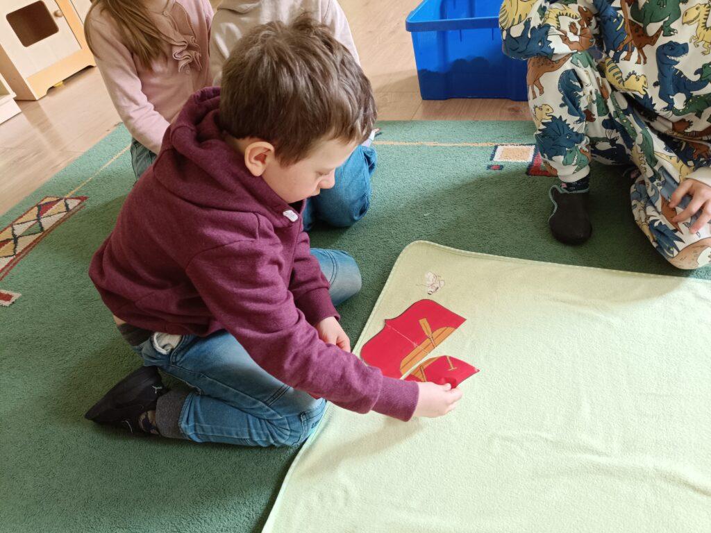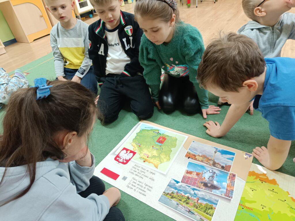 z zabawą przedszkolaki poznawały symbole narodowe oraz wspaniałe miasta naszego kraju. Szczególną uwagę zwróciliśmy na Łódź. Słuchaliśmy z uwagą legendy o Januszu i powstawaniu Łodzi. Szukaliśmy na mapie, gdzie znajduje się Łódź. Oglądaliśmy albumy, przewodniki przedstawiające naszą miejscowość. Rozmawialiśmy o budynkach jakie znajdują się w naszej miejscowości, gdzie chcielibyśmy mieszkać. Podczas tego tygodnia dzieci kształtowały miłość