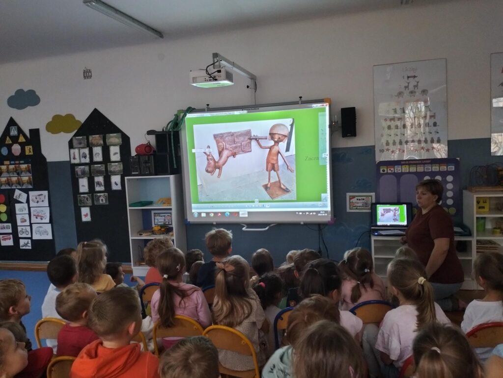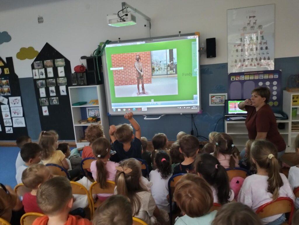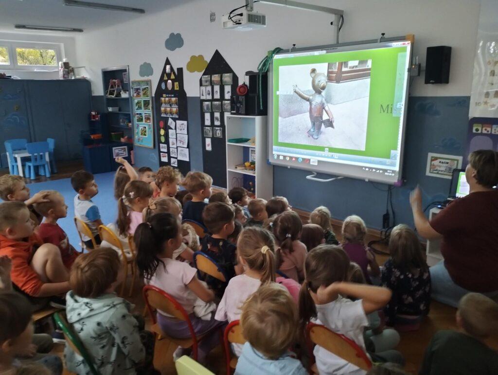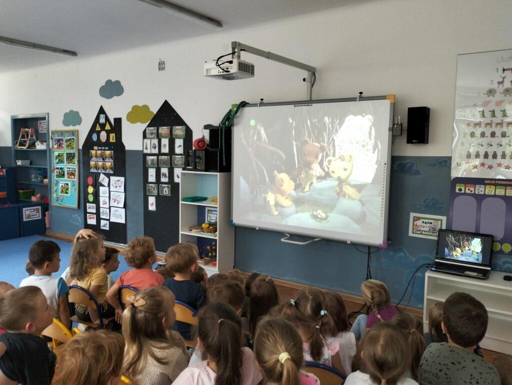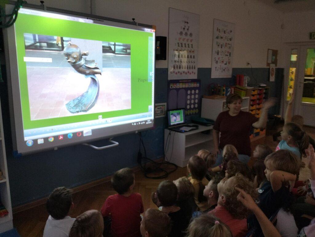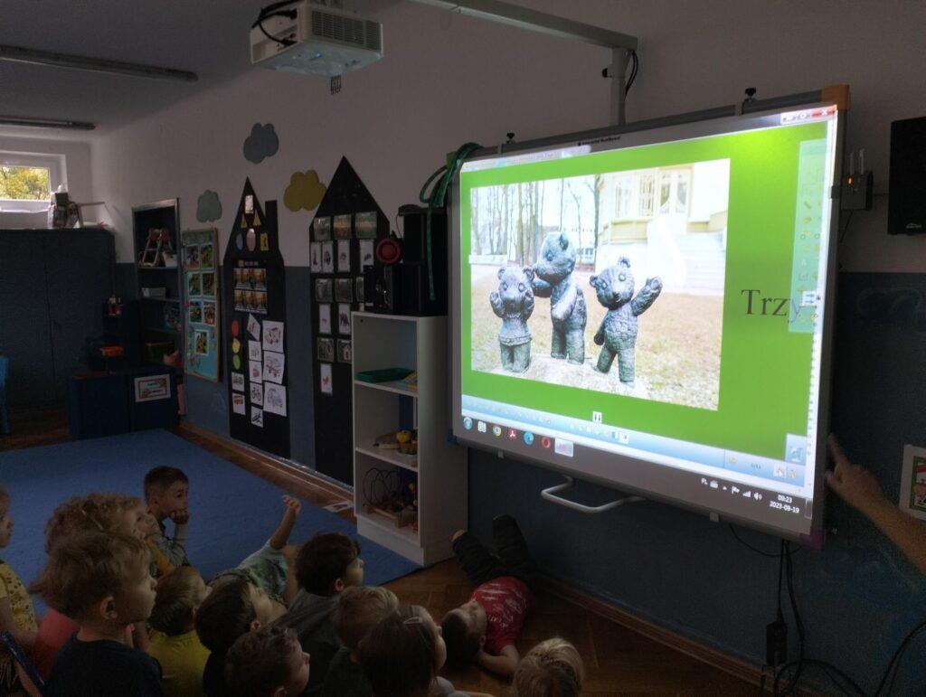 Pierwszym zadaniem w ramach realizacji innowacji pedagogicznej ,,Śladami Łódzkich Bajek”, było obejrzenie prezentacji przedstawiającej 10 pomników postaci z bajek stworzonych przez łódzki Se-Ma-For. Dzieci z grupy Wiewiórek i Sów dowiedziały się, gdzie dokładnie znajdują się wszystkie pomniki i jakie są ich nazwy. Na koniec obejrzeliśmy bajkę ,,Trzy Misie” ponieważ już niebawem będzie to pierwszy pomnik, który odwiedzimy.