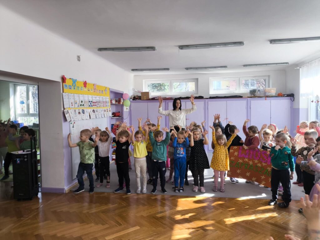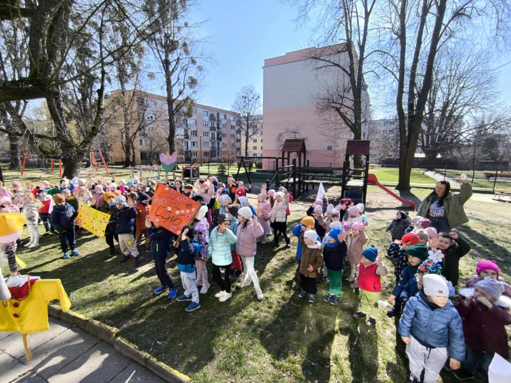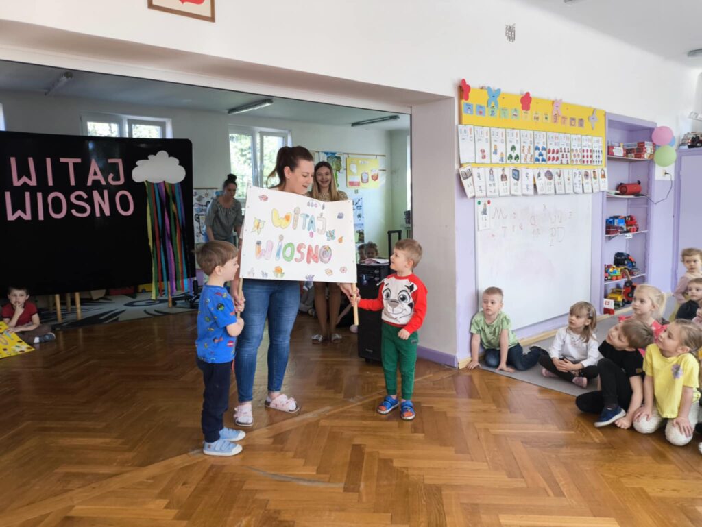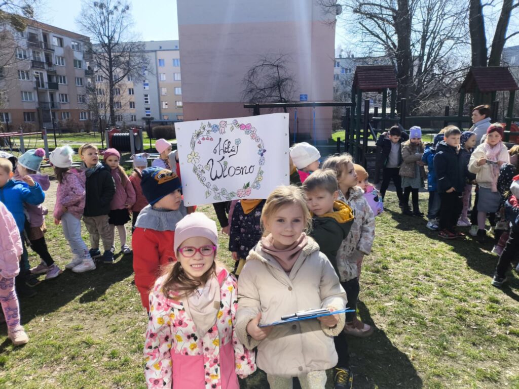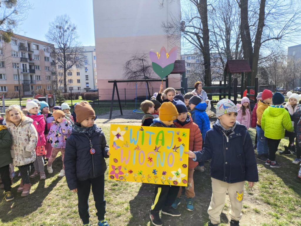 W naszym przedszkolu co roku hucznie świętujemy Pierwszy Dzień Wiosny. Tym razem rozpoczęliśmy ten dzień od wspólnych zabaw tanecznych i ruchowych, rozwiązywania zagadek wiosennych. Następnie każda grupa zaprezentowała swój plakat i hasło na powitanie Pani Wiosny. Po czym rozdane zostały zadania specjalne, które należało wykonać podczas spaceru po okolicy przedszkola. Na koniec po wykonaniu i zweryfikowaniu wyników zadań, pożegnaliśmy Marzannę.
