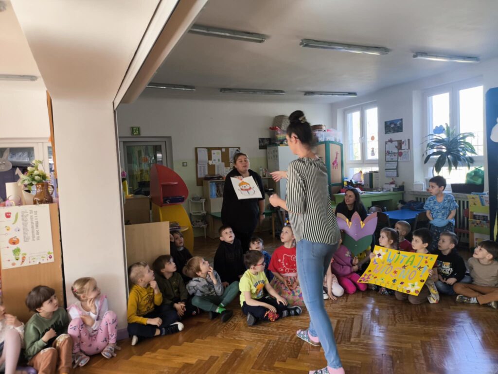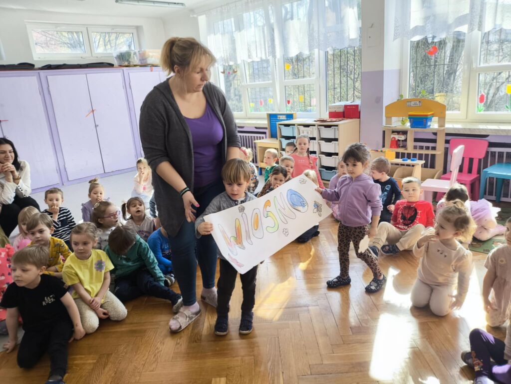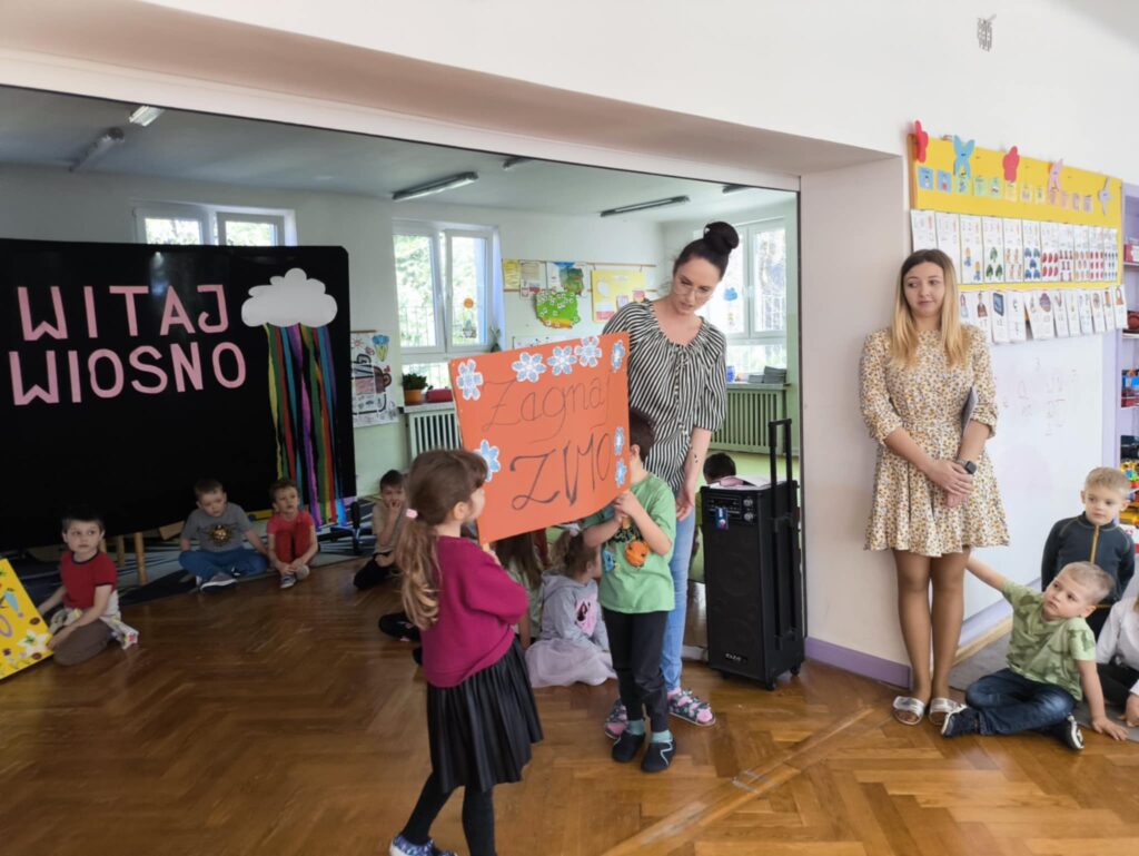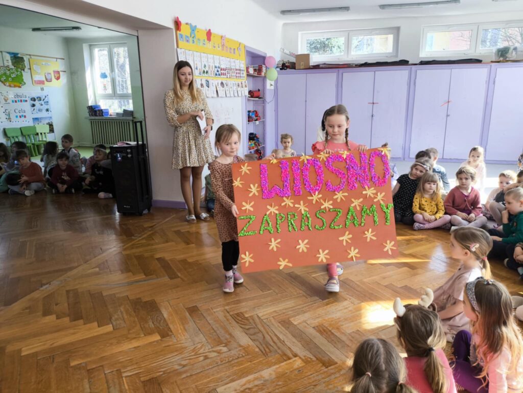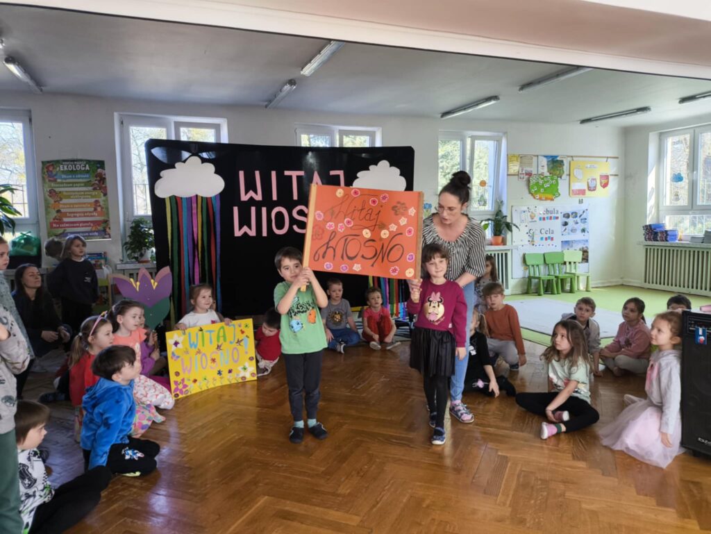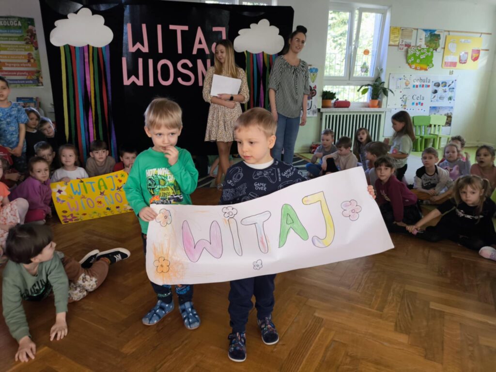 W naszym przedszkolu co roku hucznie świętujemy Pierwszy Dzień Wiosny. Tym razem rozpoczęliśmy ten dzień od wspólnych zabaw tanecznych i ruchowych, rozwiązywania zagadek wiosennych. Następnie każda grupa zaprezentowała swój plakat i hasło na powitanie Pani Wiosny. Po czym rozdane zostały zadania specjalne, które należało wykonać podczas spaceru po okolicy przedszkola. Na koniec po wykonaniu i zweryfikowaniu wyników zadań, pożegnaliśmy Marzannę.