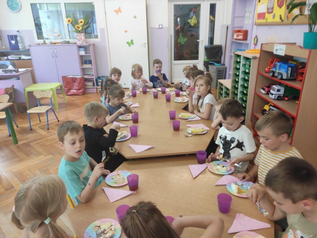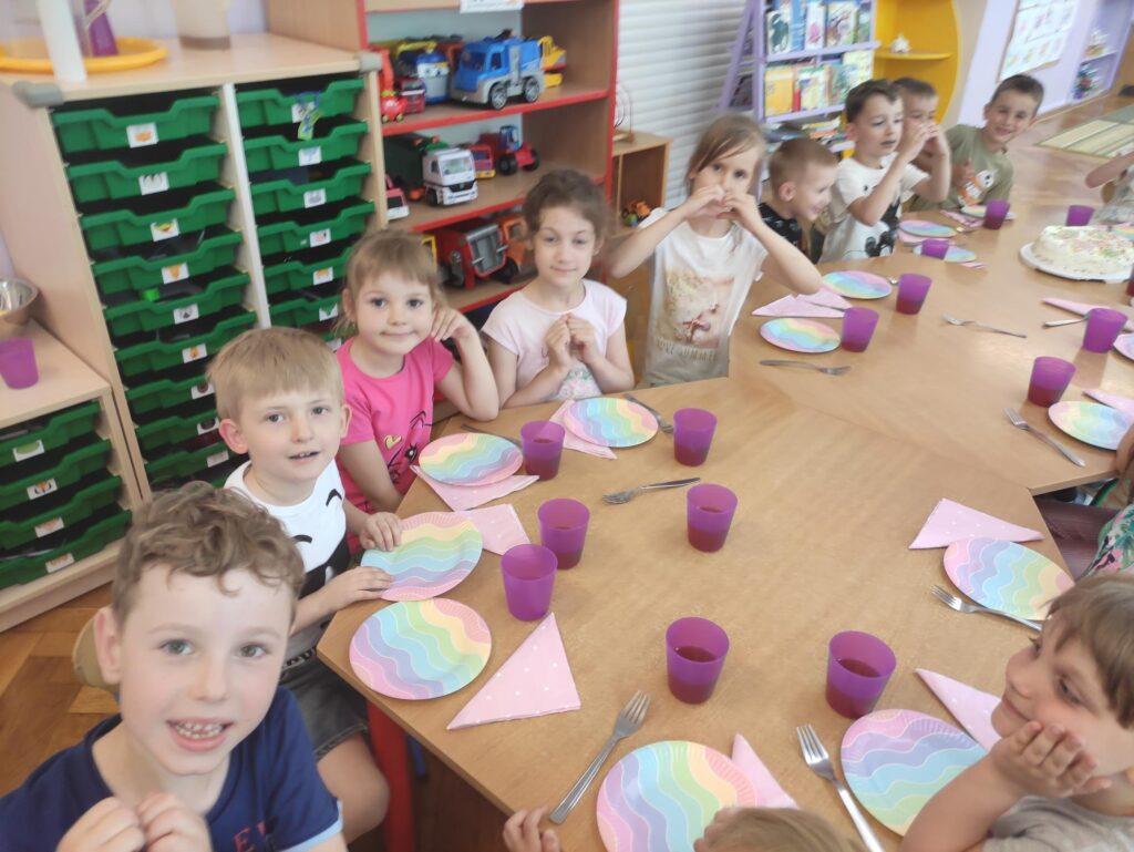 W piątek, 23 czerwca odbyła się impreza pożegnalna naszej koleżanki Alicji. Był to ostatni dzień Ali w naszym przedszkolu, ponieważ przeprowadza się do innego miasta. Zajączki postanowiły więc zrobić koleżance niespodziankę. Były wspólne zabawy, tańce, a nawet prezenty. Ala dostała od dzieci album z przygotowanymi wcześniej laurkami, zdjęcia naszej grupy oraz specjalnie napisanym na tą okazję wierszem. Dodatkową niespodziankę w formie książki przygotowały dla Alicji wszystkie dzieci z grupy Zajączków. Słodkim akcentem naszej uroczystości był tort, który upiekła Ala z mamą. Oczywiście zanim go zjedliśmy nie mogło zabraknąć odśpiewania 100 lat!!! Powodzenia Alu, będziemy tęsknić ?