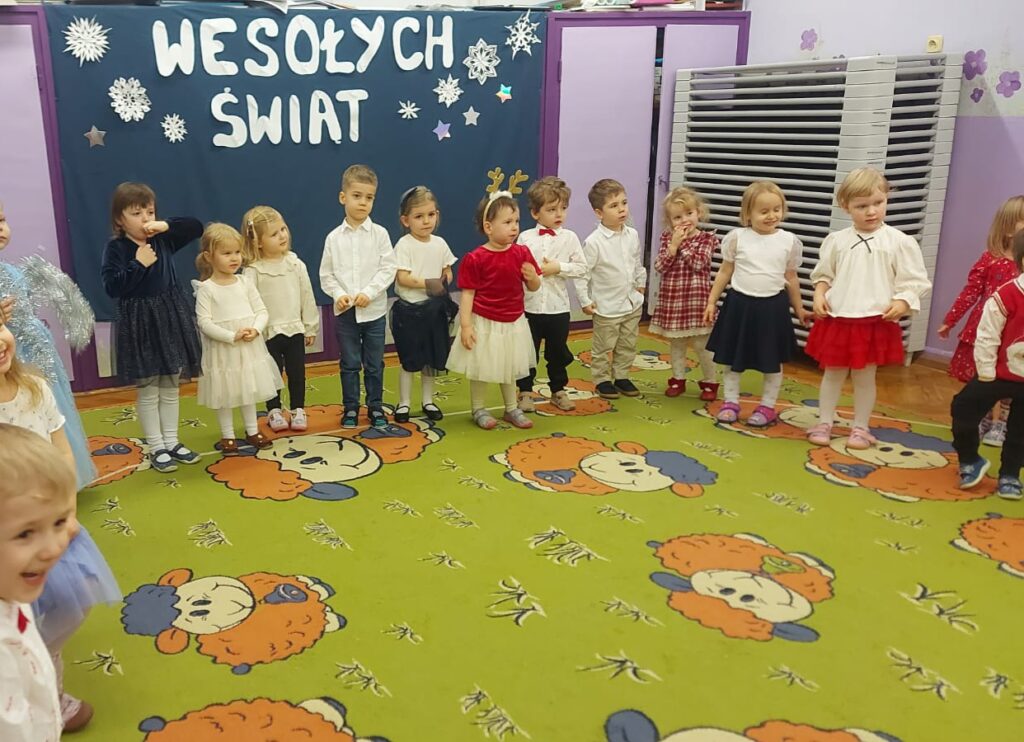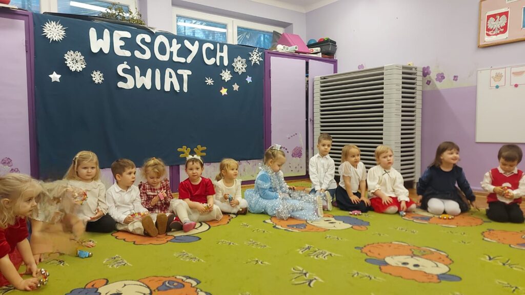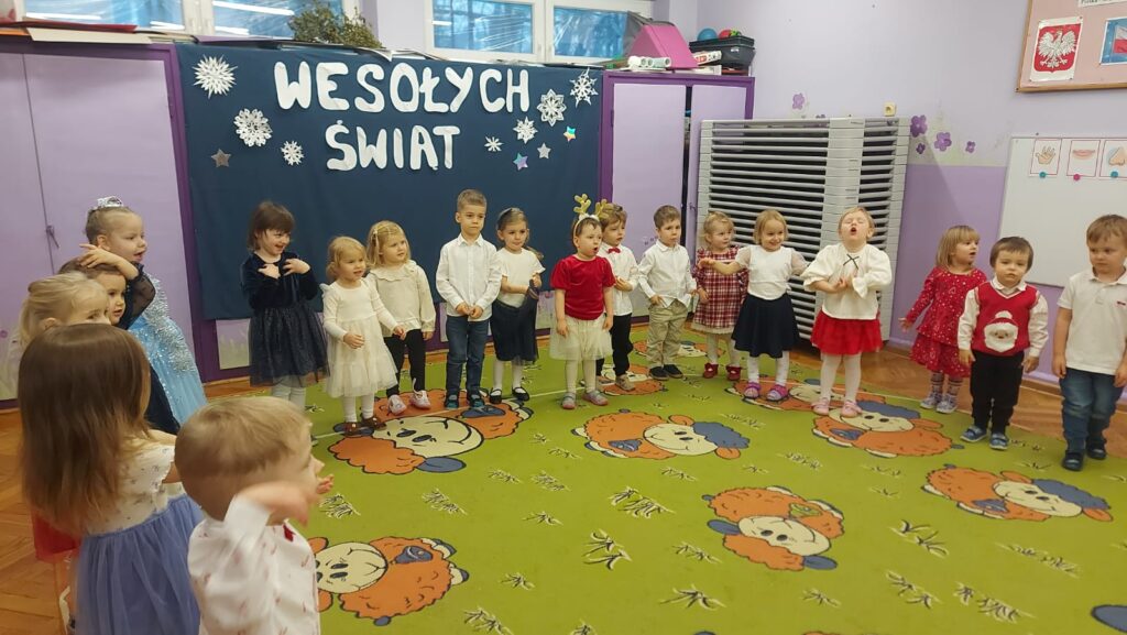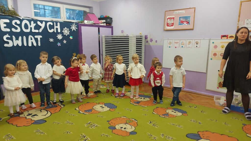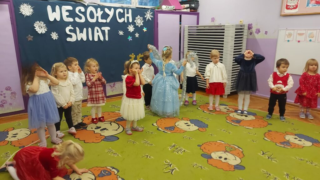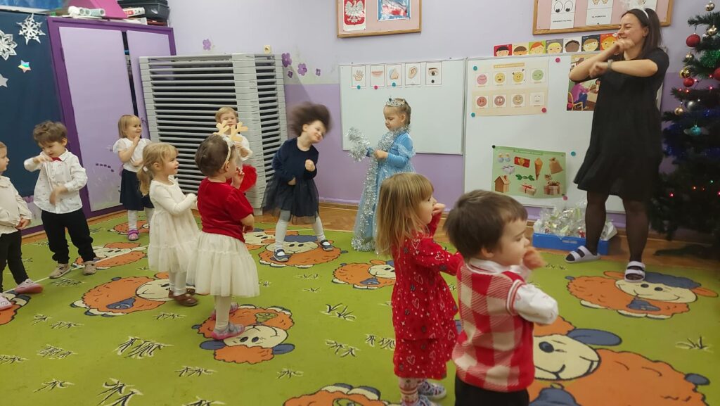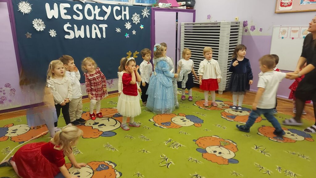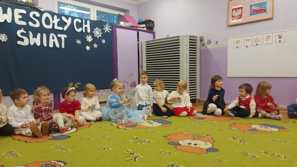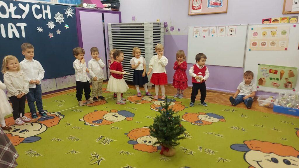 16 grudnia w naszej grupie odbyła się uroczystość choinkowa, na którą zaproszeni byli rodzice. Przedszkolaki przygotowały krótki program artystyczny, w czasie którego zaprezentowały swoje umiejętności aktorskie śpiewając piosenki o zimie, świętach i Mikołaju, a także recytując wiersze o tematyce świątecznej. Dzieci podczas występów stworzyły świąteczną i magiczną atmosferę. Na zakończenie przedszkolaki wręczyły rodzicom własnoręcznie zwobione prezenty.