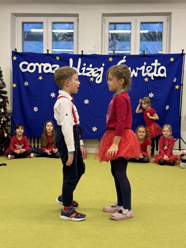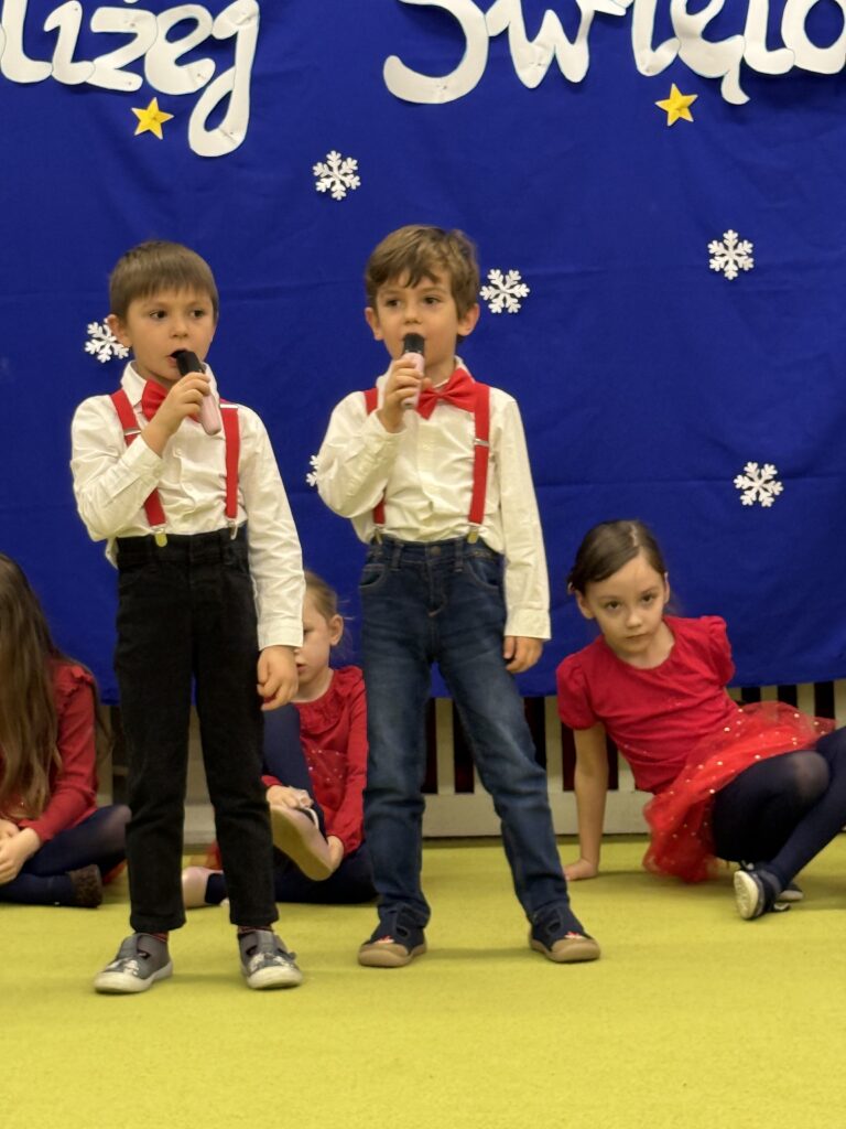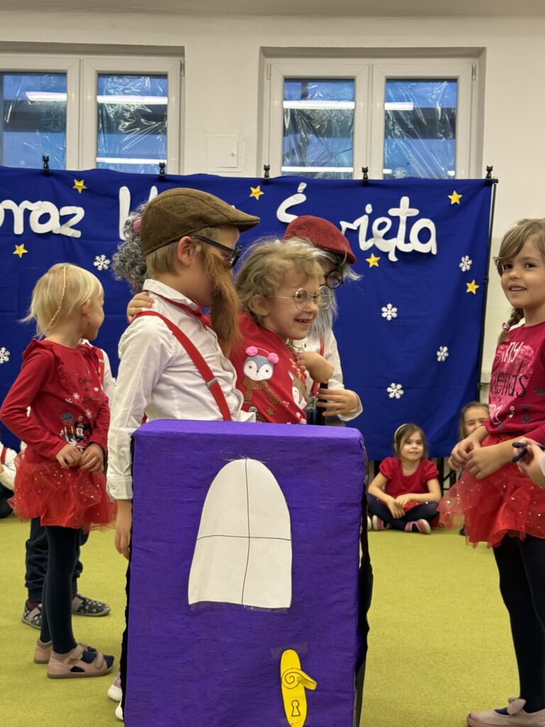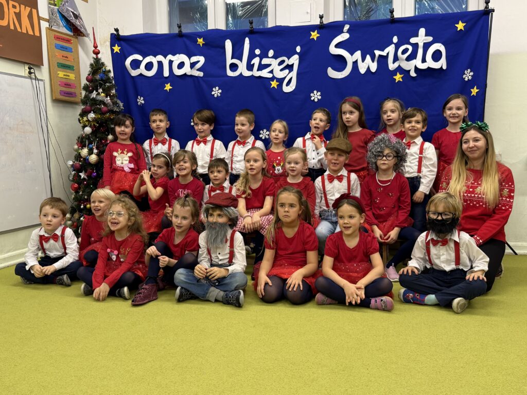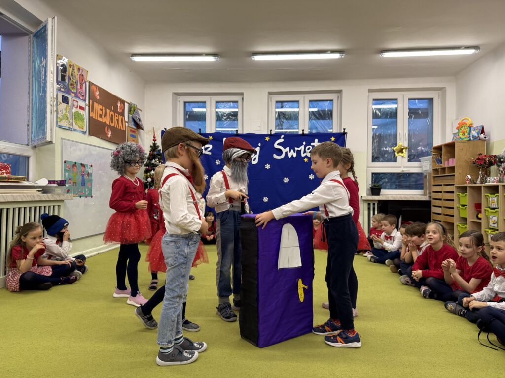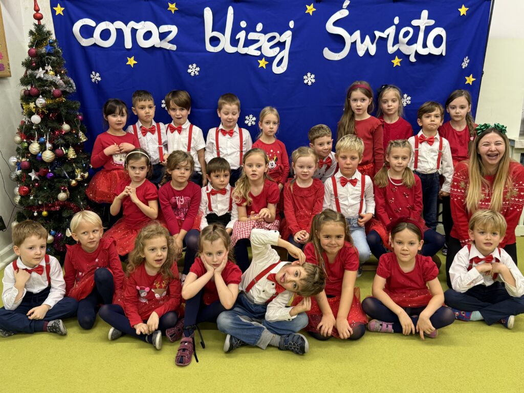 W poniedziałek w naszej grupie odbyło się przedstawienie świąteczne, na które zostali zaproszeni rodzice. Frekwencja była rewelacyjna, ponieważ tego dnia obecne były wszystkie dzieci. Podczas przedstawienie dzieci śpiewały, tańczyły, mówiły wierszyki, przedstawiły również świąteczną historię pewnej rodziny. Na zakończenie zrobiliśmy sobie wspólne zdjęcie pamiątkowe i złożyliśmy życzenia.