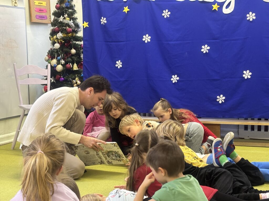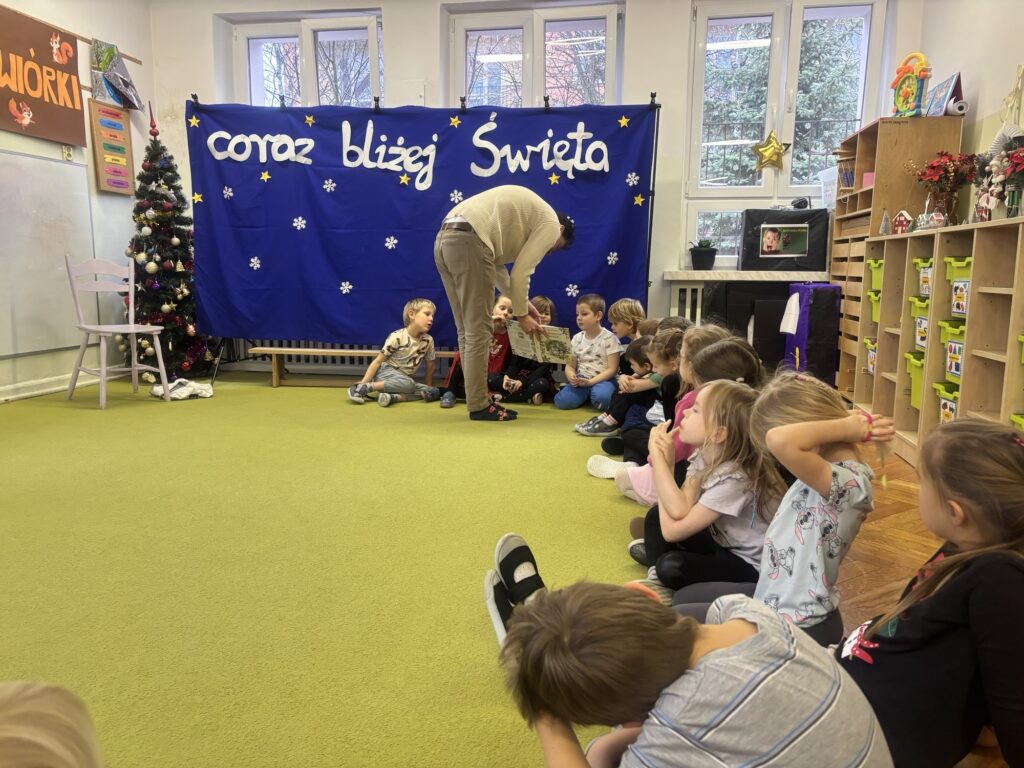 Tym razem gościem w naszej grupie był tata Anastazji. Przyszedł przeczytać dzieciom wybraną przez siebie książkę i odpowiedzieć na wszystkie pytania zaciekawionych Wiewiórek.