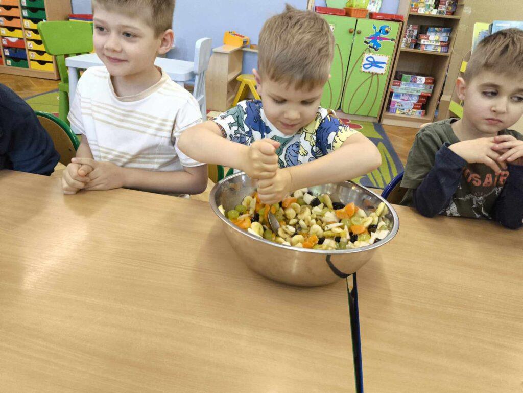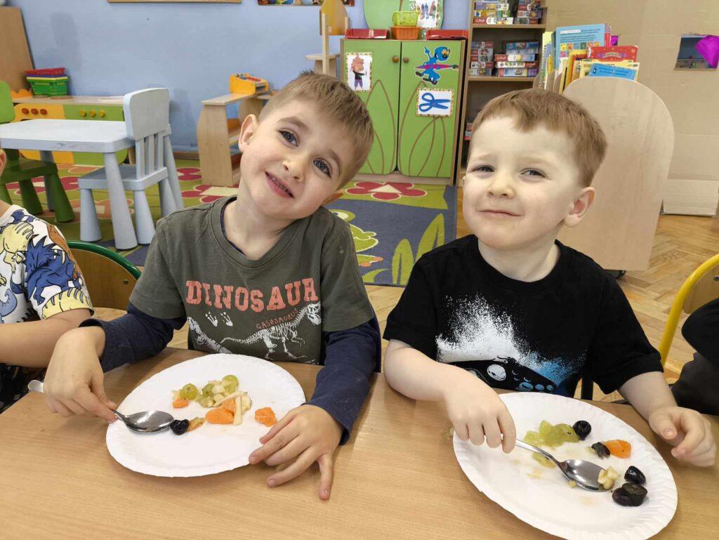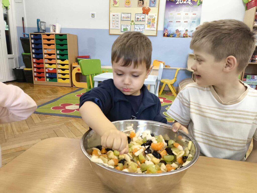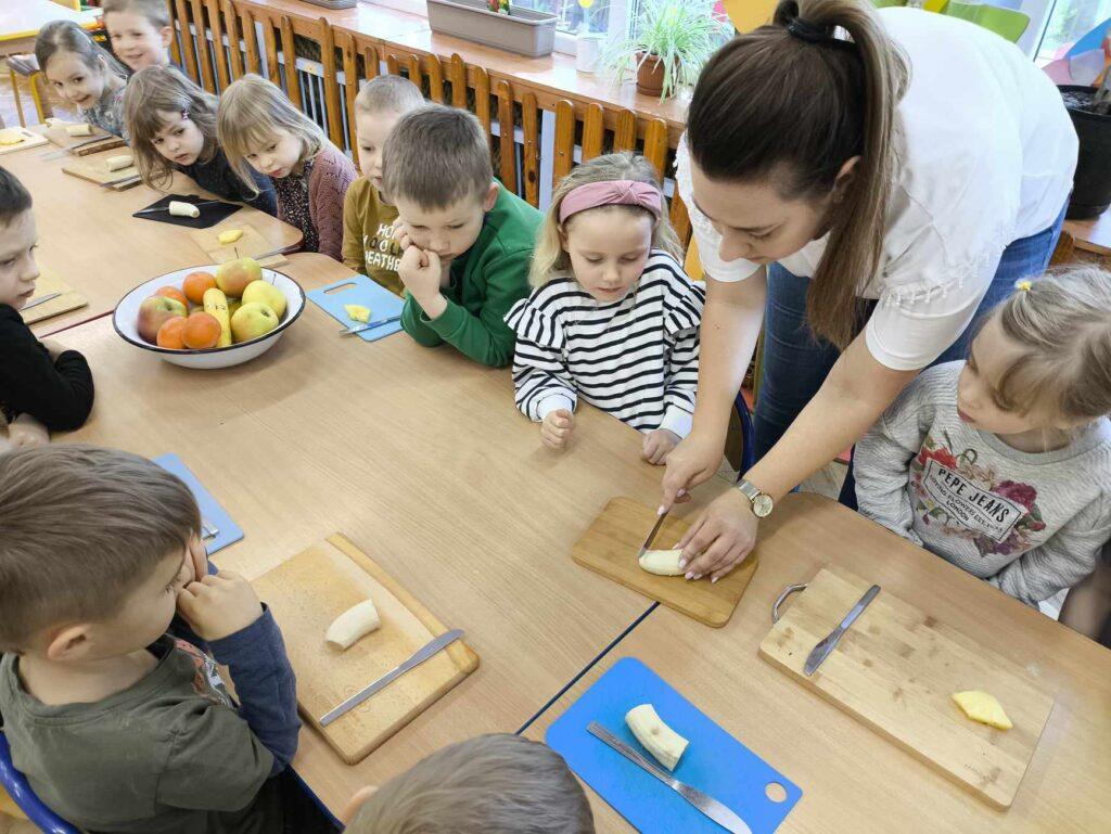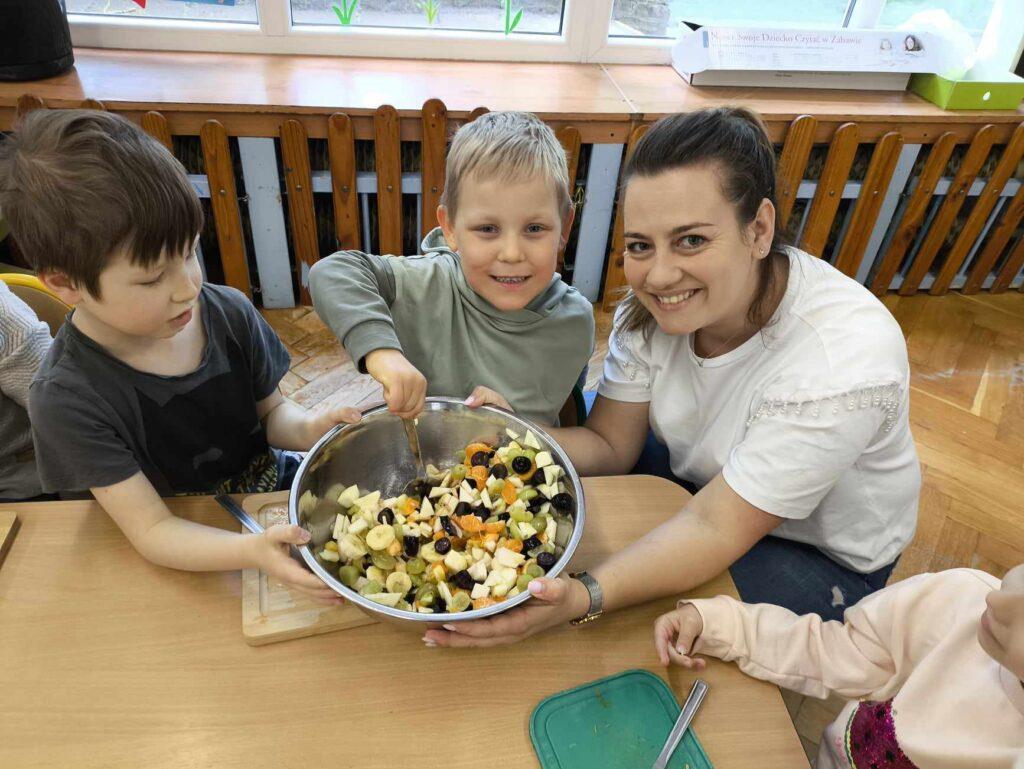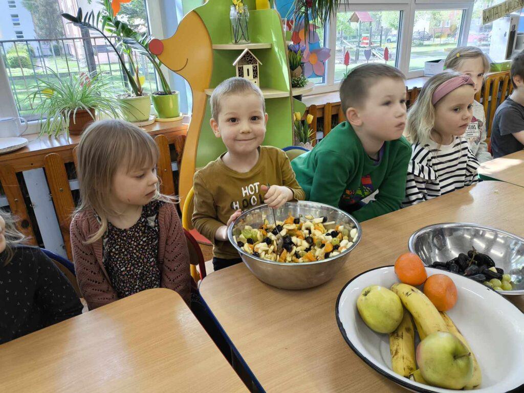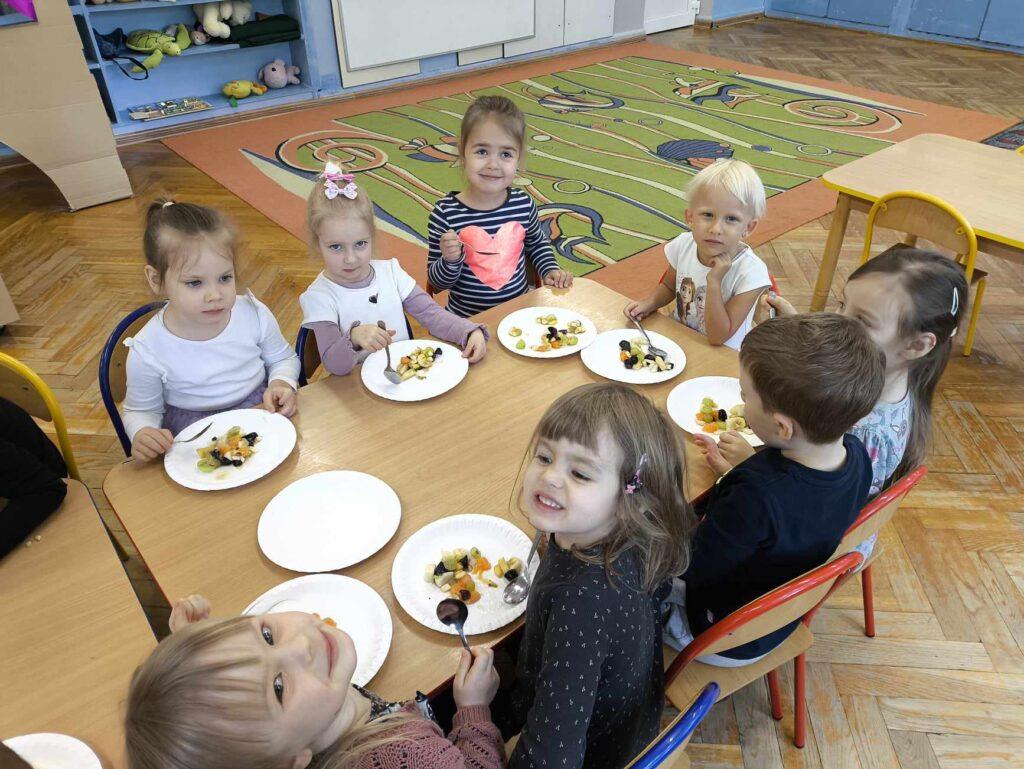 W minionym tygodni dzieci z grupy Żabek wykonały kolejne zadanie projektowe. Tym razem zrobiliśmy sałatkę owocową, którą następnie zjedliśmy ze smakiem 🙂