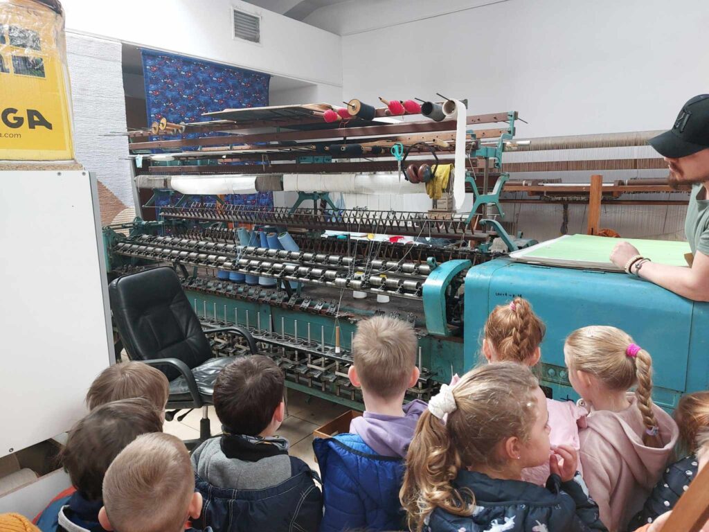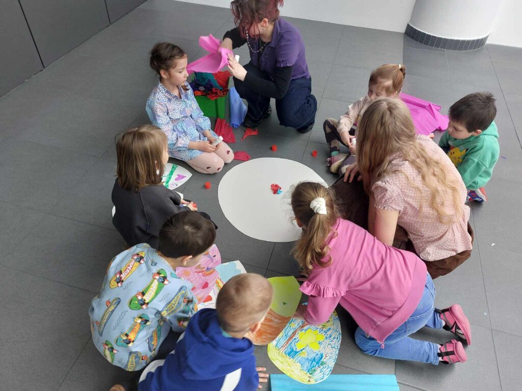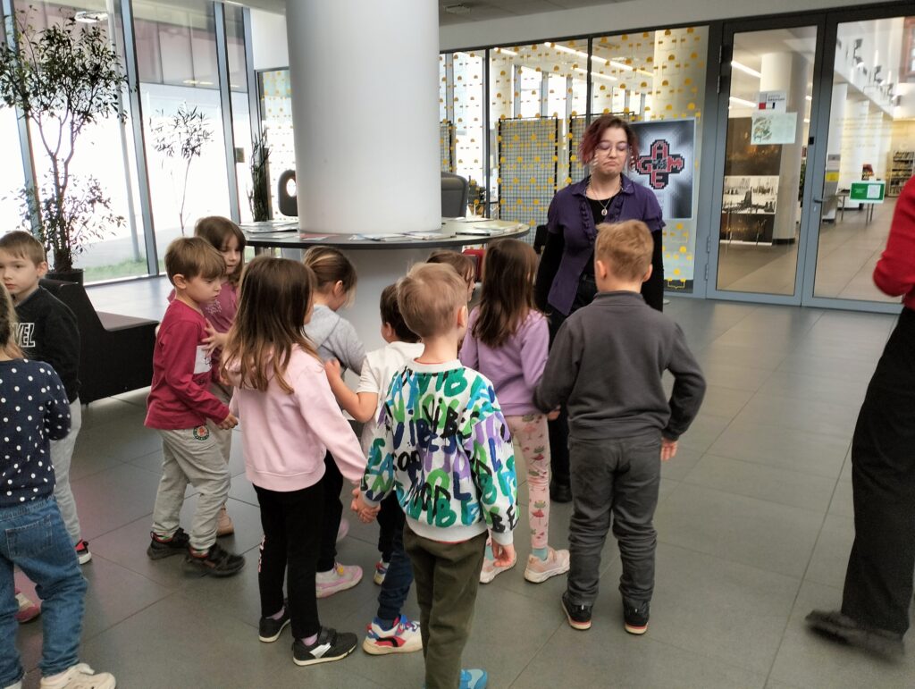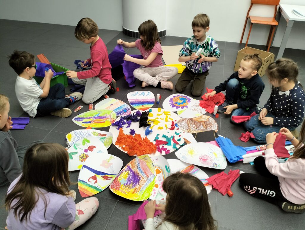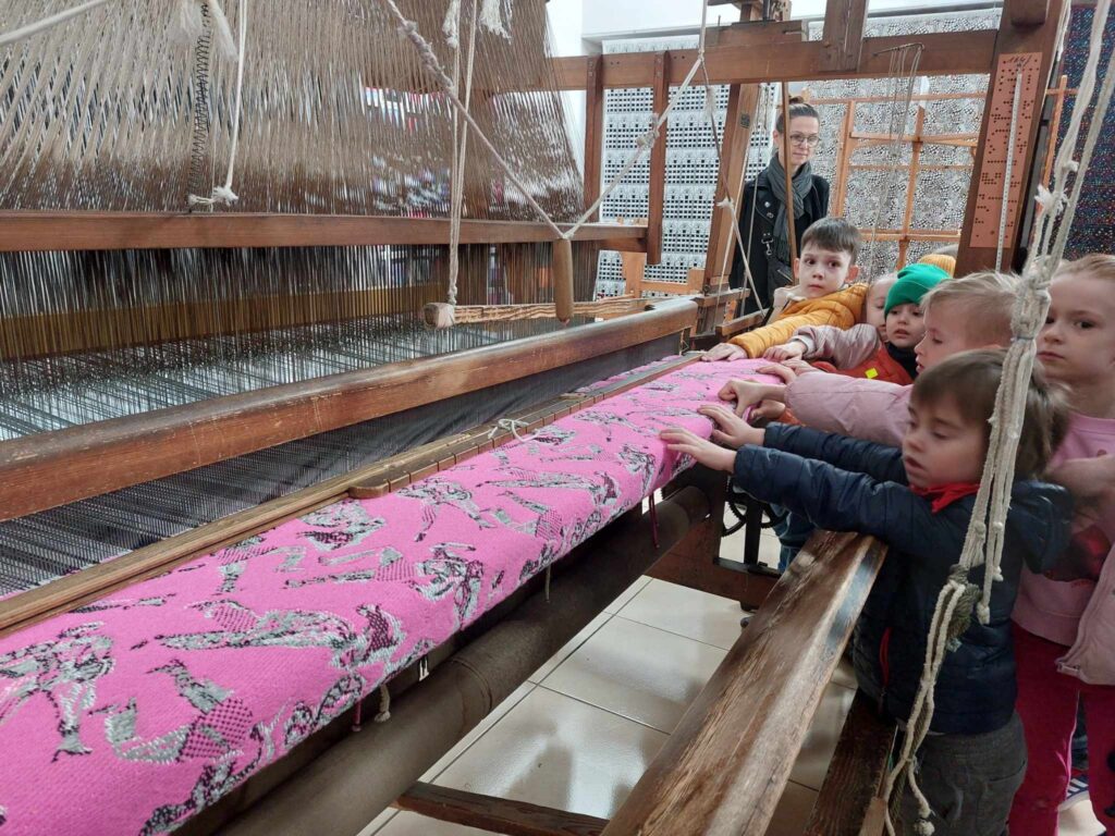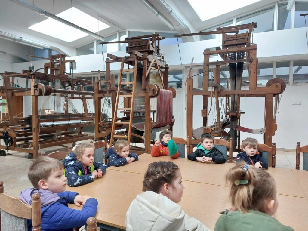 W piątek 28 marca dzieci z grupy Wiewiórek i Sów wybrały się na wycieczkę do Akademii Sztuk Pięknych. Podczas zwiedzania uczelni dzieci miały okazję zobaczyć jak powstają nici oraz tkaniny. W tym celu odwiedziły tkalnię żakardową, gdzie znajdowały się krosna żakardowe, na których studenci samodzielnie wykonują tkaniny. Przedszkolaki zwiedziły czytelnię oraz aulę, na której organizowane są pokazy mody. Miały okazję zobaczyć wystawę gier planszowych, zaprojektowanych przez studentów Akademii. Na zakończenie uczestniczyły w warsztatach plastycznych, podczas których ozdabiały płatki,które następnie wykorzystały tworząc pękny, wiosenny kwiat. Wizyta w Akademii Sztuk Pięknych bardzo się wszystkim podobała.