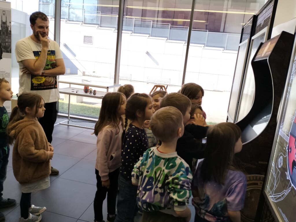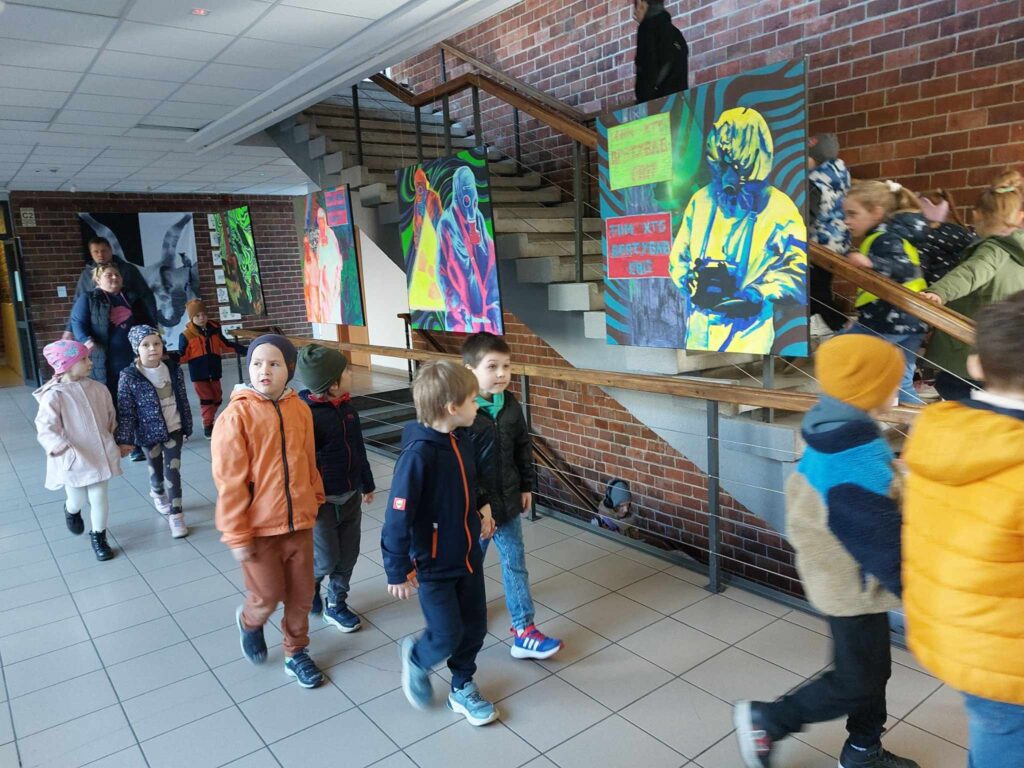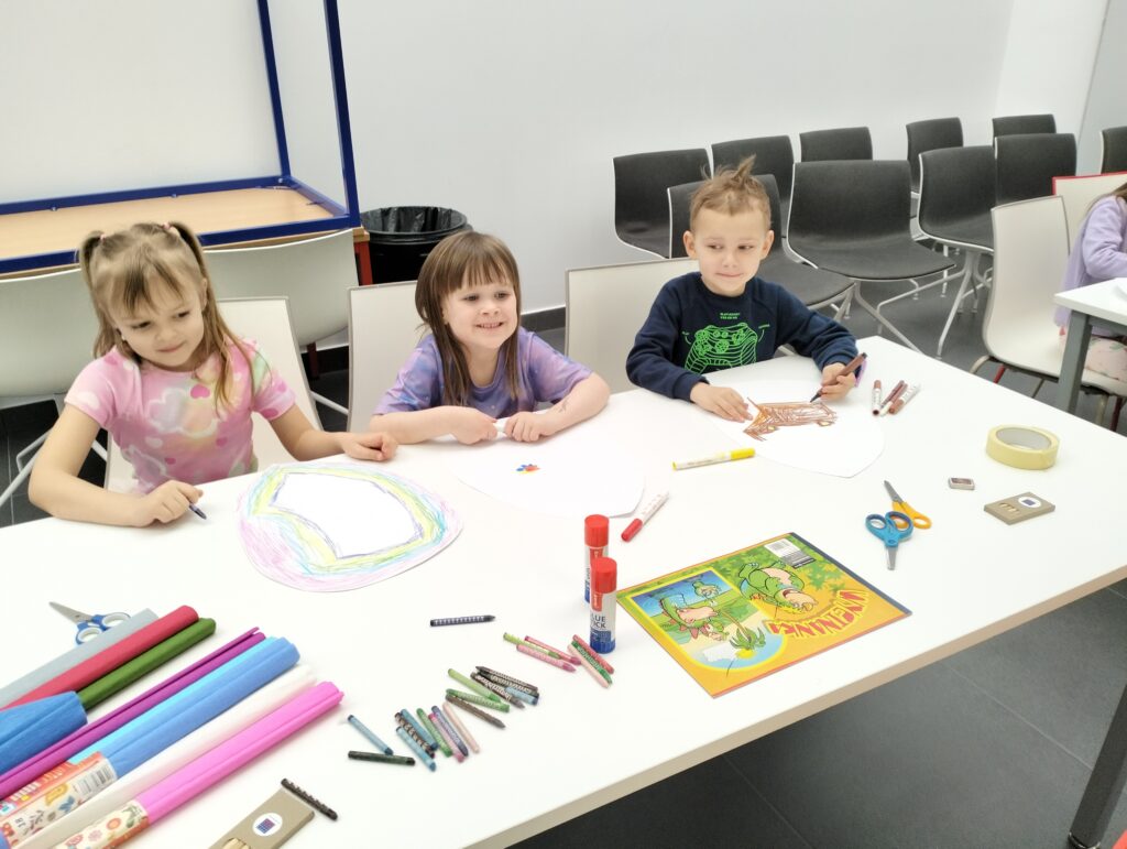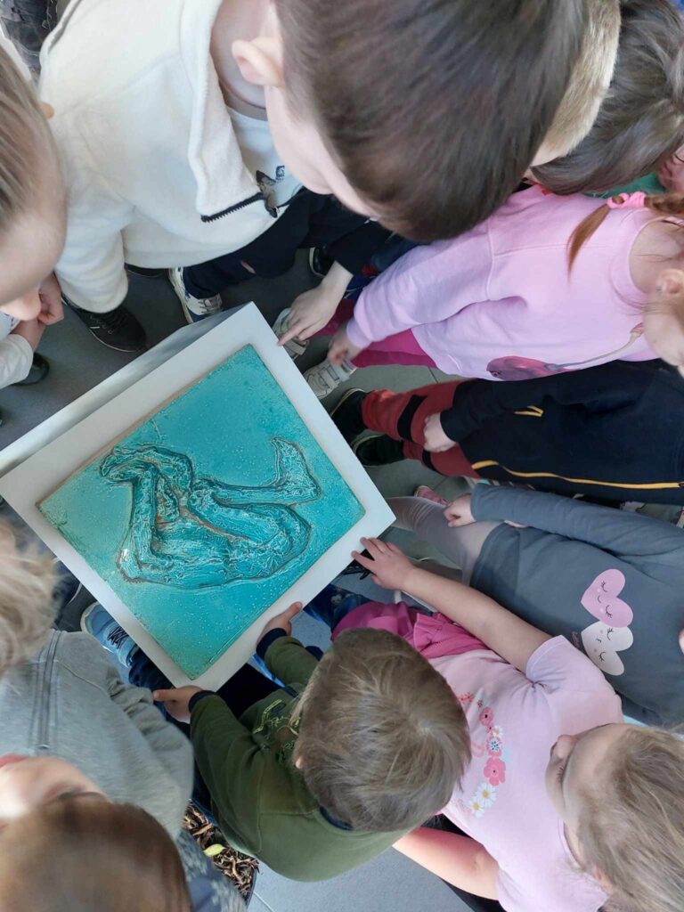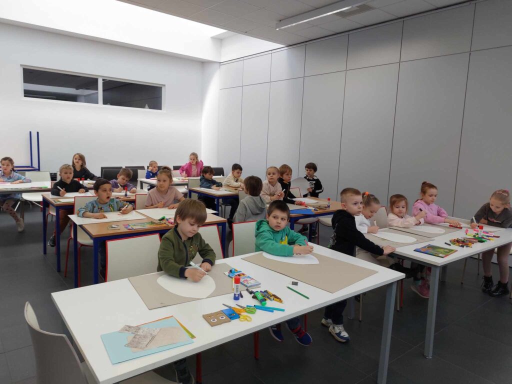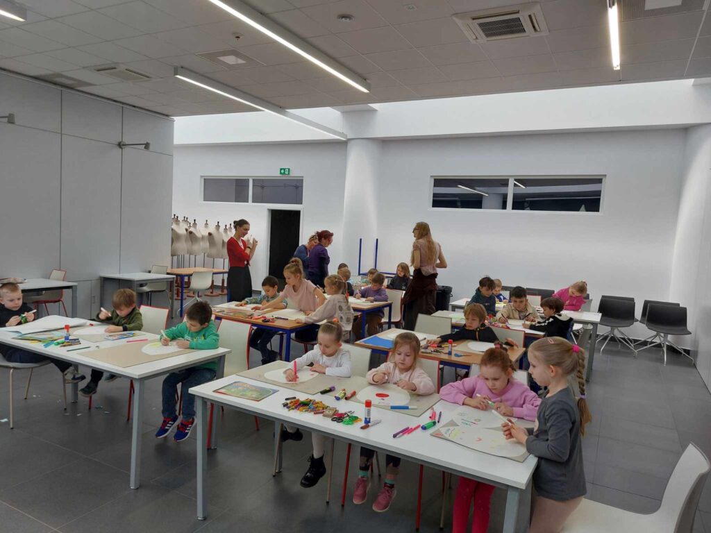 W piątek 28 marca dzieci z grupy Wiewiórek i Sów wybrały się na wycieczkę do Akademii Sztuk Pięknych. Podczas zwiedzania uczelni dzieci miały okazję zobaczyć jak powstają nici oraz tkaniny. W tym celu odwiedziły tkalnię żakardową, gdzie znajdowały się krosna żakardowe, na których studenci samodzielnie wykonują tkaniny. Przedszkolaki zwiedziły czytelnię oraz aulę, na której organizowane są pokazy mody. Miały okazję zobaczyć wystawę gier planszowych, zaprojektowanych przez studentów Akademii. Na zakończenie uczestniczyły w warsztatach plastycznych, podczas których ozdabiały płatki,które następnie wykorzystały tworząc pękny, wiosenny kwiat. Wizyta w Akademii Sztuk Pięknych bardzo się wszystkim podobała.