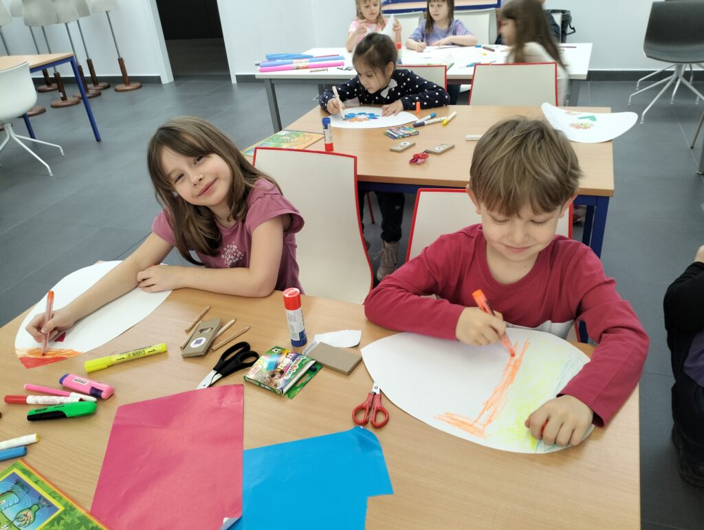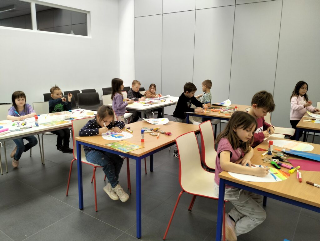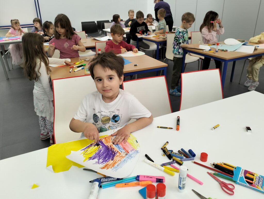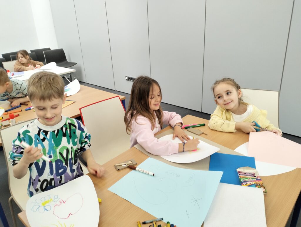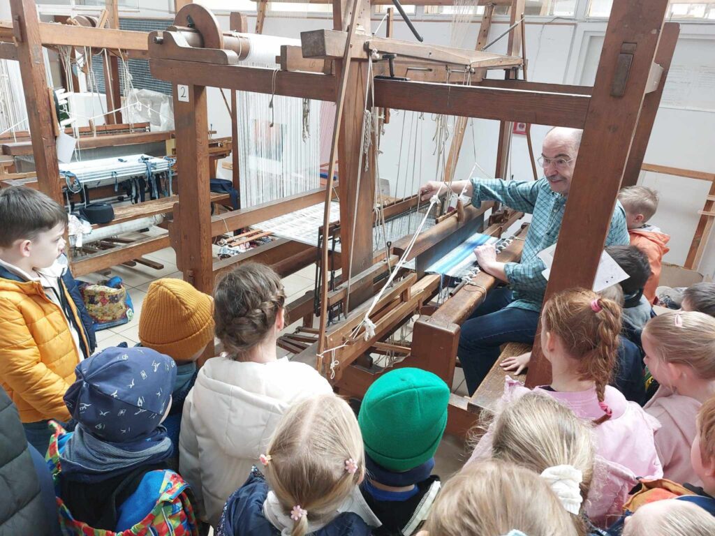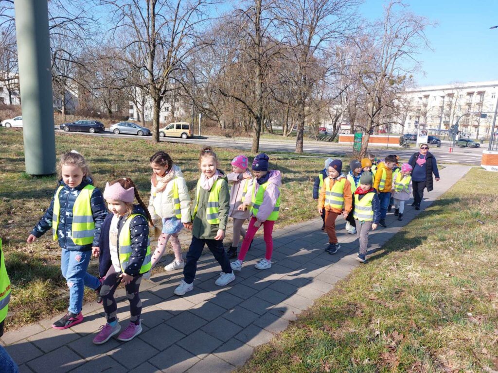 W piątek 28 marca dzieci z grupy Wiewiórek i Sów wybrały się na wycieczkę do Akademii Sztuk Pięknych. Podczas zwiedzania uczelni dzieci miały okazję zobaczyć jak powstają nici oraz tkaniny. W tym celu odwiedziły tkalnię żakardową, gdzie znajdowały się krosna żakardowe, na których studenci samodzielnie wykonują tkaniny. Przedszkolaki zwiedziły czytelnię oraz aulę, na której organizowane są pokazy mody. Miały okazję zobaczyć wystawę gier planszowych, zaprojektowanych przez studentów Akademii. Na zakończenie uczestniczyły w warsztatach plastycznych, podczas których ozdabiały płatki,które następnie wykorzystały tworząc pękny, wiosenny kwiat. Wizyta w Akademii Sztuk Pięknych bardzo się wszystkim podobała.