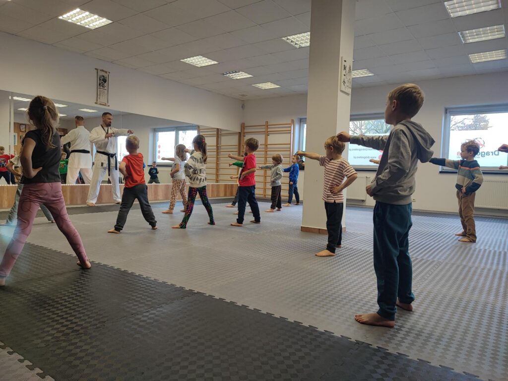 Ten wstęp wzbudził w dzieciach dużą ciekawość oraz szacunek do nauki . Wtedy dopiero rozpoczął się trening właściwy, podczas którego dzieci bardzo dzielnie wykonywały wszystkie zadania oraz uczestniczyły w minizawodach. Na koniec mogliśmy obejrzeć krótki film/relację z zwodów Karate w Anglii.