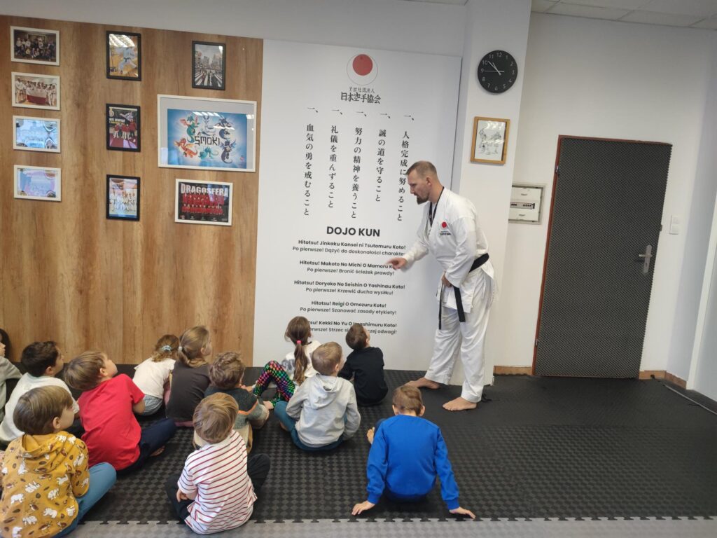 13. listopada nasza grupa ponownie wybrała się do Dargosfery. Zeszłoroczne zajęcia zapadły nam w pamięć i miło nam było ponownie tam wrcócić. Mieliśmy przyjemność uczestnictwa w zajęciach karate prowadzonych przez członka Kadry Narodowej JKA Polska. Na początku zajęć pan Piotr wprowadził dzieci w świat kultury karate. Sowy poznały 5 zasad Dojo Kun, które kształtują siłę charakteru, uczciwość, rzetelność, pracowitość, nie tylko na sali treningowej, ale również poza nią.