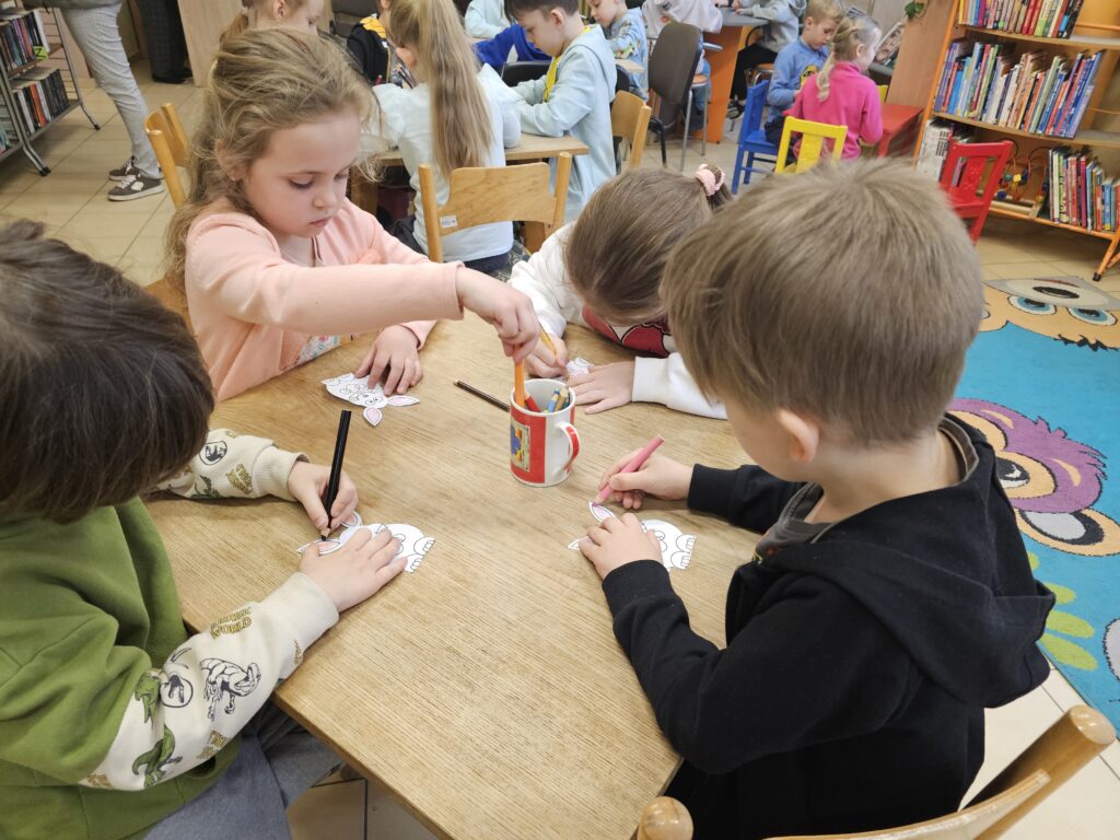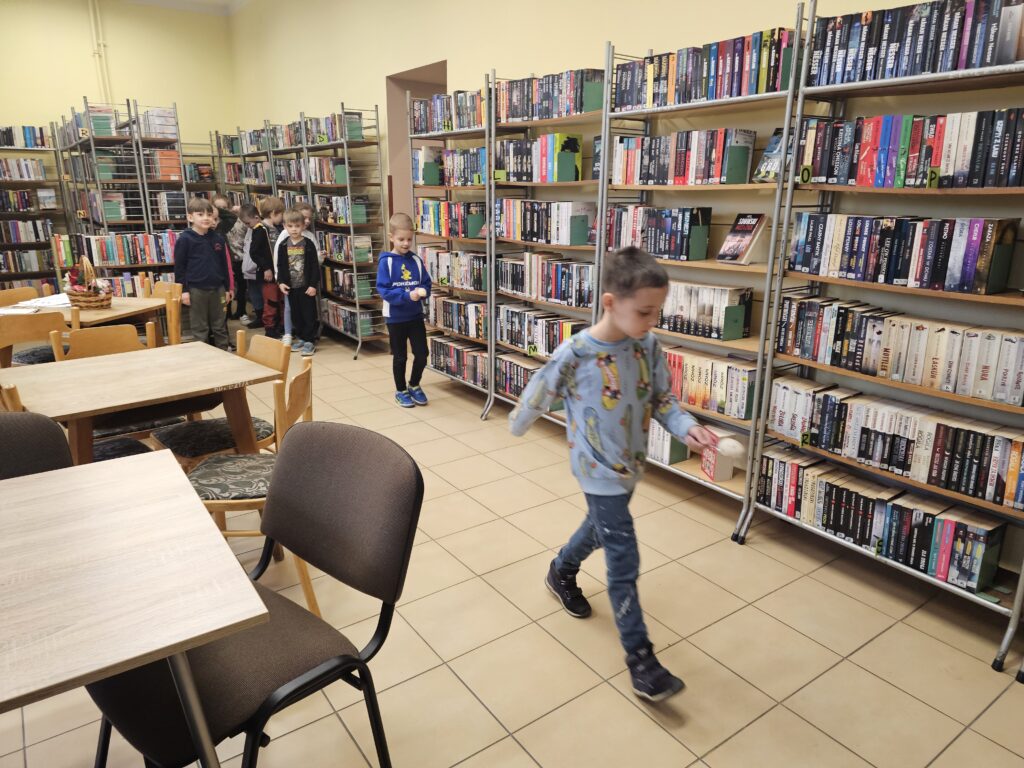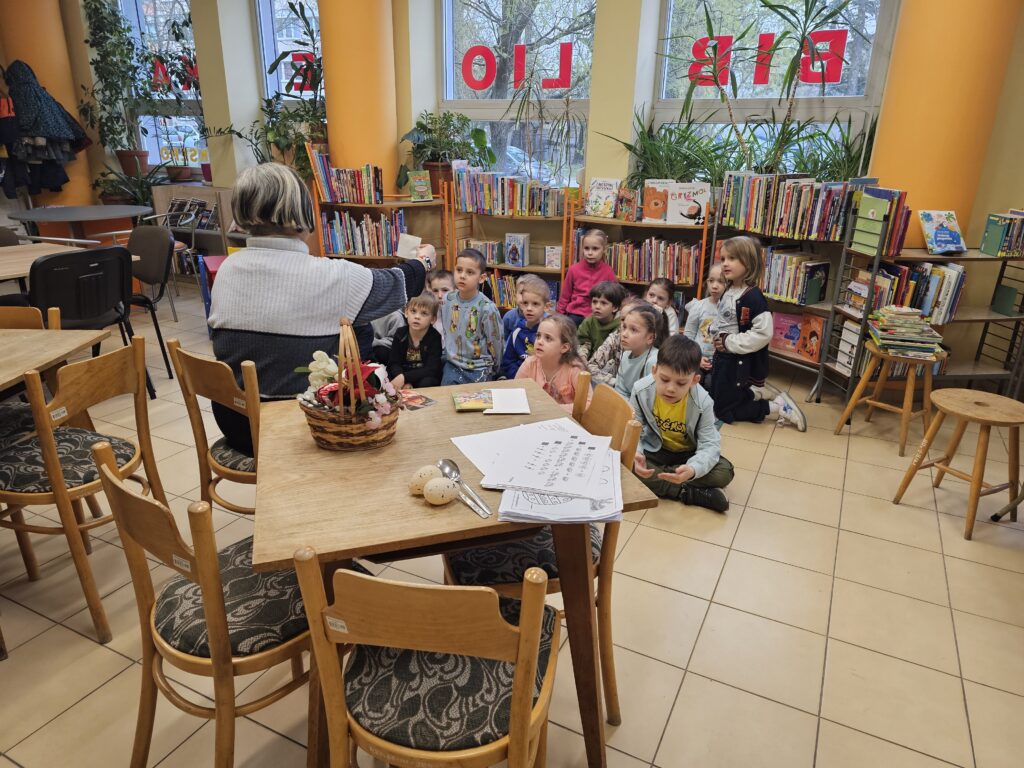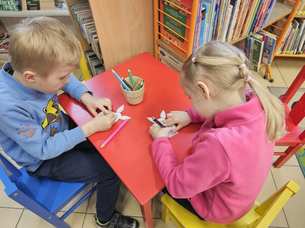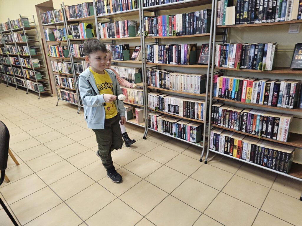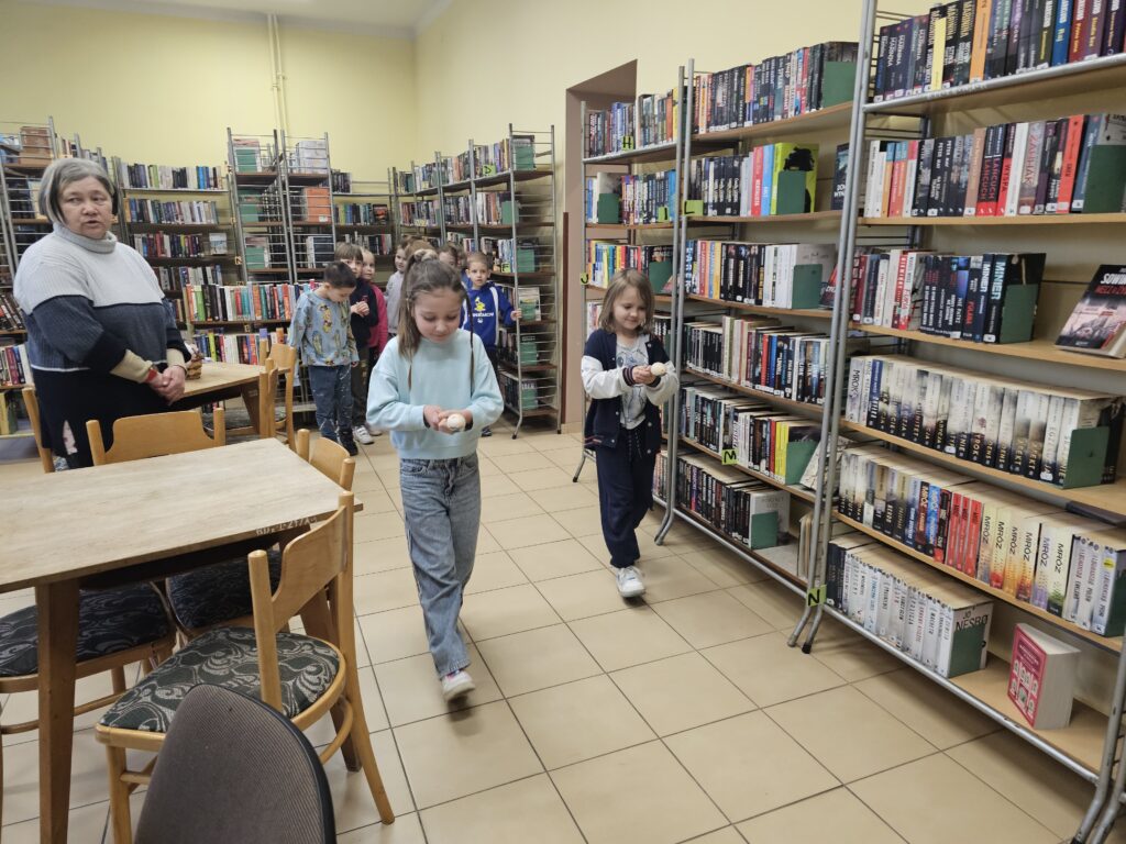 Dzieci z wielką radością i entuzjazmem odwiedziły pobliską bibliotekę, gdyż z książką przygodę rozpoczęły dawno temu. Po miłym powitaniu przez pracowników biblioteki rozpoczęły się zajęcia dotyczące bliskiej tematyki świątecznej. Dzieci aktywnie uczestniczyły w pogadance na temat symboli i zwyczajów związanych z Wielkanocą, intensywnie rachowały, liczyły. Kolorowały też bardzo pomysłowo zajączki wielkanocne, które będą ozdobą w niejednym domu. Podczas zajęć dzieci były bardzo aktywne i twórcze, co wzbudziło podziw wszystkich pracowników tej instytucji. Beata Kozłowska Małgorzata Reksulak Małgorzata Witkowska
