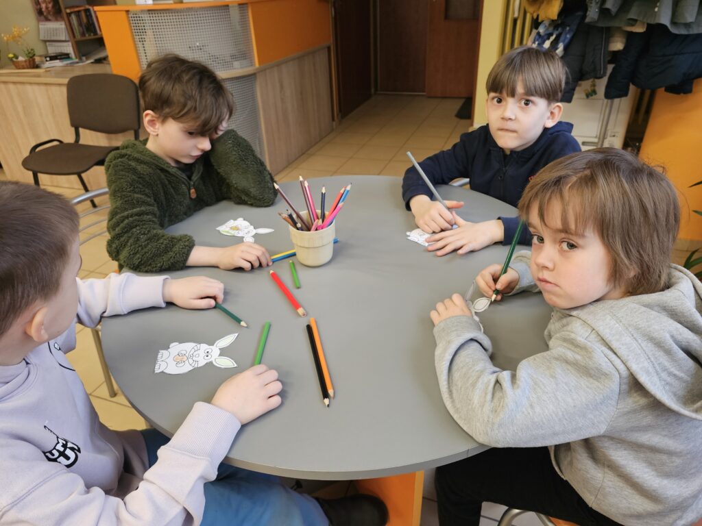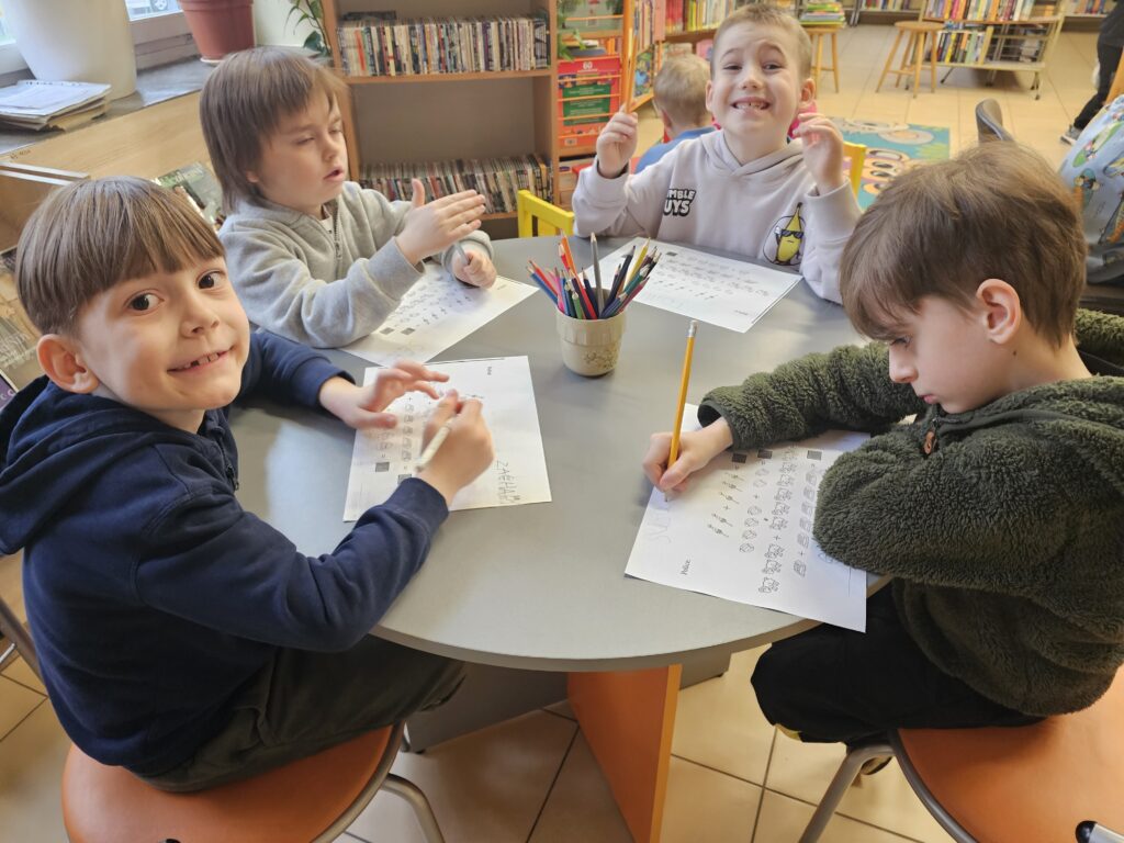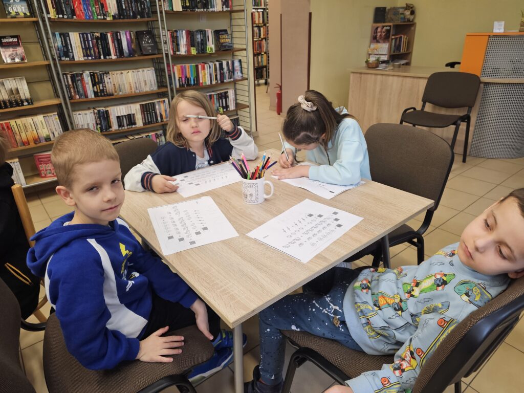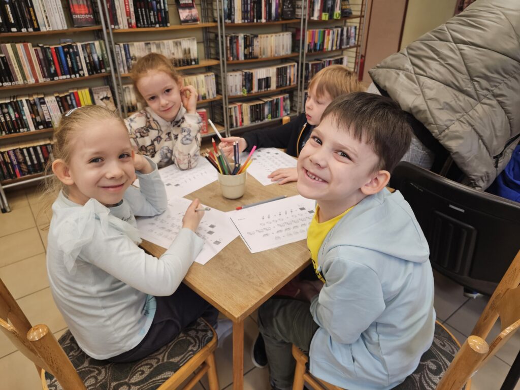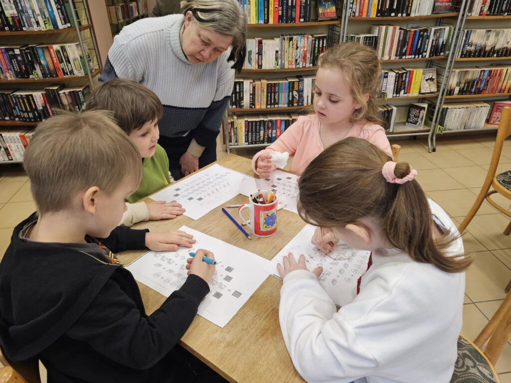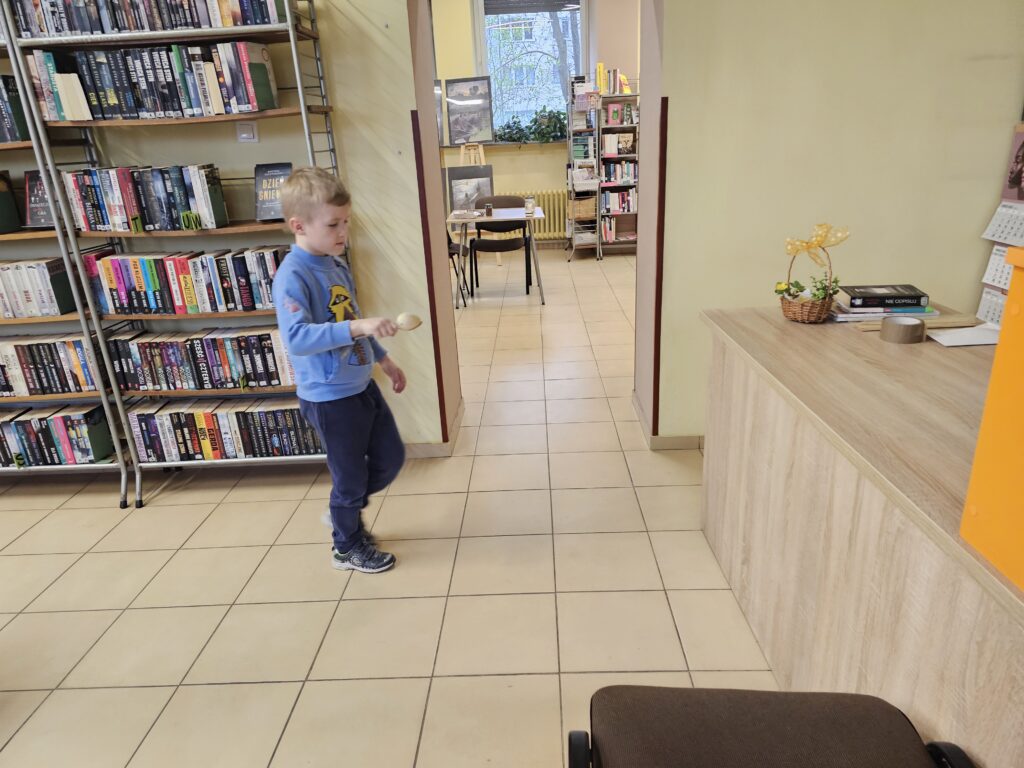 Dzieci z wielką radością i entuzjazmem odwiedziły pobliską bibliotekę, gdyż z książką przygodę rozpoczęły dawno temu. Po miłym powitaniu przez pracowników biblioteki rozpoczęły się zajęcia dotyczące bliskiej tematyki świątecznej. Dzieci aktywnie uczestniczyły w pogadance na temat symboli i zwyczajów związanych z Wielkanocą, intensywnie rachowały, liczyły. Kolorowały też bardzo pomysłowo zajączki wielkanocne, które będą ozdobą w niejednym domu. Podczas zajęć dzieci były bardzo aktywne i twórcze, co wzbudziło podziw wszystkich pracowników tej instytucji. Beata Kozłowska Małgorzata Reksulak Małgorzata Witkowska