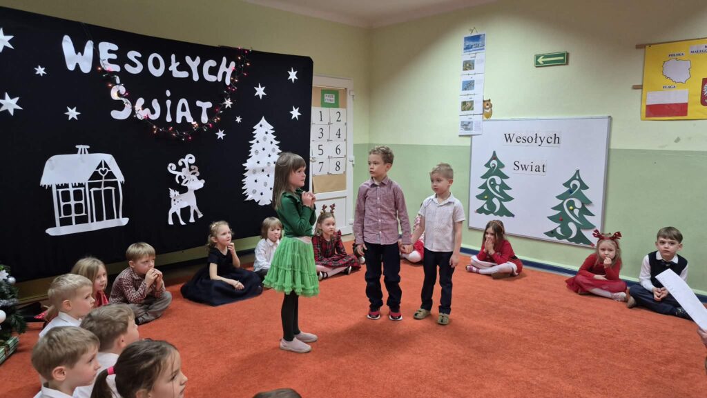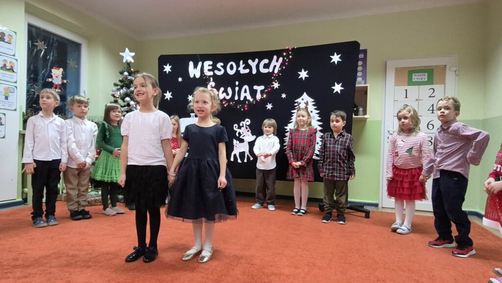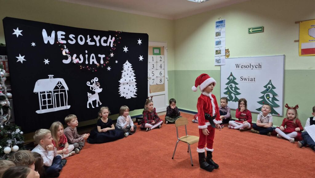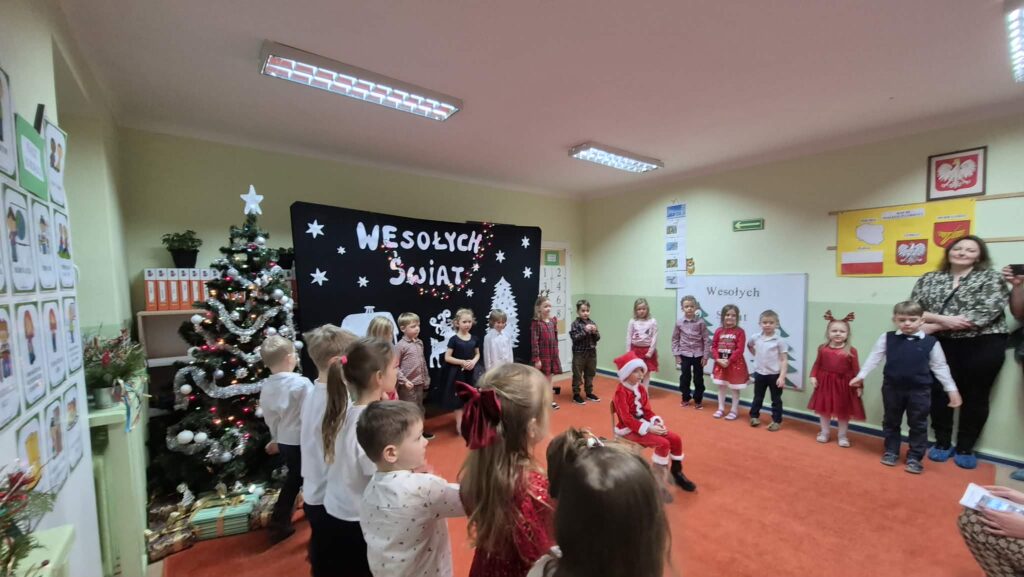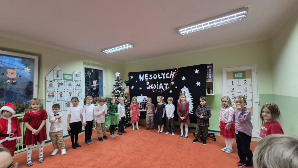 Święta Bożego Narodzenia to dla wielu najpiękniejsze, najcieplejsze, rodzinne, pełne radości chwile. Już z początkiem grudnia w naszym przedszkolu widoczne były świąteczne przygotowania pełne ekscytacji. Najpierw Mikołajki, potem świąteczne porządki, dekorowanie sali i wykonywanie świątecznych ozdób oraz upominków dla rodziców. Sówki  uczyły się  również wierszy, piosenek i kolęd bożonarodzeniowych. Punktem kulminacyjnym przedświątecznej przedszkolnej atmosfery było Spotkanie Wigilijne, które odbyło się 16.grudnia. Dzieci zaprezentowały krótki program artystyczny oraz wręczyły świąteczne prezenty.  Uroczystość ta co roku łączy i napełnia nasze serca niezwykłą   radością i życzliwością.