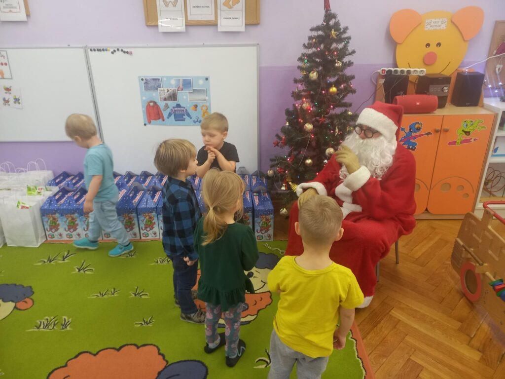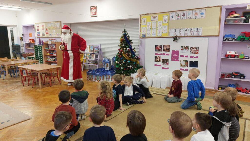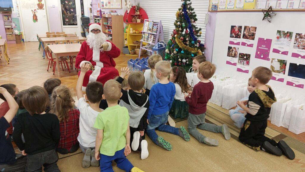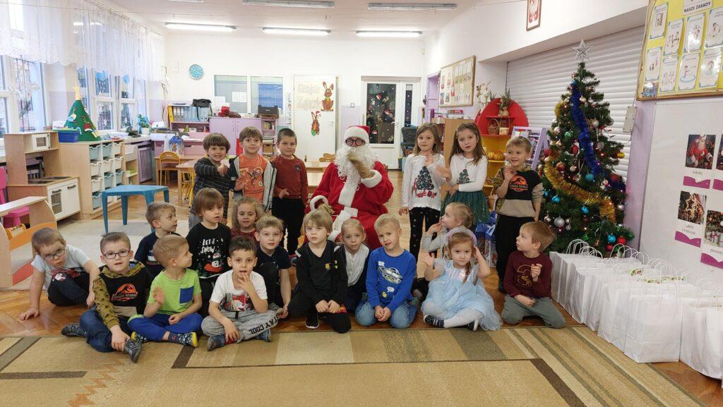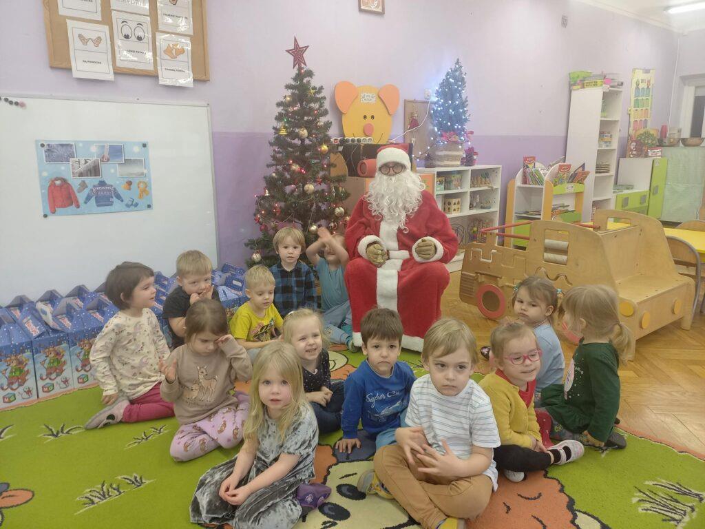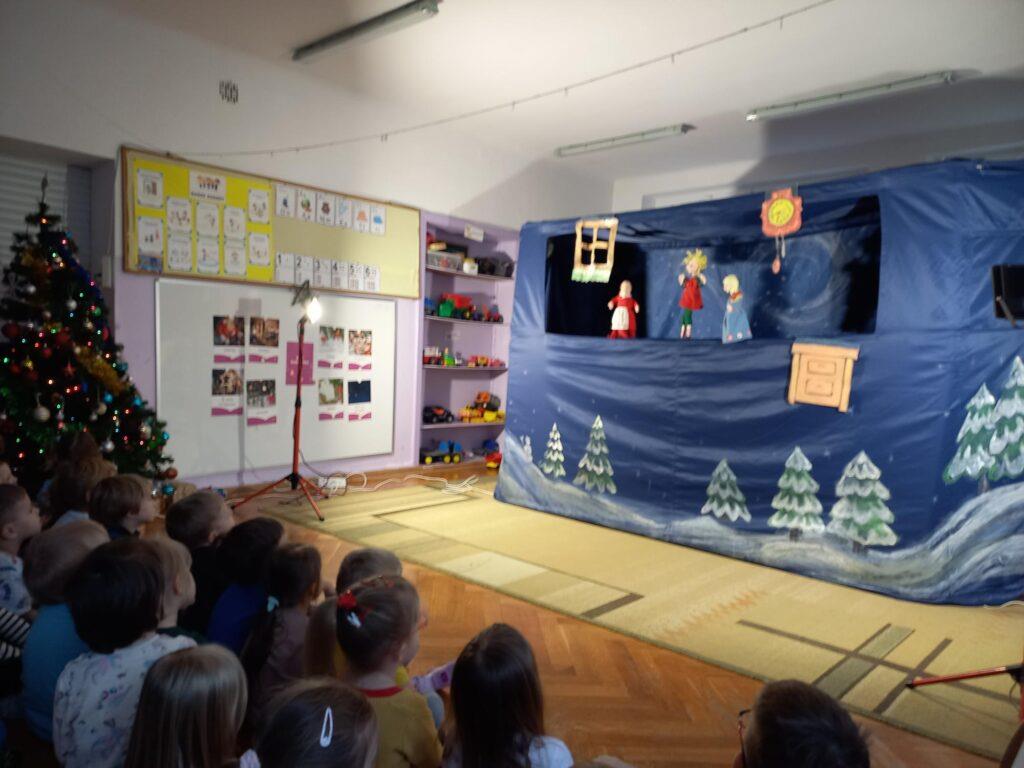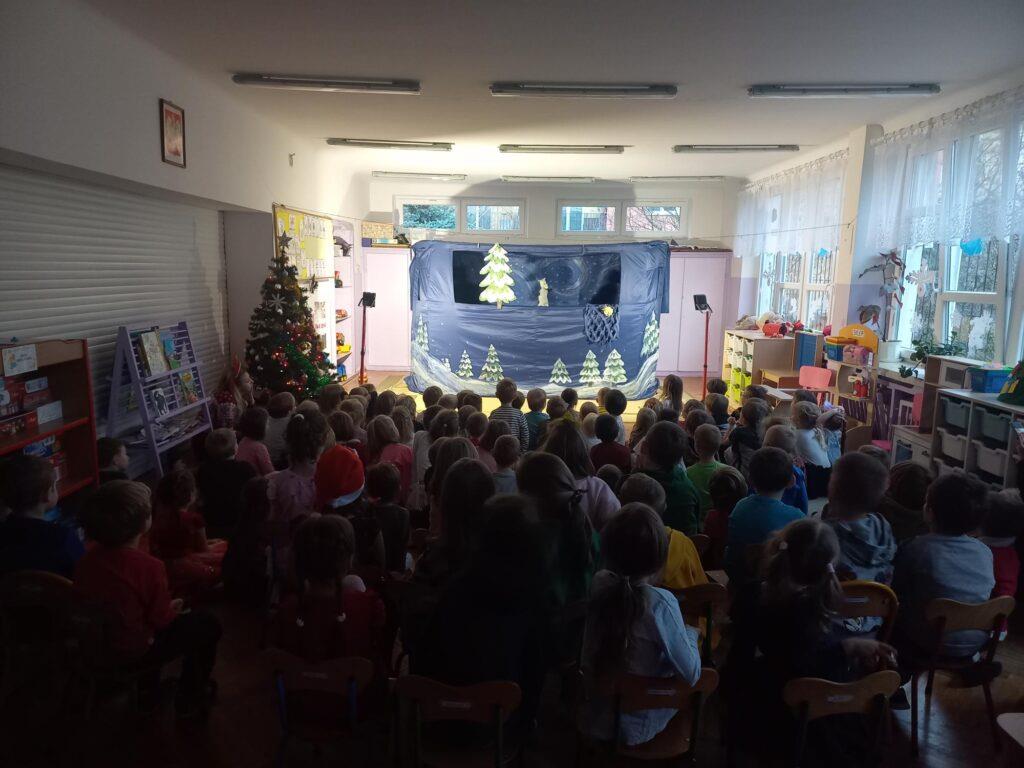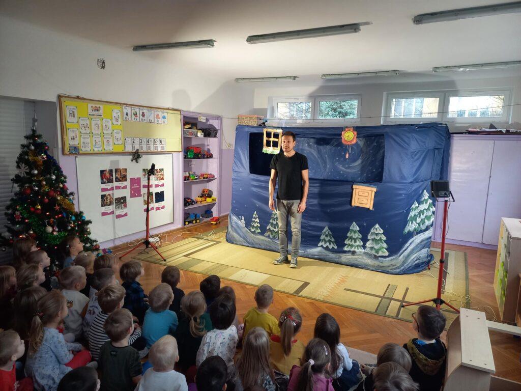 W poniedziałek, 18 grudnia czekała na wszystkie dzieci wspaniała niespodzianka. Z okazji zbliżających się wielkimi krokami Świąt Bożego Narodzenia przedszkolaki odwiedzili Aktorzy z teatru WidziMiSię z przedstawieniem zatytułowanym ,,Zimowa opowieść”. Bohaterami spektaklu było rodzeństwo, brat i siostra. Chłopiec tak bardzo pragnął dostać prezent, że wpadł przez to w nie lada kłopoty! Droga, którą przeszedł dostarczyła mu wiele doświadczeń odmieniając chłopca. Bohaterowie na szczęście doczekali się szczęśliwego finału pozostawiając po sobie wiele pozytywnych emocji i uśmiechu na twarzach dzieci. Wszyscy z wielkim zainteresowaniem śledzili losy bohaterów, a na koniec Aktorzy zostali nagrodzeni gromkimi brawami ?To jednak nie był koniec atrakcji tego dnia. Dzieci z ,,dziewiątki” odwiedził niezwykły gość, sam Święty Mikołaj, który przyniósł przedszkolakom wspaniałe prezenty. To był naprawdę niezapomniany dzień ?