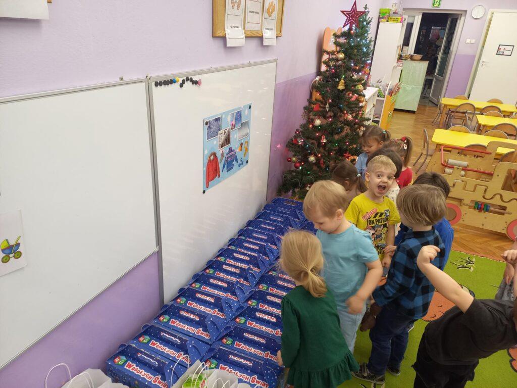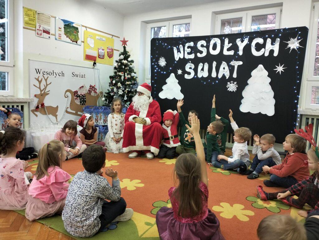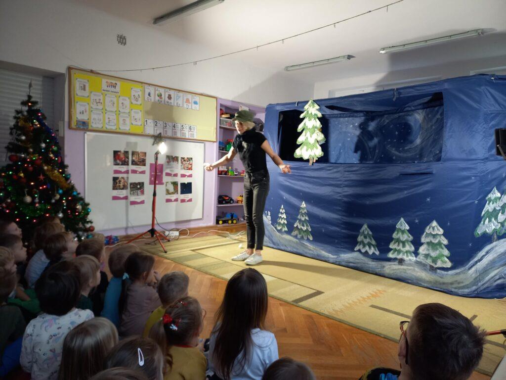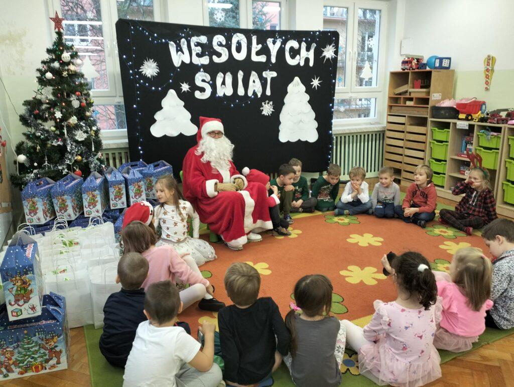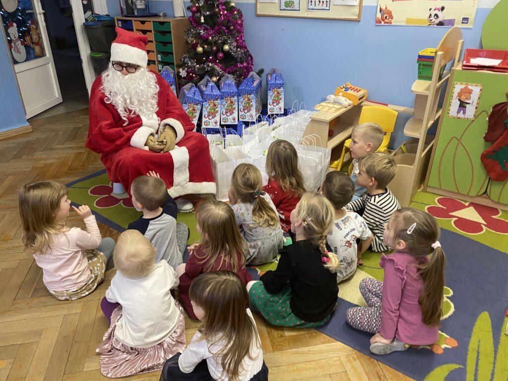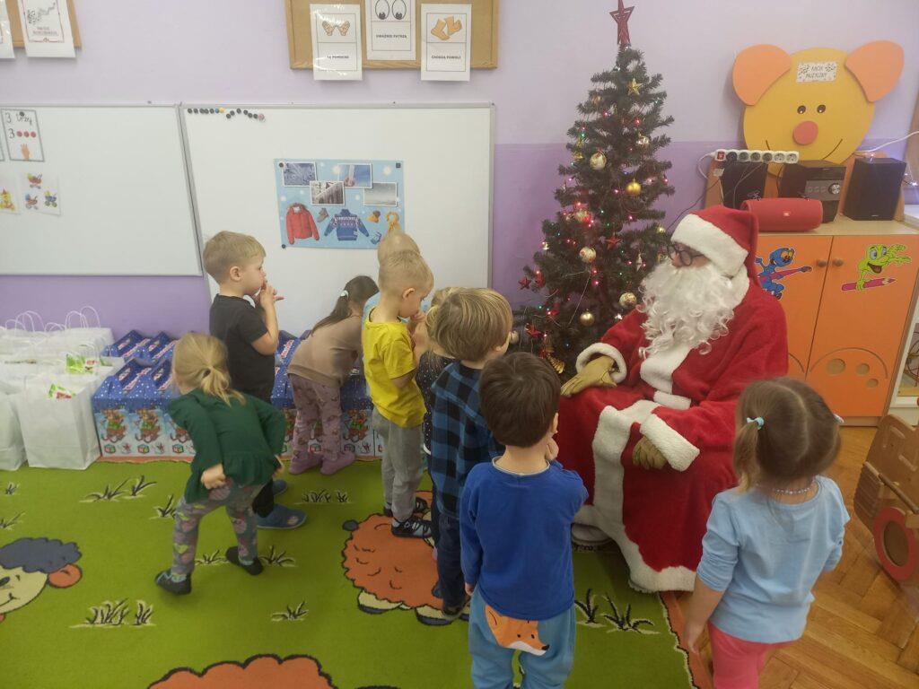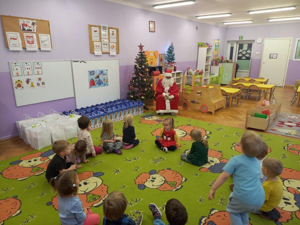 W poniedziałek, 18 grudnia czekała na wszystkie dzieci wspaniała niespodzianka. Z okazji zbliżających się wielkimi krokami Świąt Bożego Narodzenia przedszkolaki odwiedzili Aktorzy z teatru WidziMiSię z przedstawieniem zatytułowanym ,,Zimowa opowieść”. Bohaterami spektaklu było rodzeństwo, brat i siostra. Chłopiec tak bardzo pragnął dostać prezent, że wpadł przez to w nie lada kłopoty! Droga, którą przeszedł dostarczyła mu wiele doświadczeń odmieniając chłopca. Bohaterowie na szczęście doczekali się szczęśliwego finału pozostawiając po sobie wiele pozytywnych emocji i uśmiechu na twarzach dzieci. Wszyscy z wielkim zainteresowaniem śledzili losy bohaterów, a na koniec Aktorzy zostali nagrodzeni gromkimi brawami ?To jednak nie był koniec atrakcji tego dnia. Dzieci z ,,dziewiątki” odwiedził niezwykły gość, sam Święty Mikołaj, który przyniósł przedszkolakom wspaniałe prezenty. To był naprawdę niezapomniany dzień ?