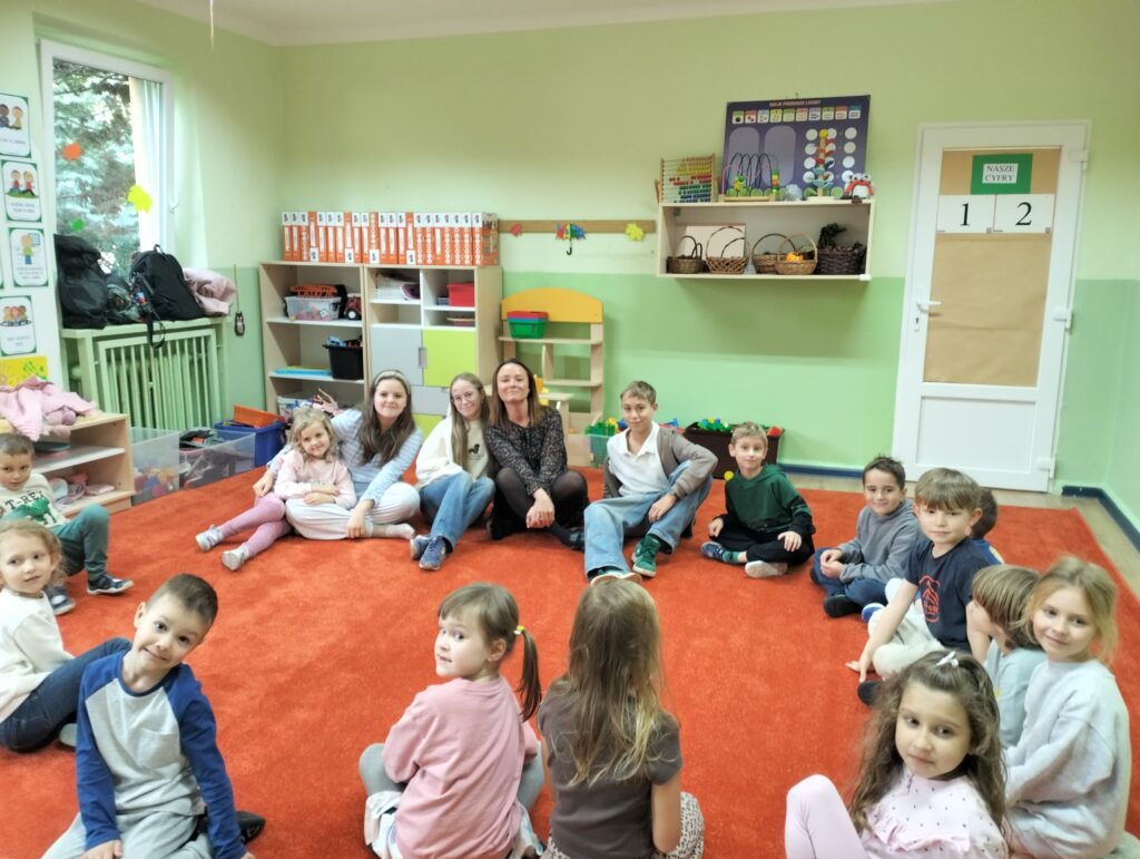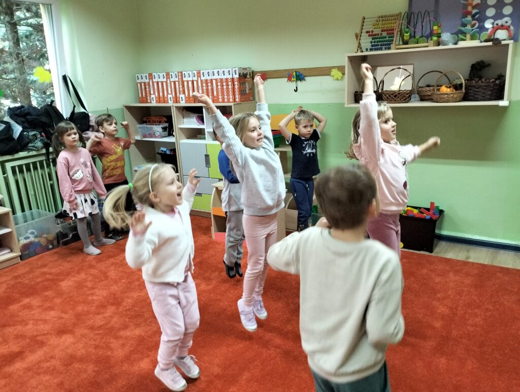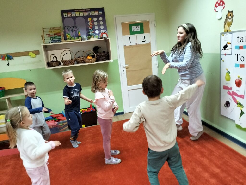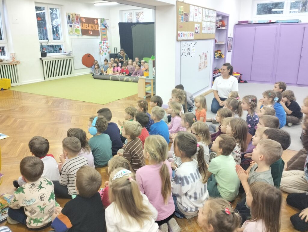Od początku października naszą grupę w każdy poniedziałek odwiedzają uczniowie Szkoły Podstawowej Nr 120. Ola, Igor i Natasza są absolwentami naszego przedszkola. Nasze spotkania polegają na nauce tańca i wspólnych zabawach muzyczno-ruchowych. Sowy podczas spotkań uczą się podstawowych kroków tańców turniejowych. Ostatnio mieliśmy nawet okazję obejrzeć występ Igora i Nataszy, który spotkał się z wielkim entuzjazmem ze strony naszych przedszkolaków. Już nie możemy doczekać się następnego poniedziałku i odwiedzin naszych Gości.