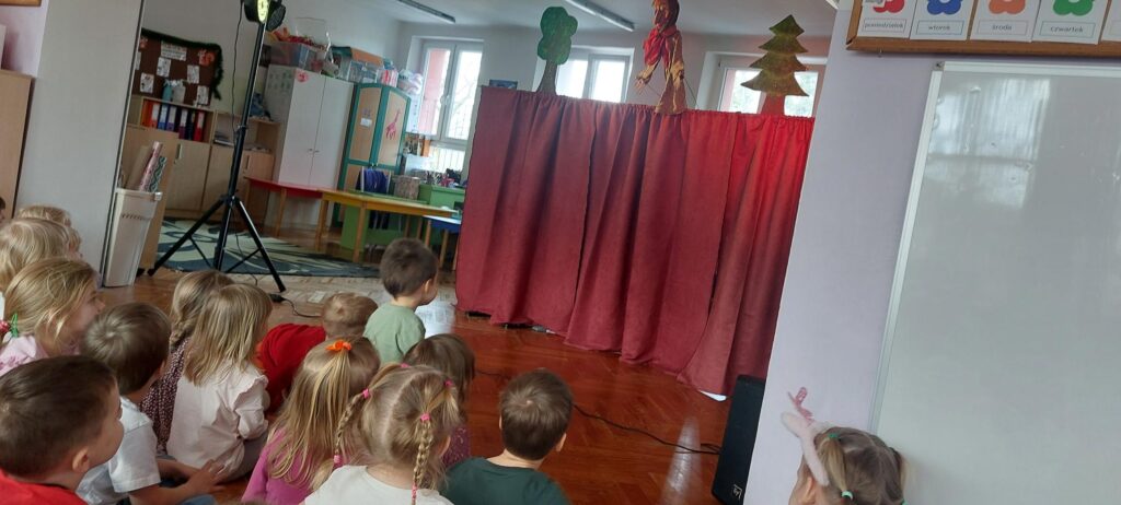 16 lutego odwiedzili nas aktorzy z Teatru Pacuś. Z uśmiechami na twarzy oglądaliśmy przedstawienie pt. „Przygody Jeża Kolczatki” – bajkę pełną zabawnych sytuacji angażującą dzieci do wspólnej zabawy. Spektakl pokazał dzieciom, jak ważne są odwaga, współpraca i wzajemna pomoc. Barwne lalki oraz wspólna nauka piosenki sprawiły, że przedstawienie było radosnym i angażującym przeżyciem.