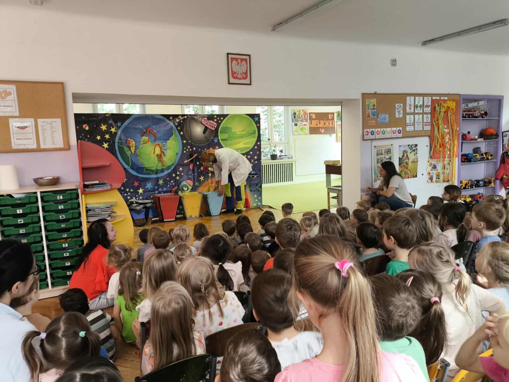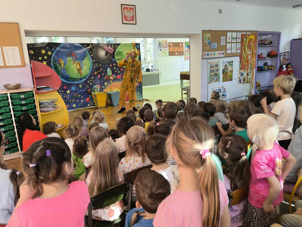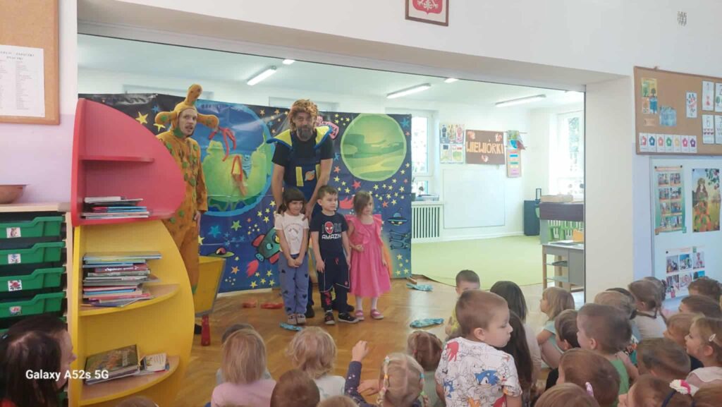 18 września gościliśmy Teatr „Pomarańczowy Cylinder” z Torunia. Trupa teatralna przedstawiła nam spektakl pod tytułem „Profesorek Wodorek w kosmosie”.