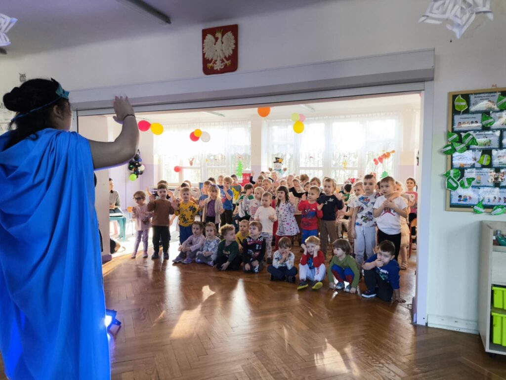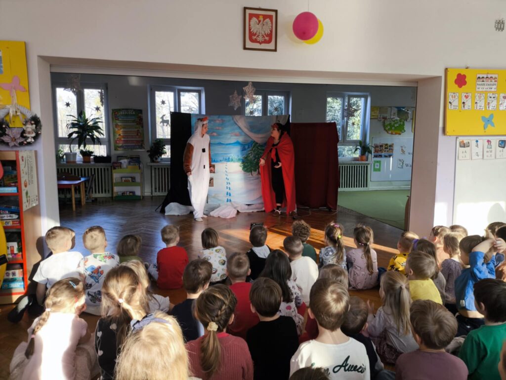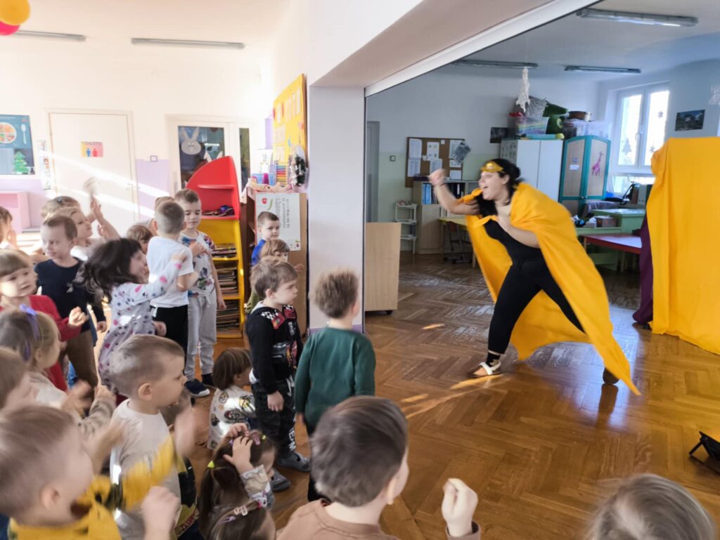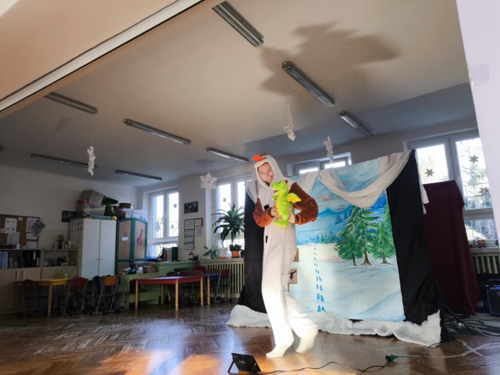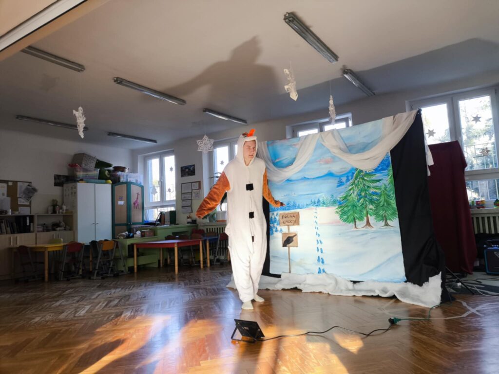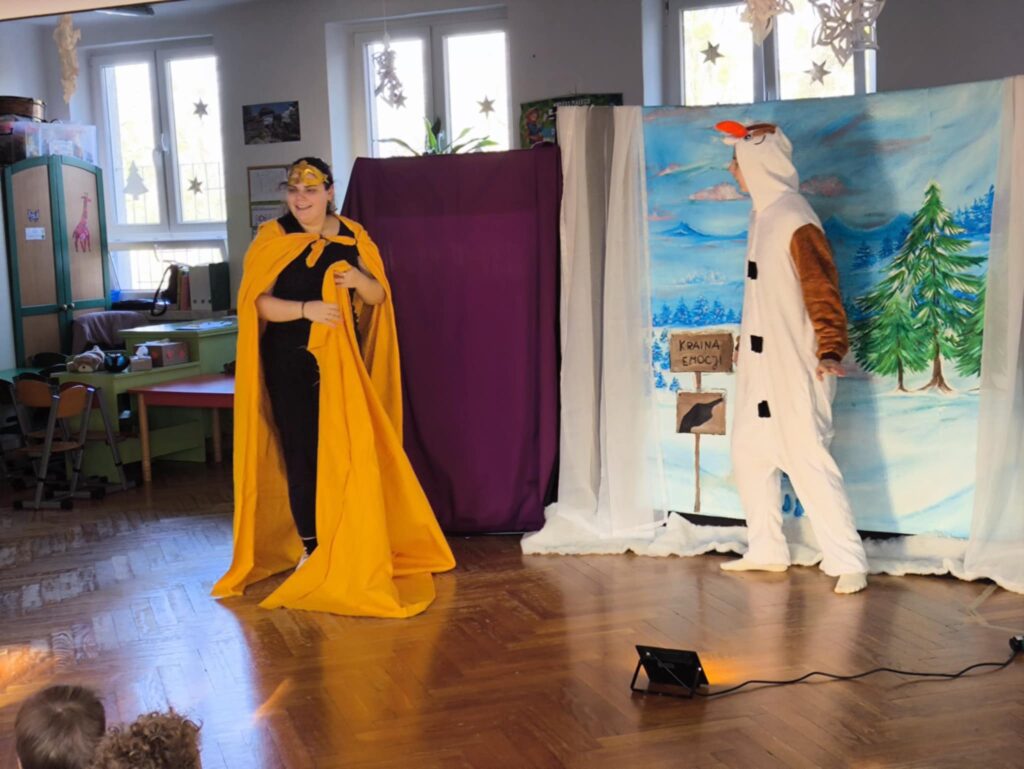 We wtorek, 11 lutego odwiedzili nasze przedszkole Aktorzy z Teatru Zamaskowani z przedstawieniem pt: ,,Dino i Bałwanek w świecie emocji”. Spektakl podejmuje niezwykle ważny temat emocji. Podczas spektaklu dzieci nazywały różne emocje, oraz dowiedziały się jak radzić sobie z tymi negatywnymi.