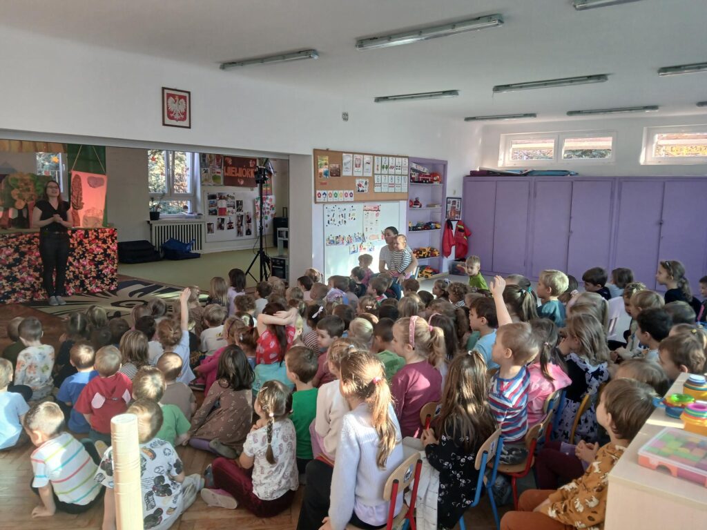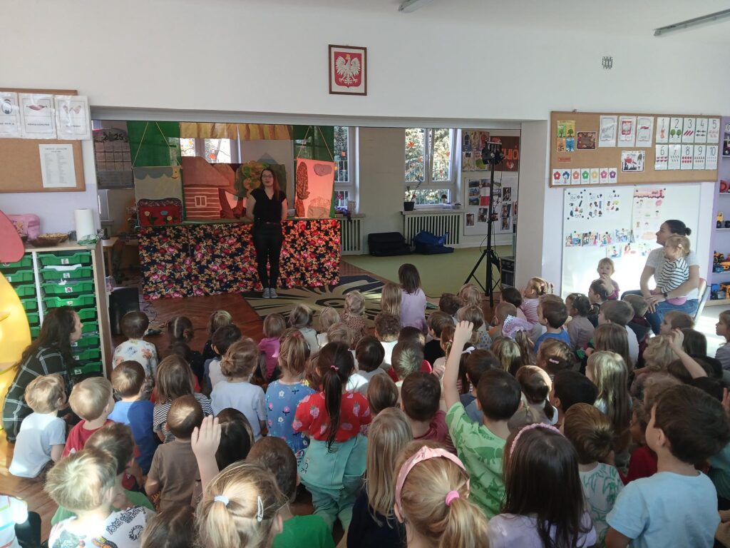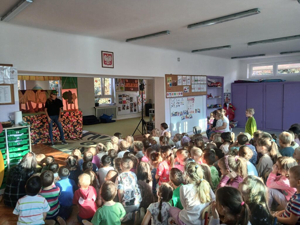 6 listopada odbyło się w naszym przedszkolu przedstawienie teatralne pt. „O Romusiu, o Emilce i zielonej koniczynce”, w wykonaniu Teatru „Pacuś”. Spektakl w subtelny sposób pokazał dzieciom, jak należy dbać o przyrodę i ją chronić.