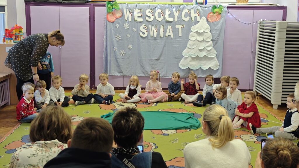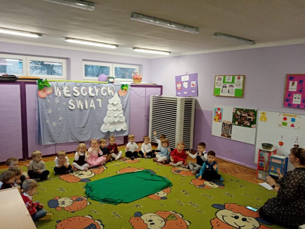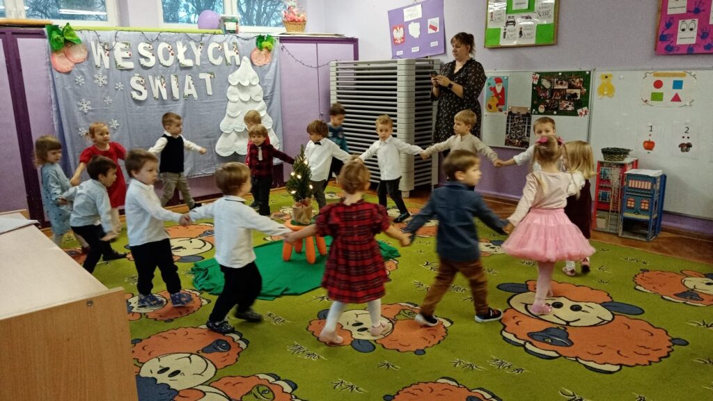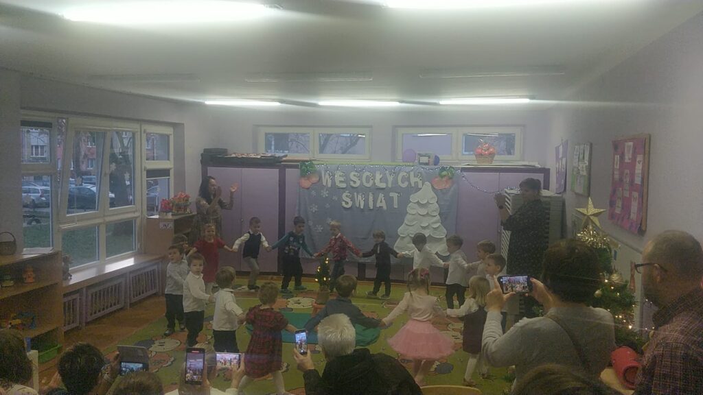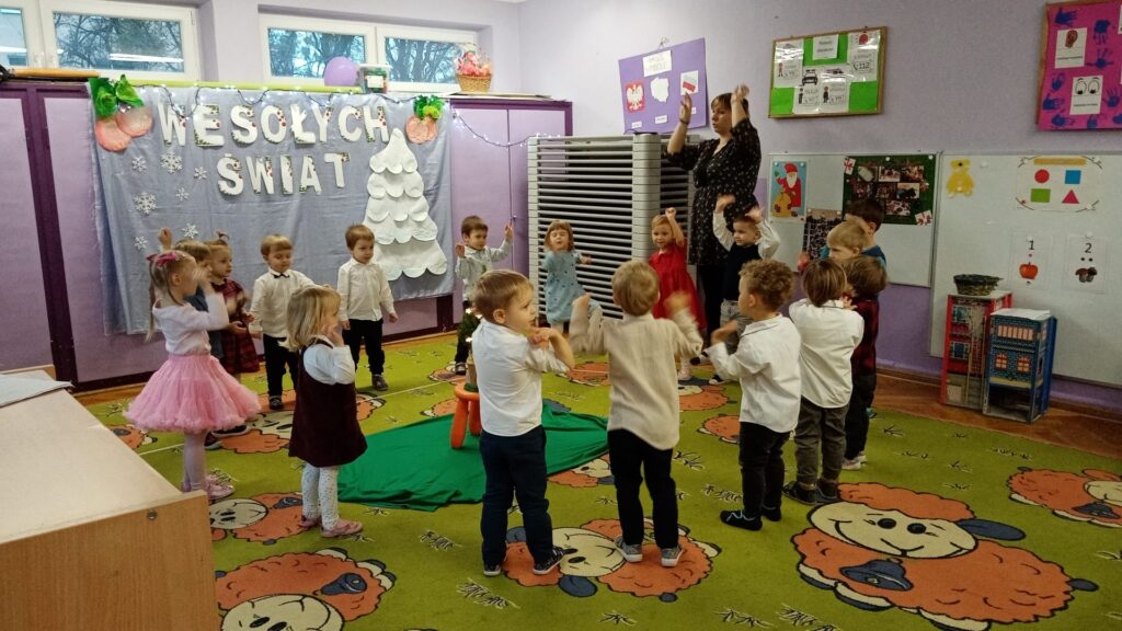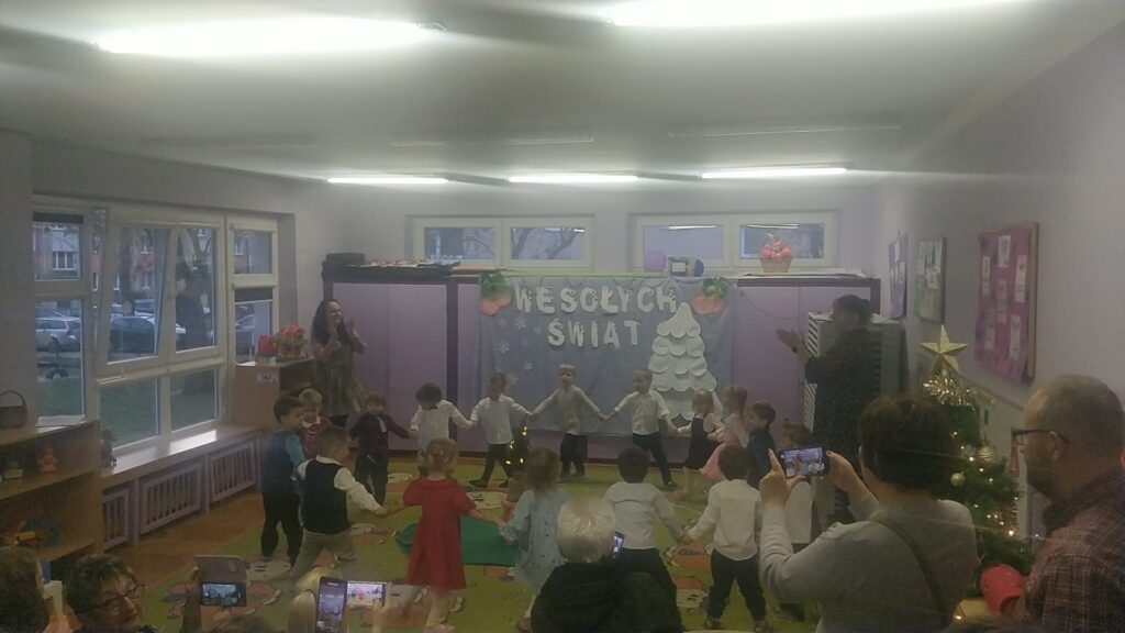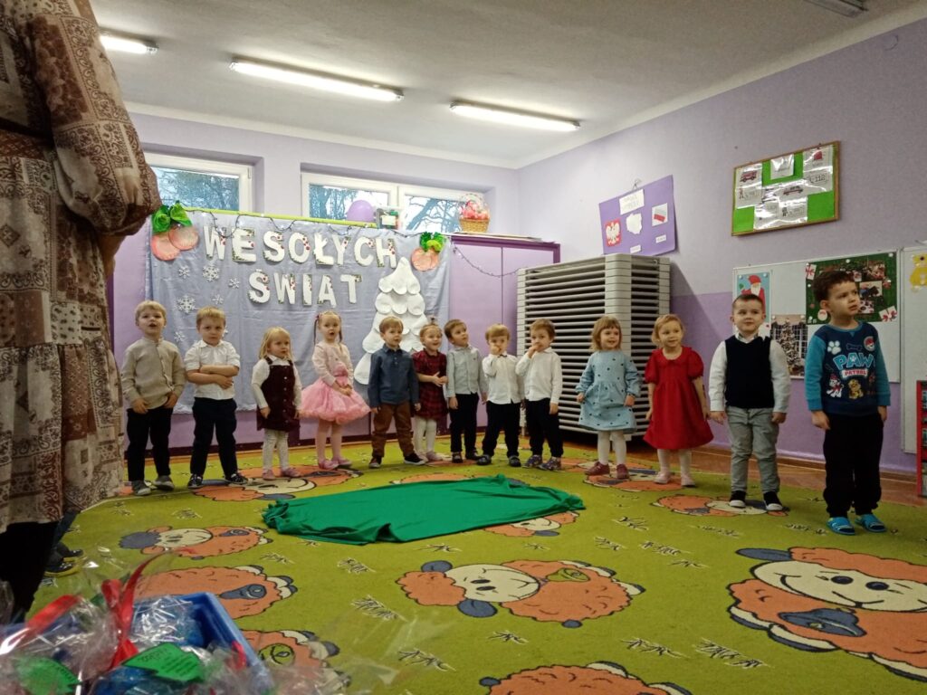 18 grudnia w naszej grupie odbyła się uroczystość choinkowa. Świąteczna atmosfera panowała już od samego rana. Dzieci przygotowały z myślą o swoich rodzicach piękny występ. Były piosenki, tańce, wiersze oraz gra na instrumentach. Uroczystość przebiegła w bardzo miłej atmosferze. Wszystkie dzieci obdarowały swoich rodziców własnoręcznie wykonanymi prezentami.
