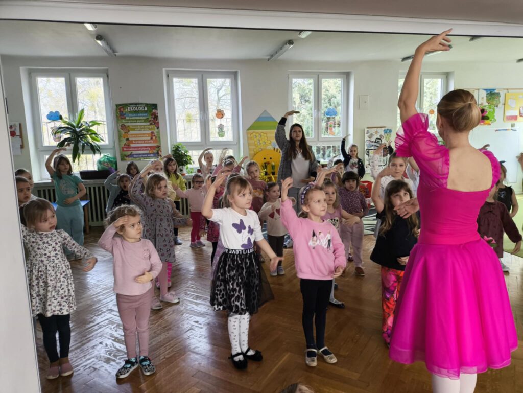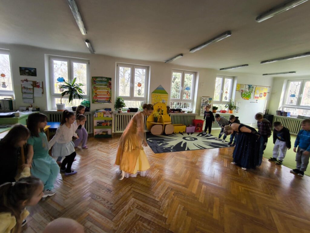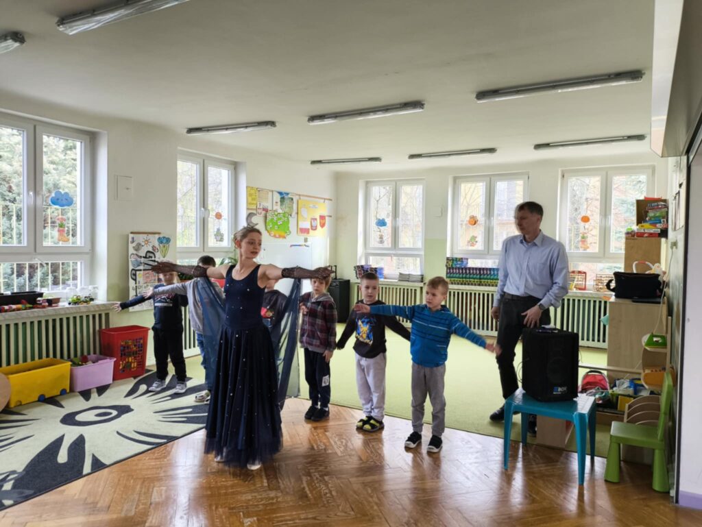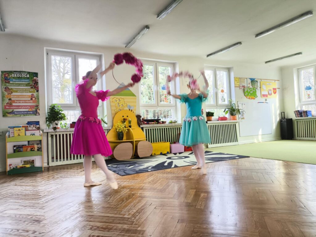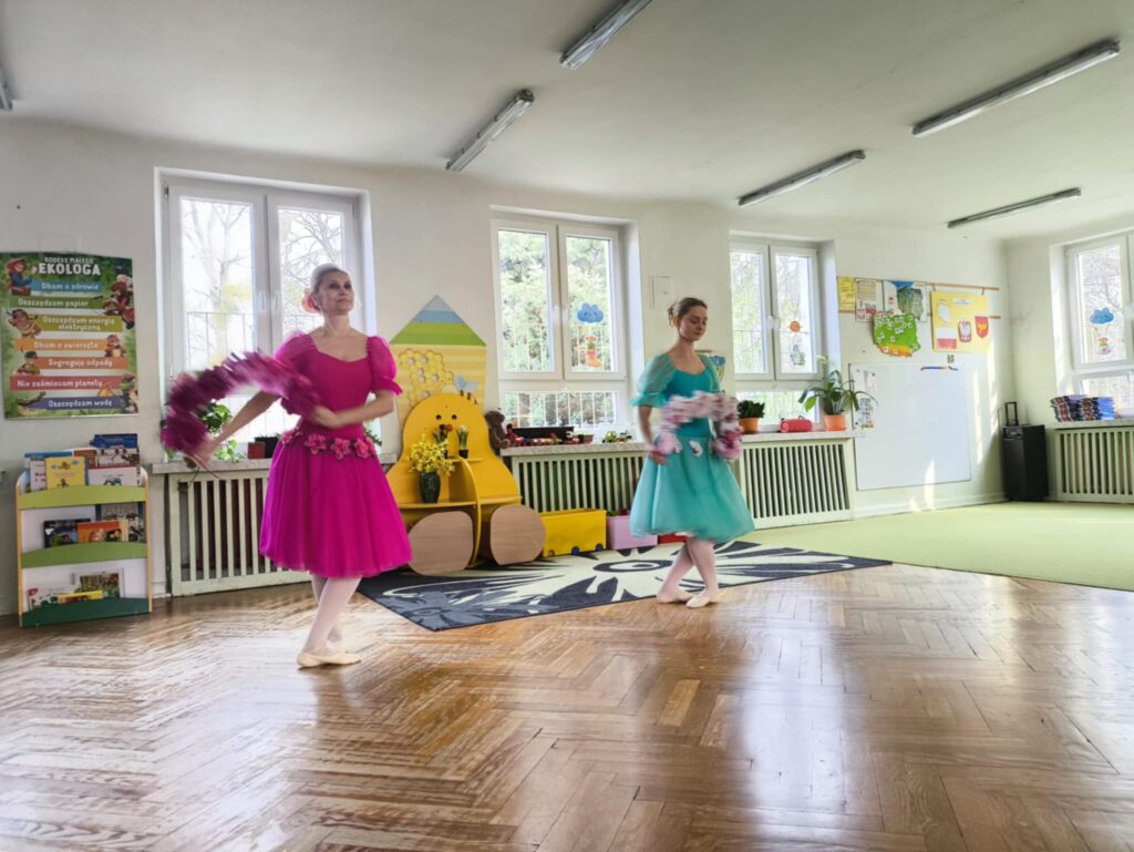 W ostatnim tygodniu marca gościliśmy w naszym przedszkolu aktorów z Teatru Wielkiego w Łodzi. Na powitane wiosny tancerki zaprezentowały tańce, które przeniosły nas do Czarodziejskiego ogrodu. ,,Taniec kwiatów”, ,,Taniec kolorowego Motyla”, ,,Taniec Słońca” i ,,Taniec Księżyca”, wzbudziły u wszystkich dzieci i pań wielki zachwyt. Główną atrakcją pokazu był jak zwykle występ samych przedszkolaków za który zostali nagrodzeni gromkimi brawami.