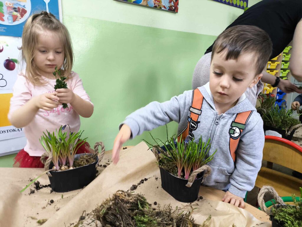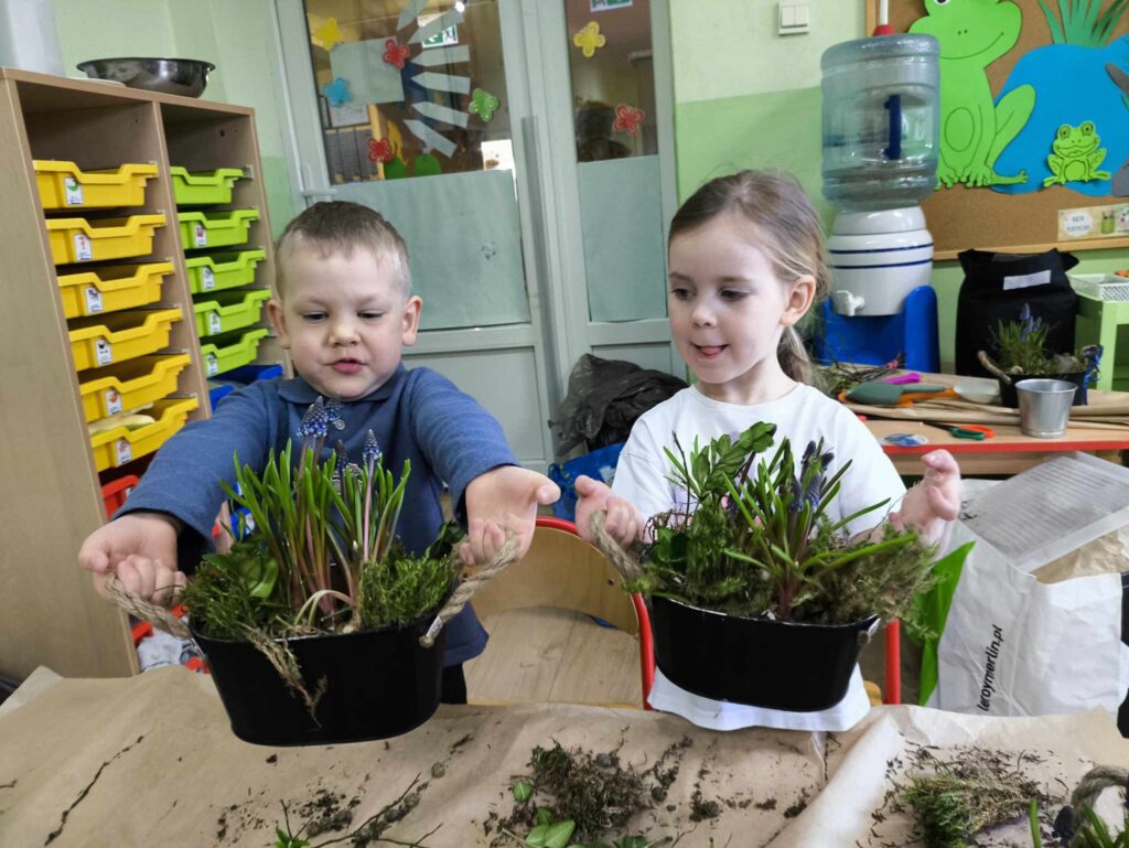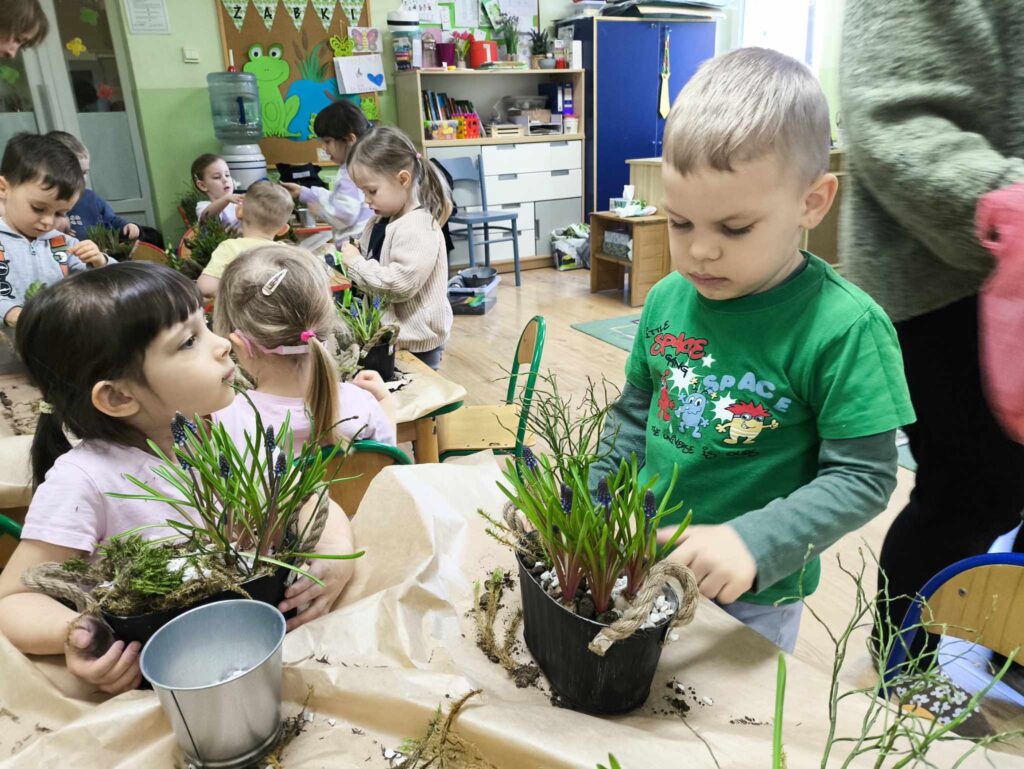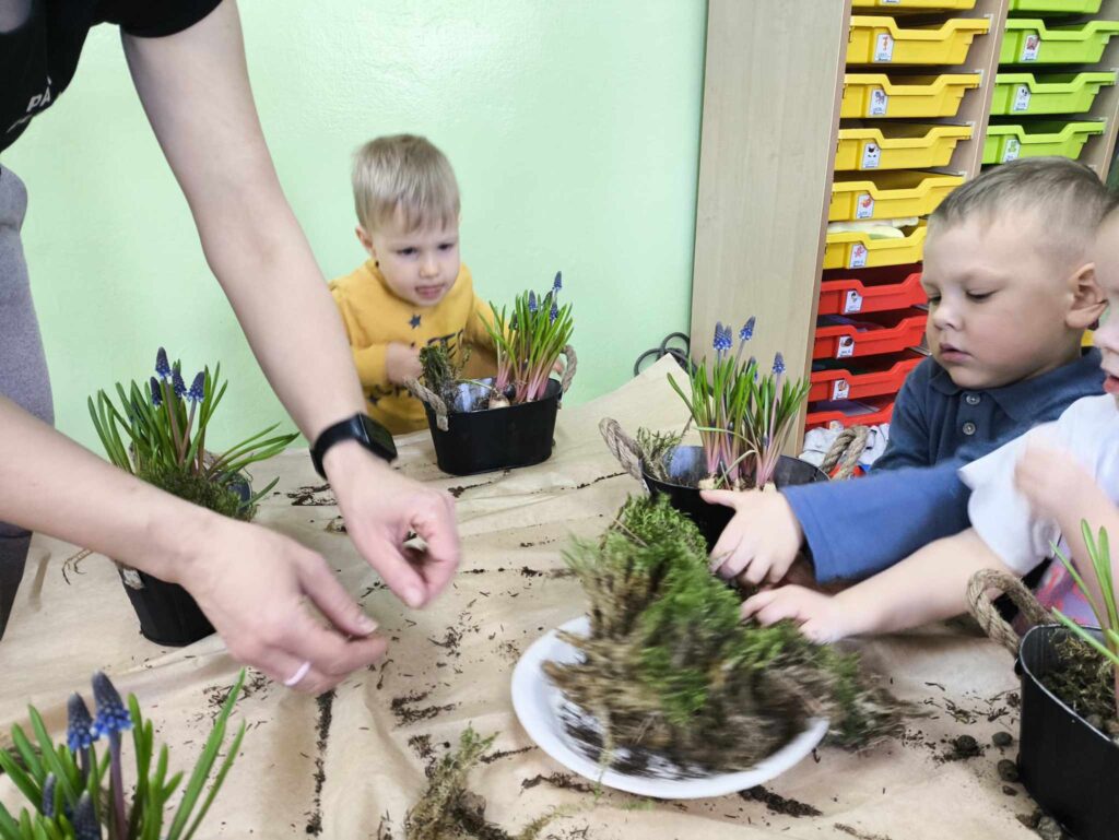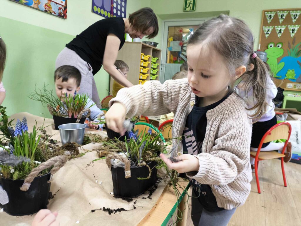 8 kwietnia Żabki po raz kolejny odwiedziła Pani Marysia. Tym razem dzieci wykonały kompozycje wiosenne. Szafirki, mech, bukszpan oraz jajeczka i piórka tworzą przepiękną kompozycję, która cieszy oko nie tylko najmłodszych ale także ich rodziców 🙂 Dziękujemy Pani Marysi za wspaniałe warsztaty!