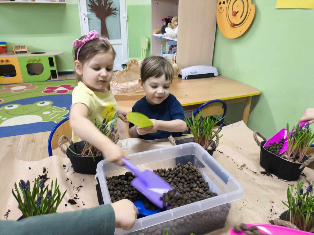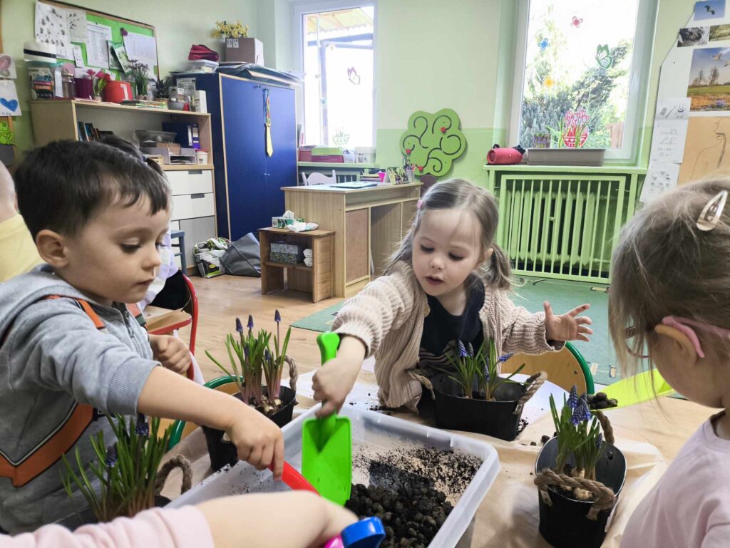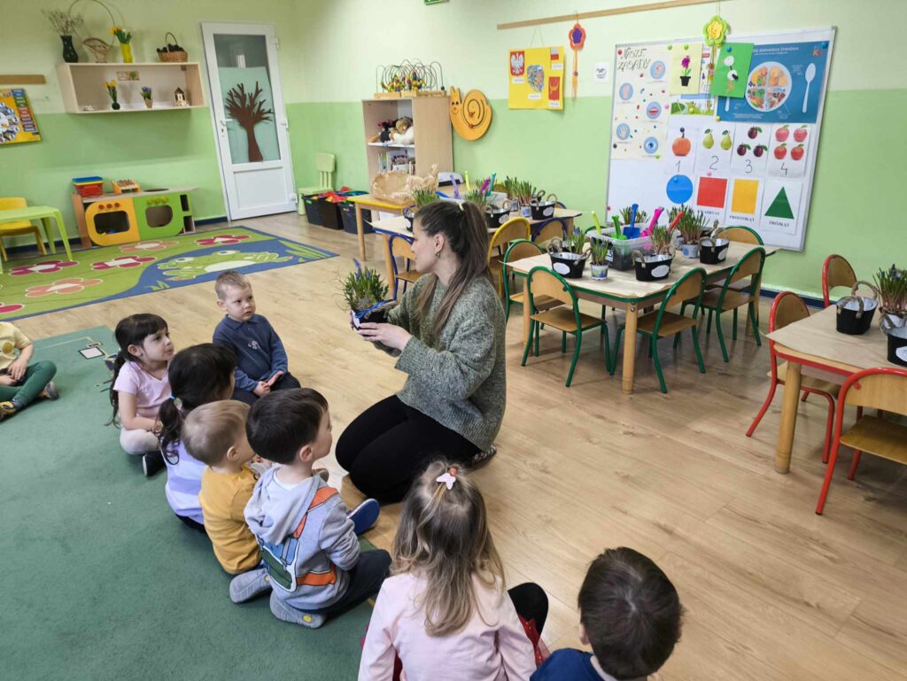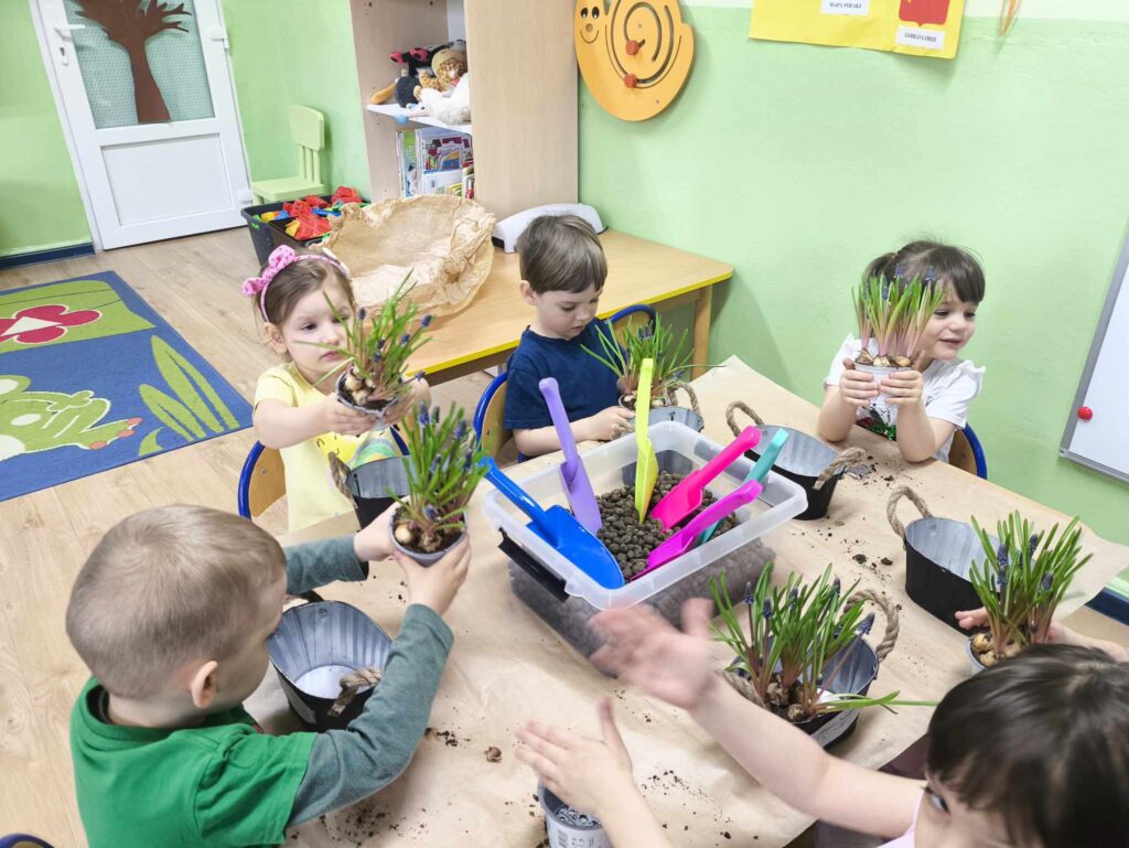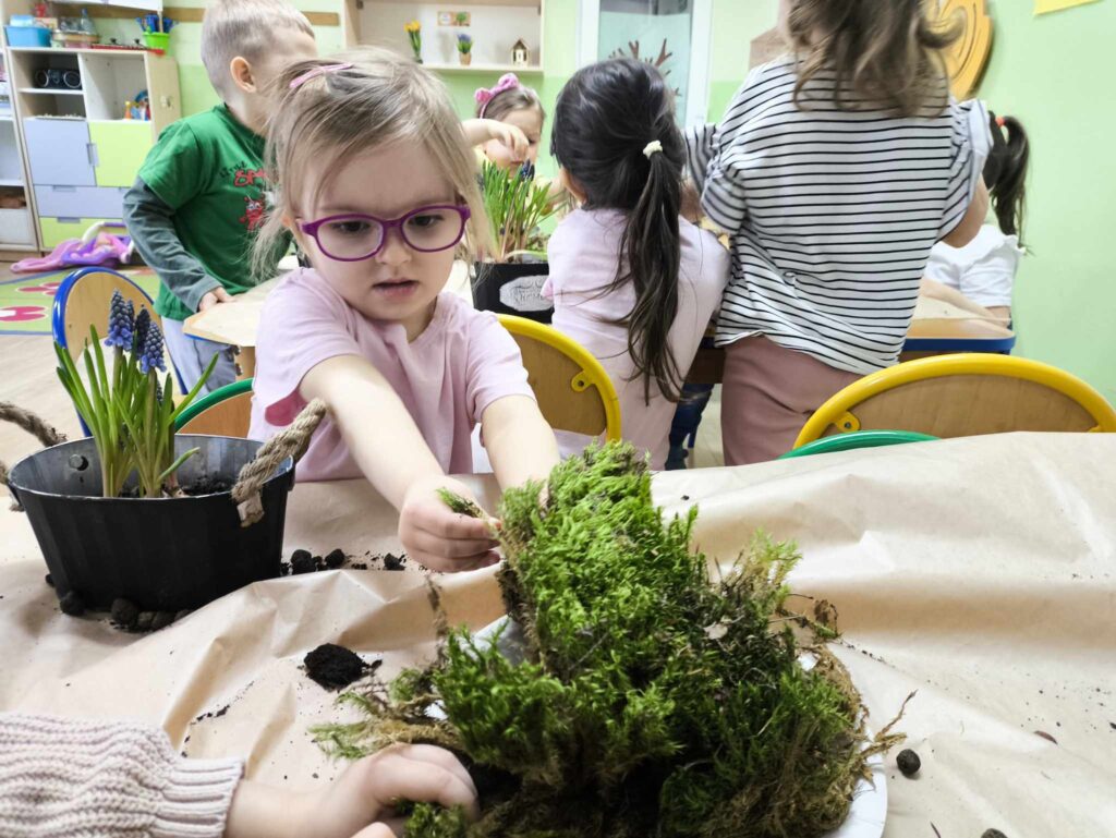 8 kwietnia Żabki po raz kolejny odwiedziła Pani Marysia. Tym razem dzieci wykonały kompozycje wiosenne. Szafirki, mech, bukszpan oraz jajeczka i piórka tworzą przepiękną kompozycję, która cieszy oko nie tylko najmłodszych ale także ich rodziców 🙂 Dziękujemy Pani Marysi za wspaniałe warsztaty!