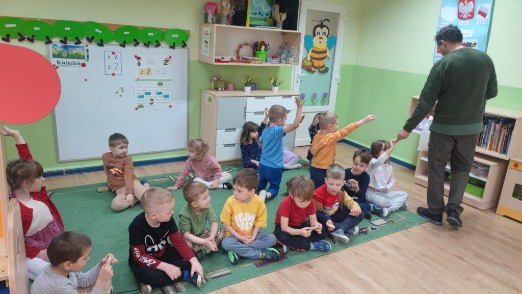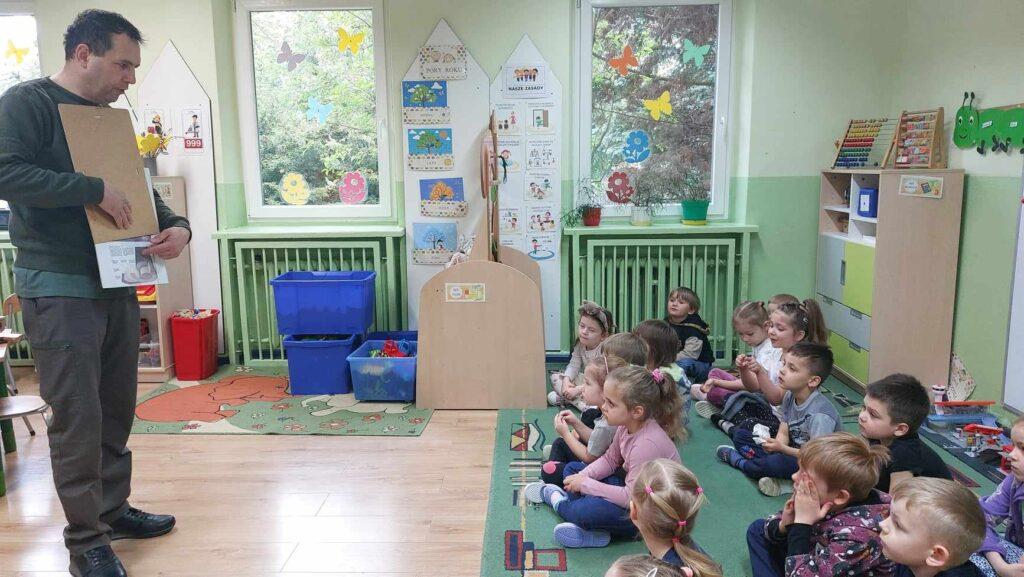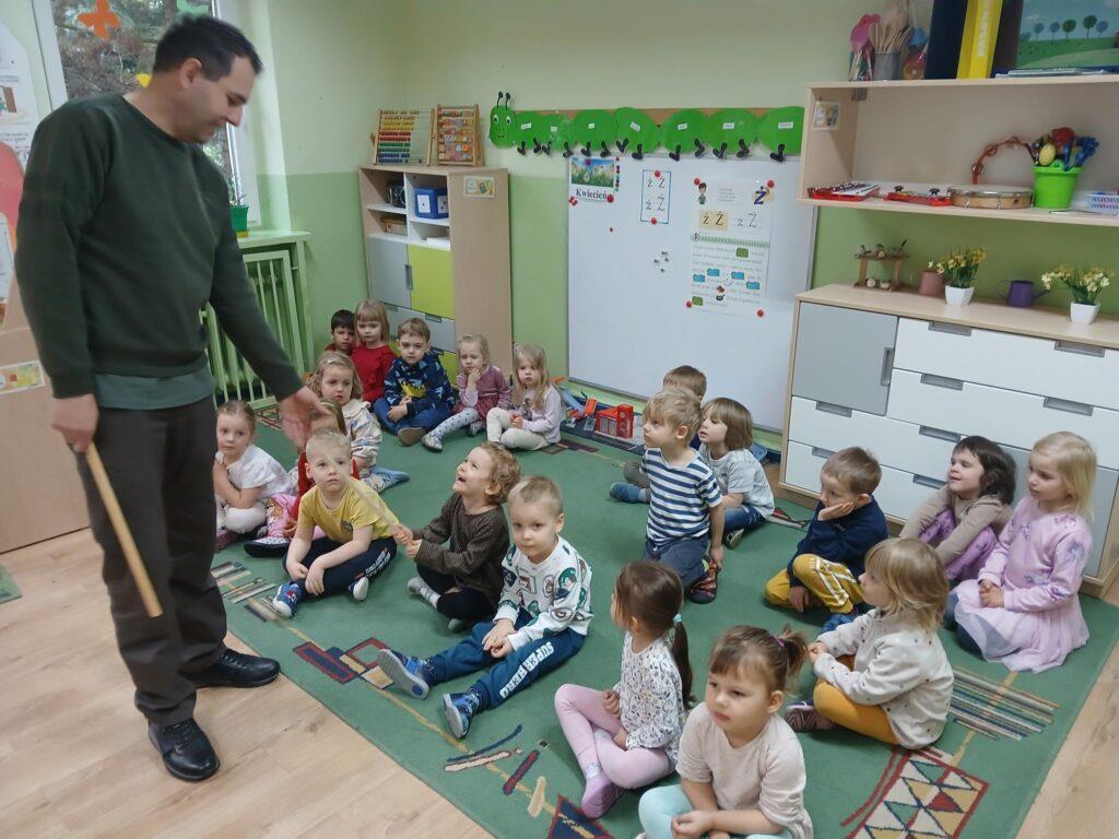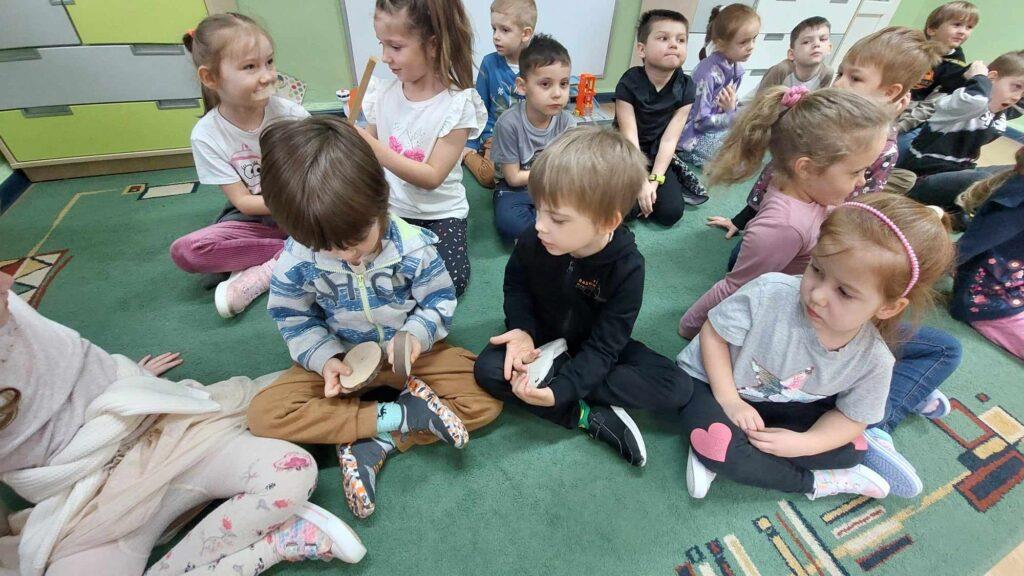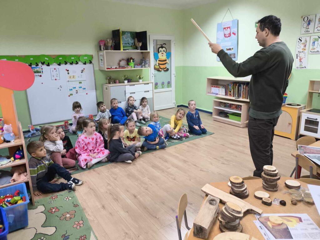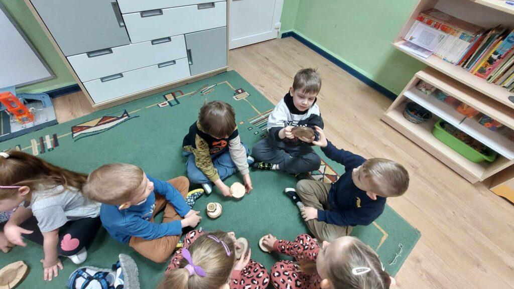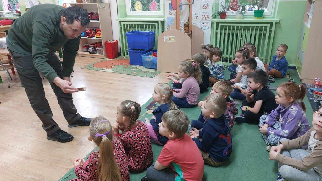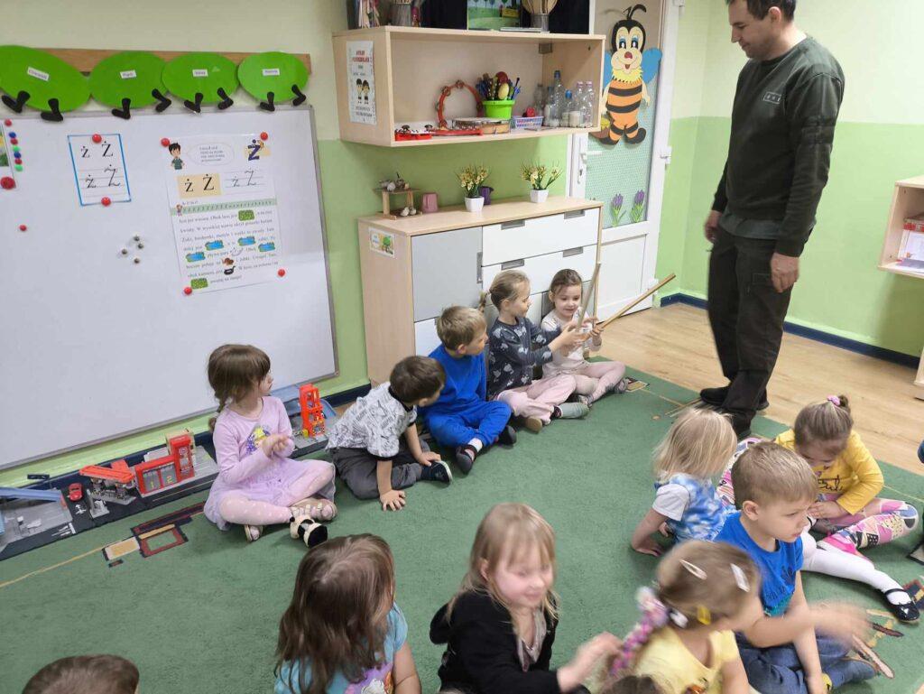 W kwietni gościliśmy u nas w przedszkolu znawcę drzew. Pan, który nas odwiedził opowiedział nam o tym jak drzewa się rozsiewają, jak są zbudowane. Mogliśmy przyjrzeć się przekrojowi pnia oraz nauczyliśmy się jak policzyć wiek drzewa. Mogliśmy porównać wagę drzewa zwykłego oraz drzewa bambusowego. Listewka z drzewa bambusowego była wyjątkowo leciutka. Przedszkolaki na koniec rozwiązywały zadania, które Pan dla nich przygotował – układały plastry drzew od najmłodszego do najstarszego oraz dzieliły krążki drzewa na owocowe i zwykłe. W prezencie dzieci dostały kawałek plastru drewna w postaci magnesu. To były bardzo ciekawe zajęcia!