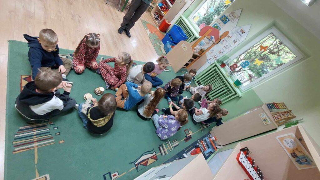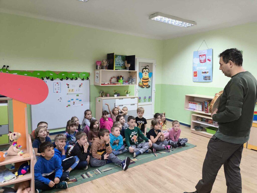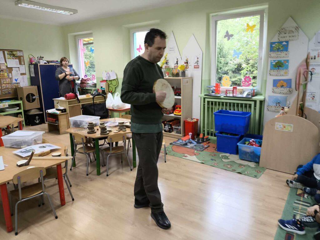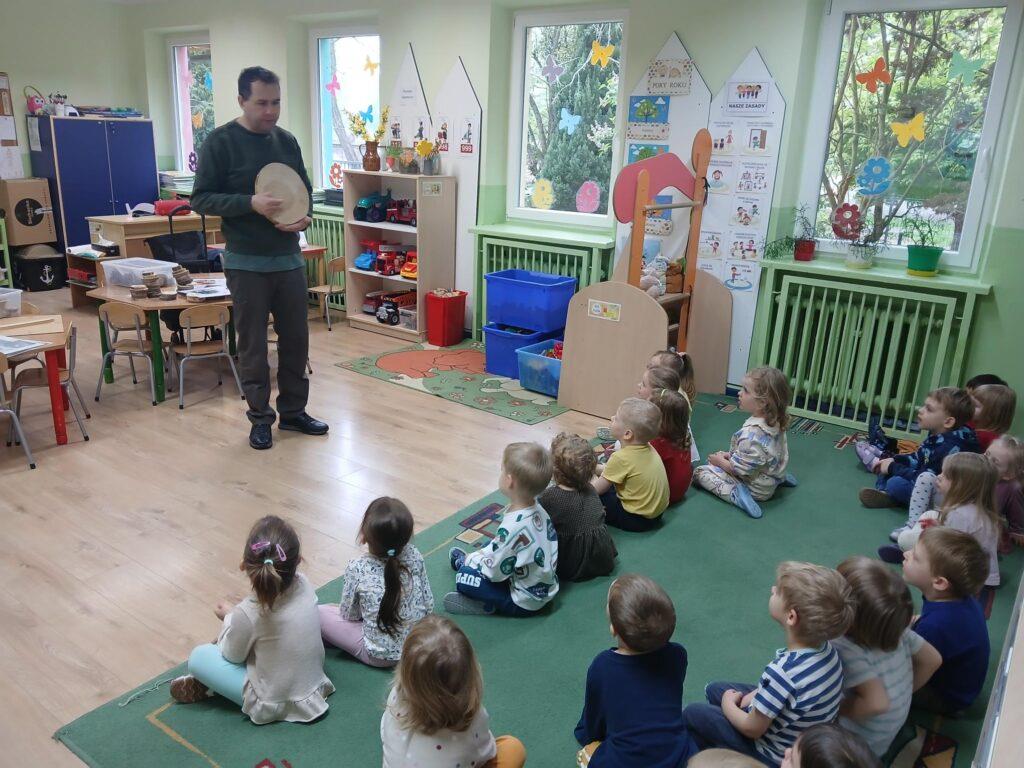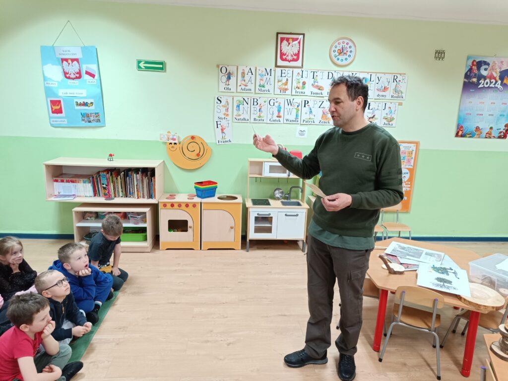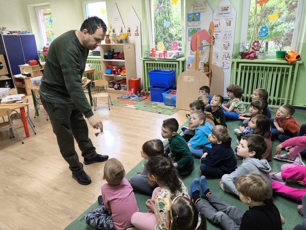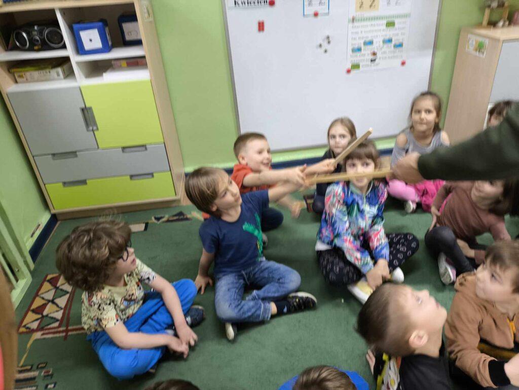 W kwietni gościliśmy u nas w przedszkolu znawcę drzew. Pan, który nas odwiedził opowiedział nam o tym jak drzewa się rozsiewają, jak są zbudowane. Mogliśmy przyjrzeć się przekrojowi pnia oraz nauczyliśmy się jak policzyć wiek drzewa. Mogliśmy porównać wagę drzewa zwykłego oraz drzewa bambusowego. Listewka z drzewa bambusowego była wyjątkowo leciutka. Przedszkolaki na koniec rozwiązywały zadania, które Pan dla nich przygotował – układały plastry drzew od najmłodszego do najstarszego oraz dzieliły krążki drzewa na owocowe i zwykłe. W prezencie dzieci dostały kawałek plastru drewna w postaci magnesu. To były bardzo ciekawe zajęcia!