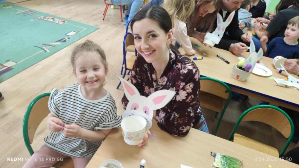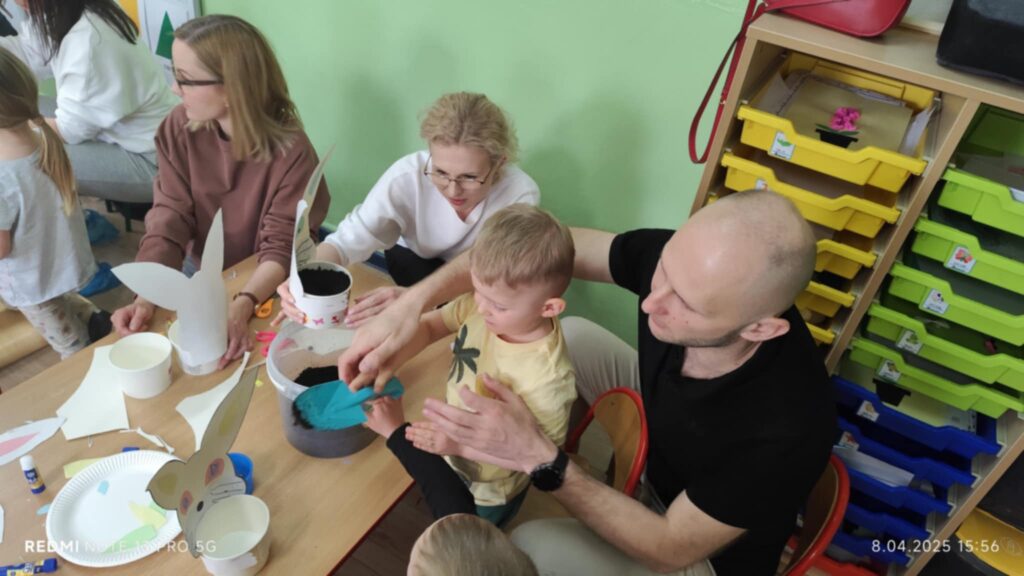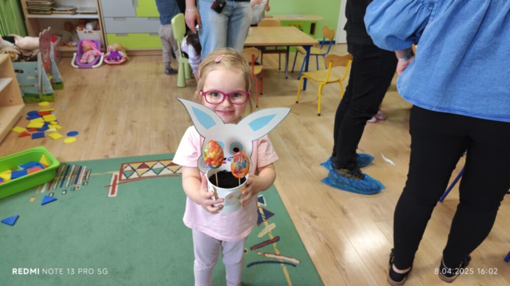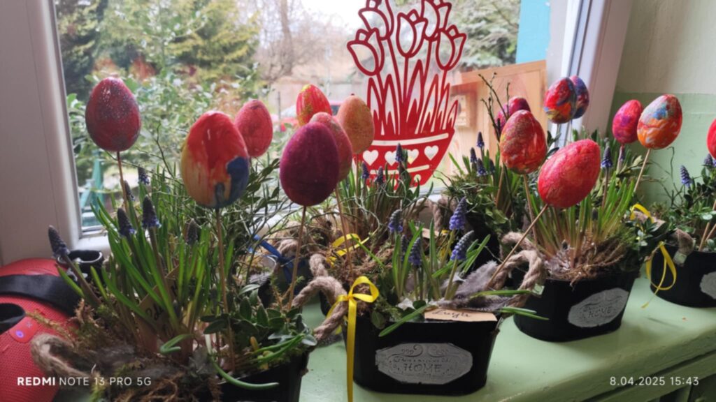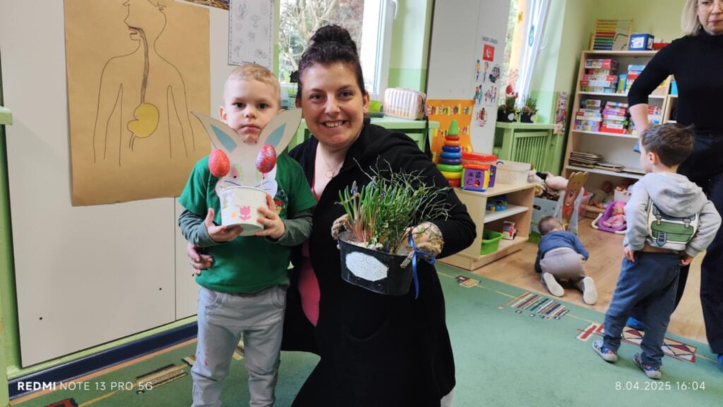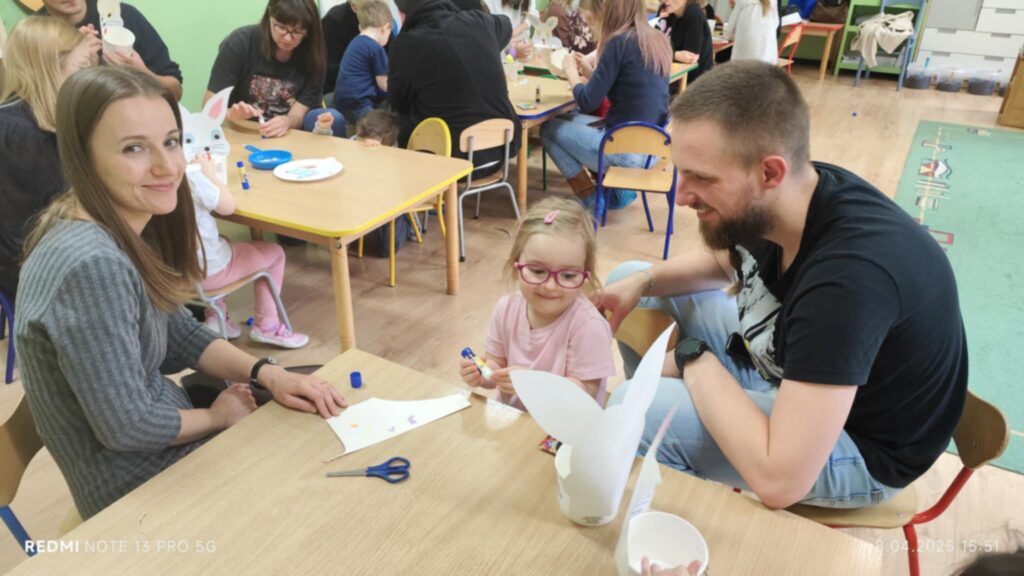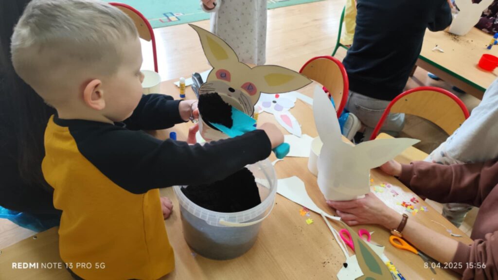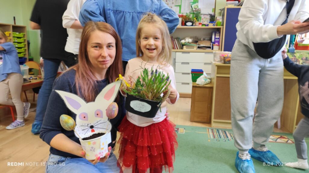 8 kwietanie odbyły się w naszej grupie wyjątkowe warsztaty wielkanocne. Wyjątkowe, ponieważ uczestniczyliśmy w nich razem z rodzicami :). Każdy z nas miał za zadanie pomalować jajka, następnie stworzyć zajączka, a później udekorować doniczkę i zasiać owies. Warsztaty minęły w bardzo miłej i rodzinnej atmosferze. Nasza praca była wspaniałą ozdobą wielkanocną 🙂