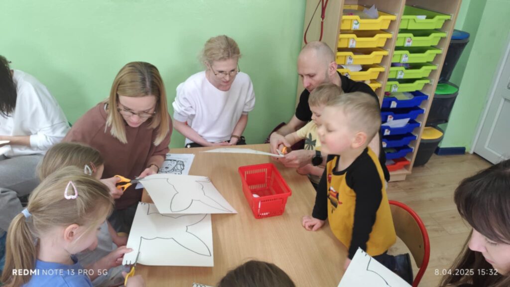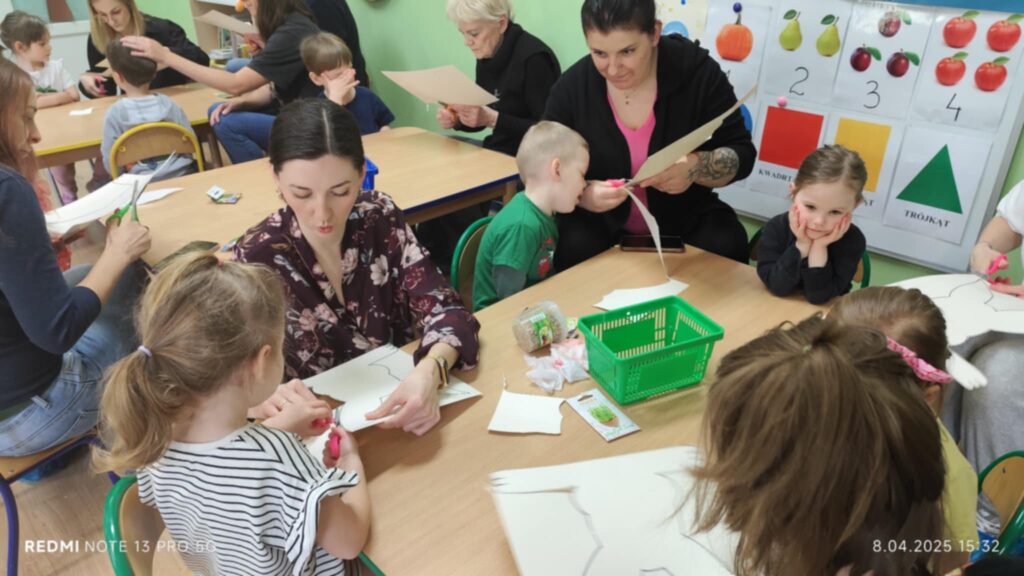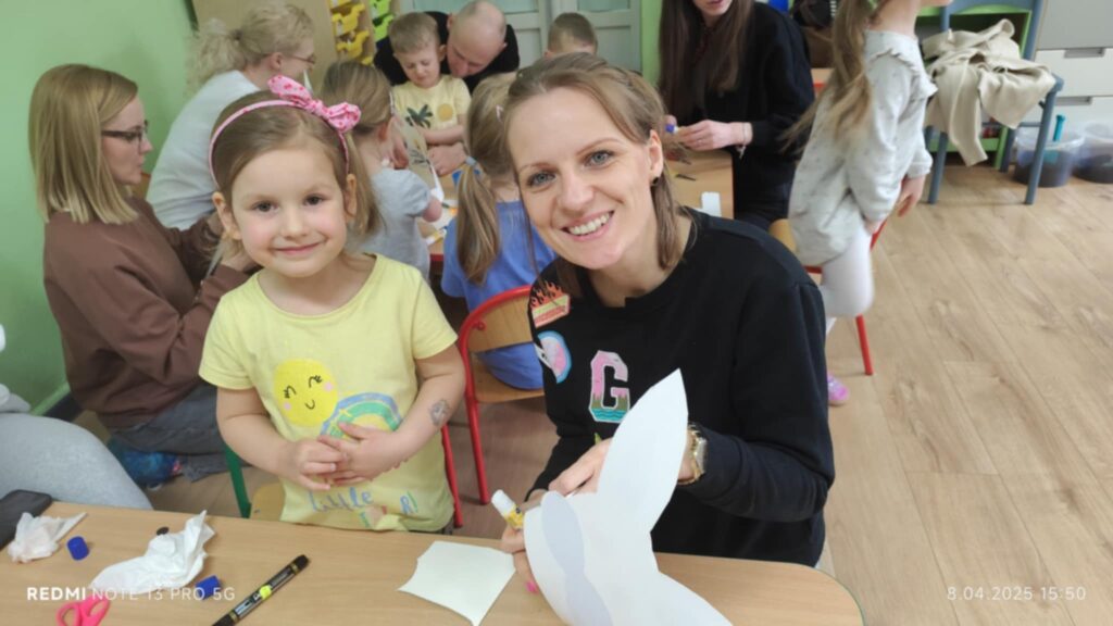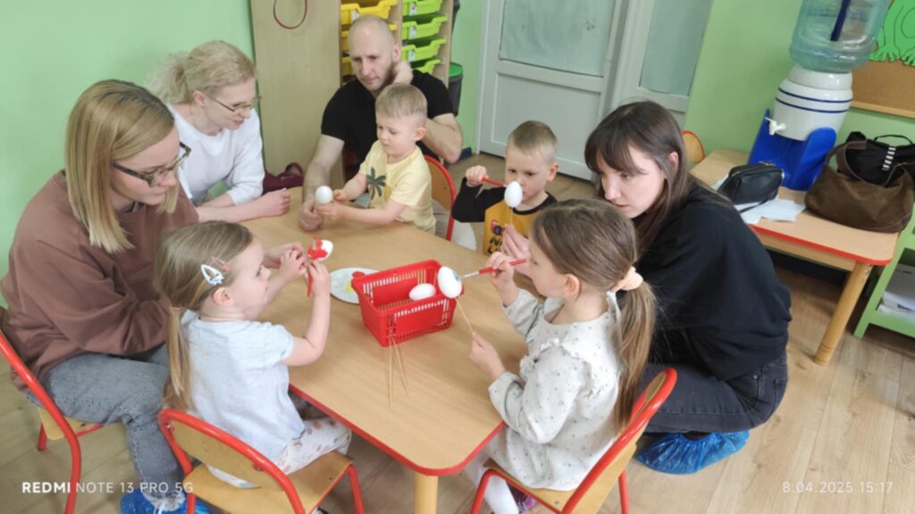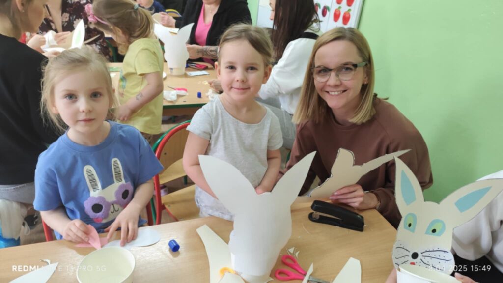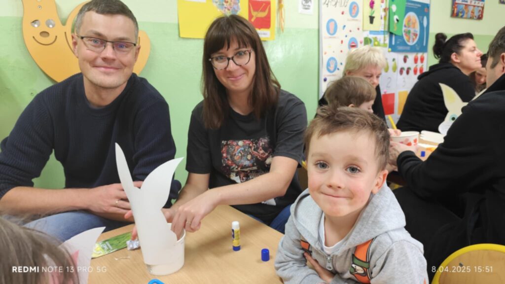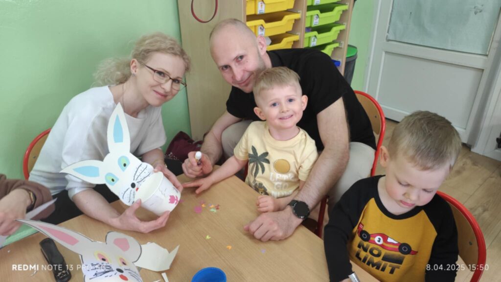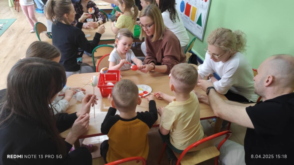 8 kwietanie odbyły się w naszej grupie wyjątkowe warsztaty wielkanocne. Wyjątkowe, ponieważ uczestniczyliśmy w nich razem z rodzicami :). Każdy z nas miał za zadanie pomalować jajka, następnie stworzyć zajączka, a później udekorować doniczkę i zasiać owies. Warsztaty minęły w bardzo miłej i rodzinnej atmosferze. Nasza praca była wspaniałą ozdobą wielkanocną 🙂