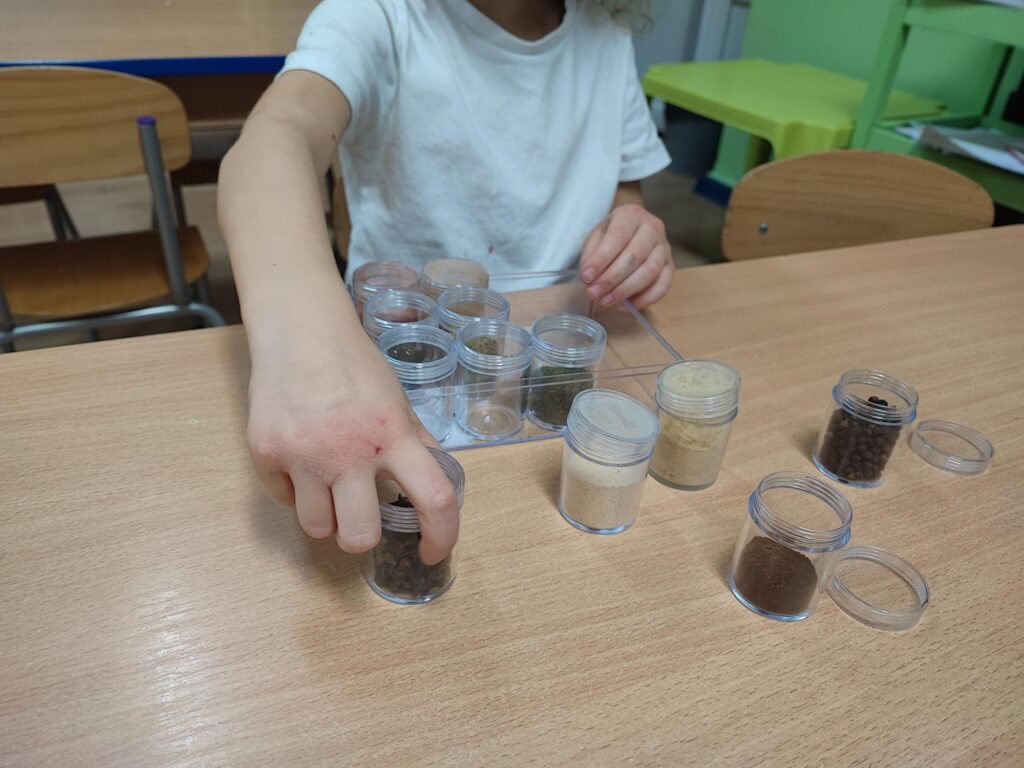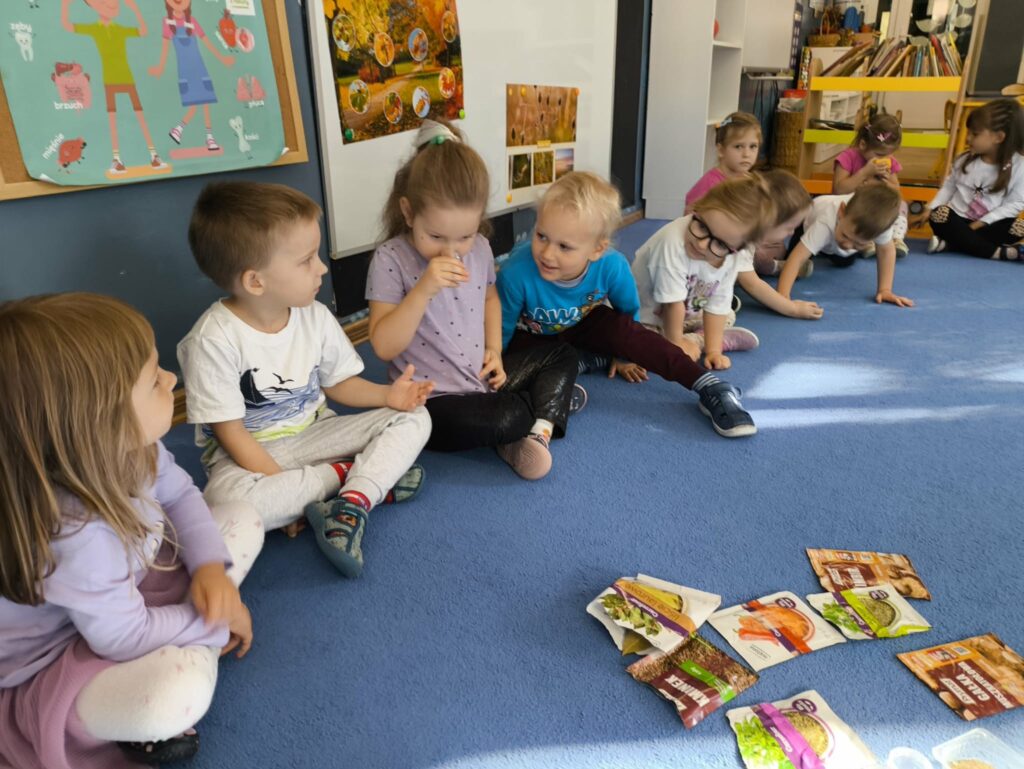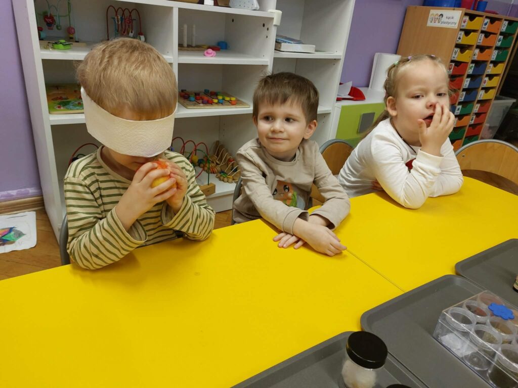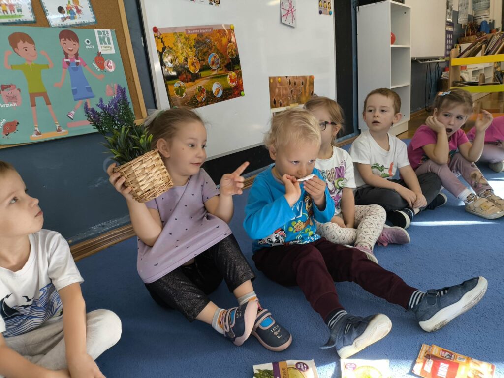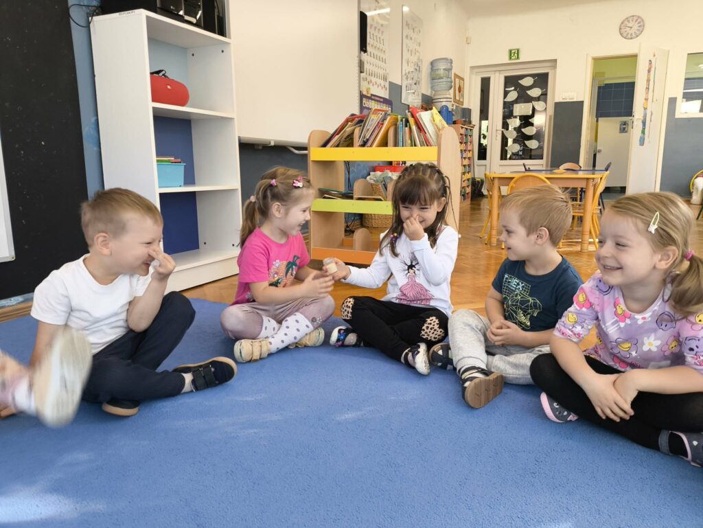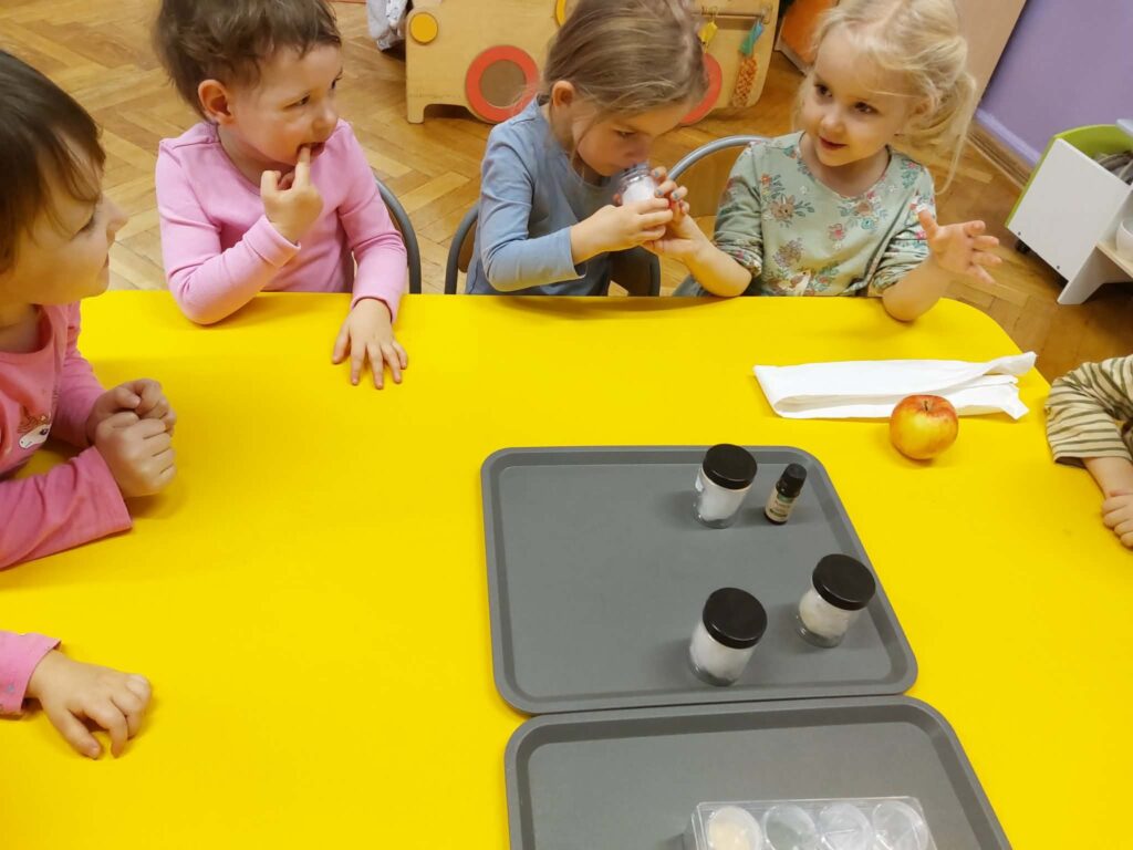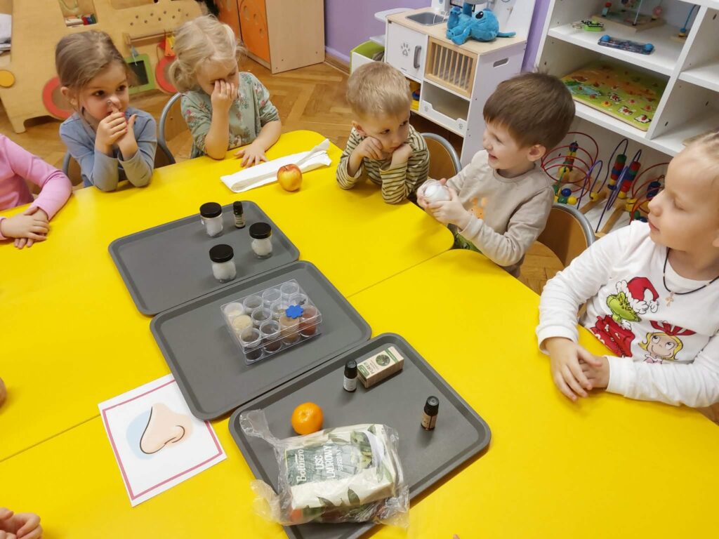 W ramach projektu Gramy Zmysłami rozwijamy i integrujemy zmysły dzieci podczas codziennych zajęć i zabaw. Celem wyznaczonym na listopad było rozwijanie węchu. Podczas zajęć dzieci uczestniczyły w zabawach z aromatycznymi przyprawami i owocami, próbując je rozpoznawać i nadawać im nazwy.