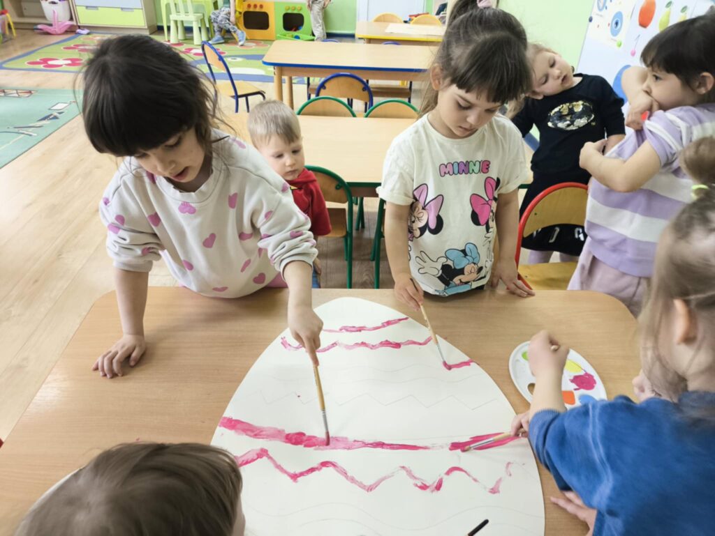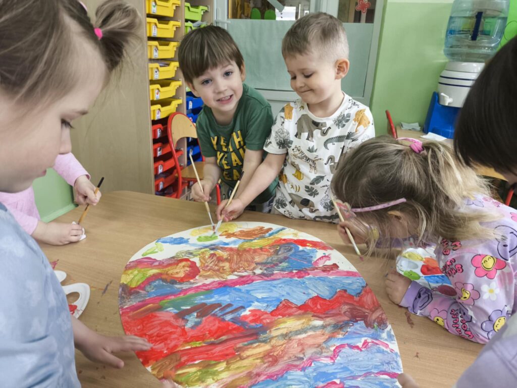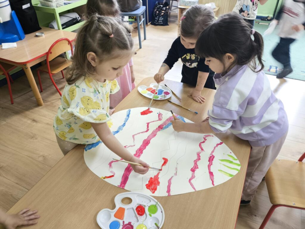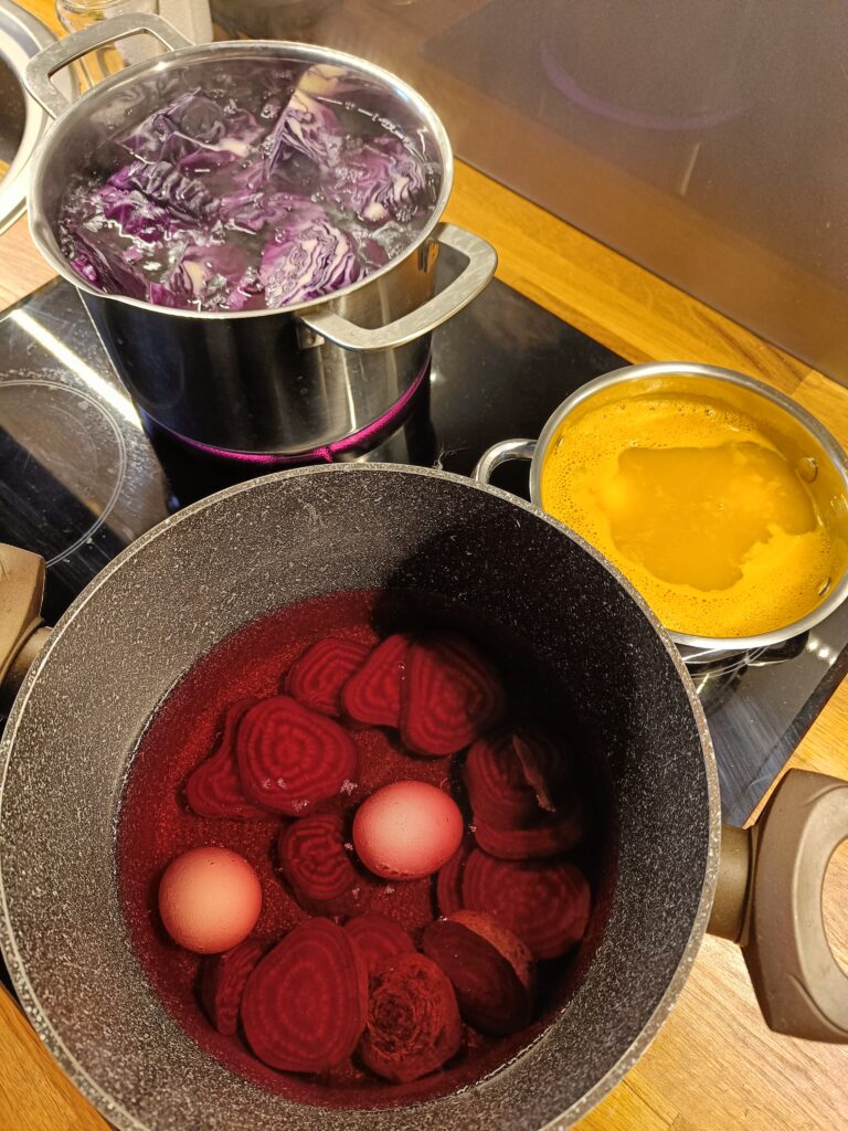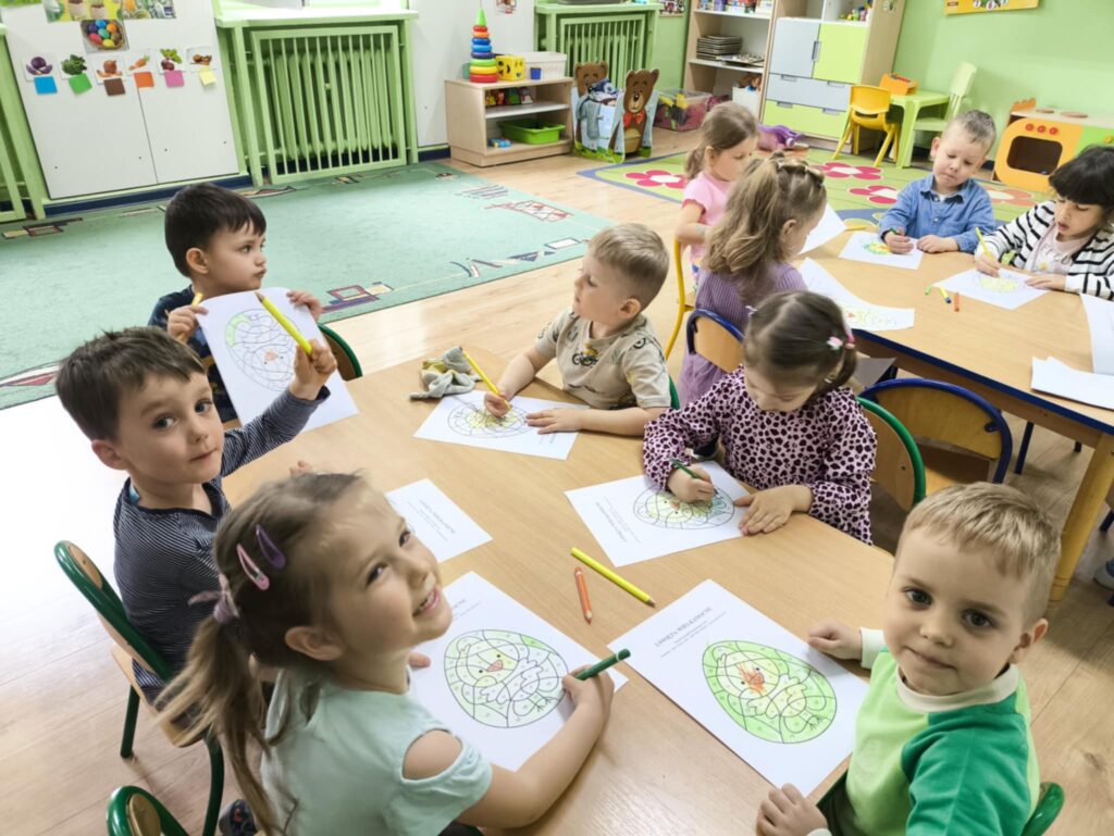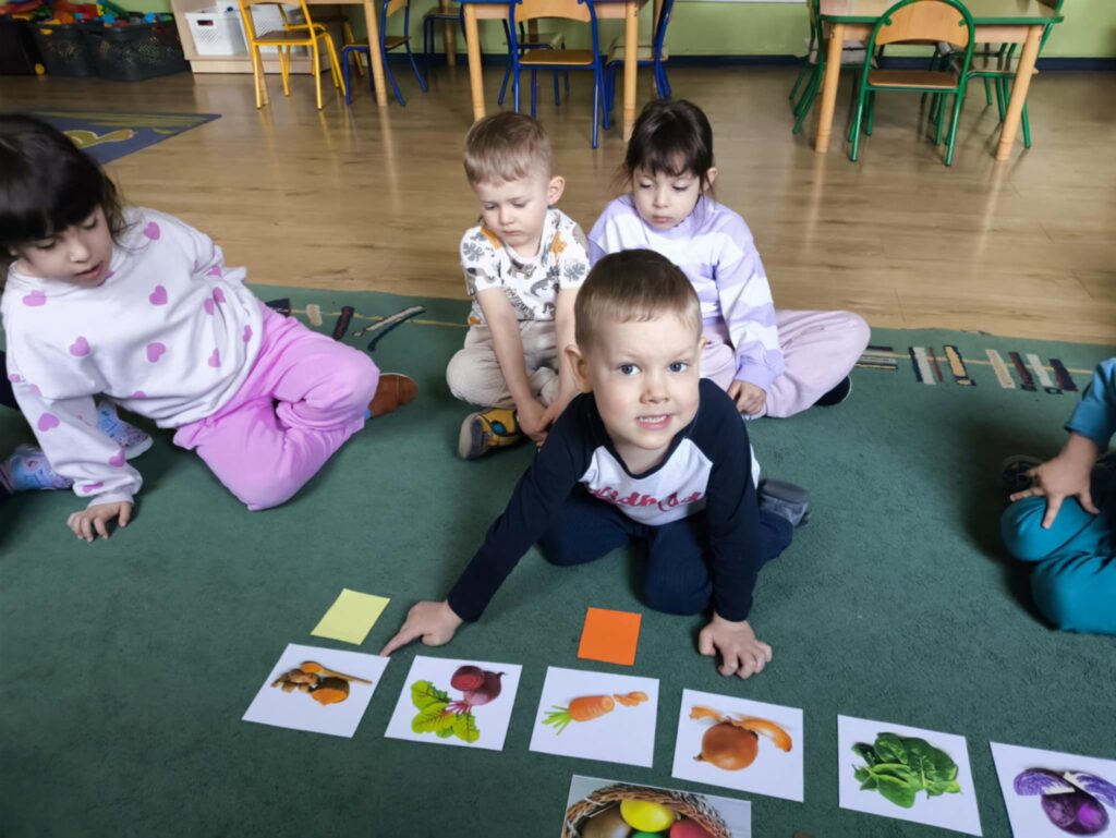 Przed świętami wielkanocnymi rozmawialiśmy o tradycjach związane z tym świętem. Dowiedzieliśmy się, że pisanki mają dużo różnych nazw np. kraszanki, wyklejanki, oklejanki. Przyjrzeliśmy się także w jaki sposób można zabarwić naturalnie jajka. Dzieci podczas przygotowywania swojego koszyczka wielkanocnego, wykonały w domu eksperyment barwienia jajek cebulą, kurkumą
