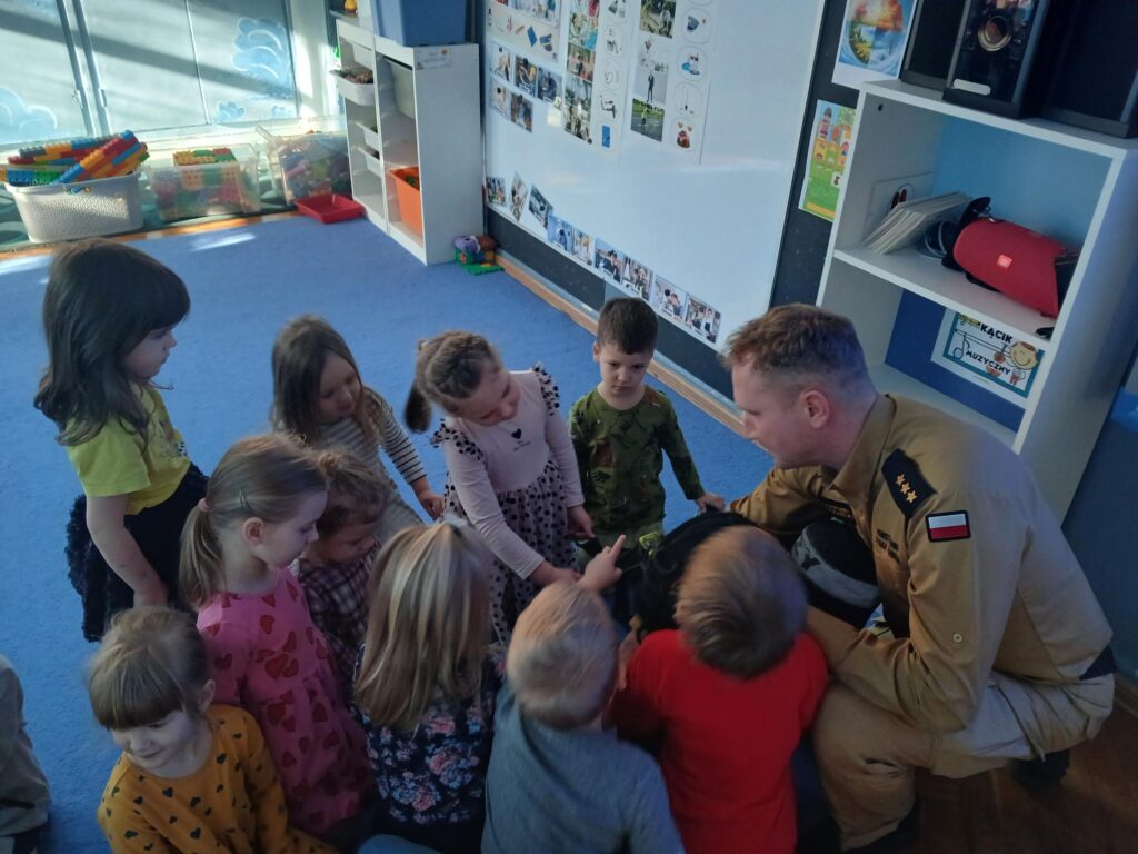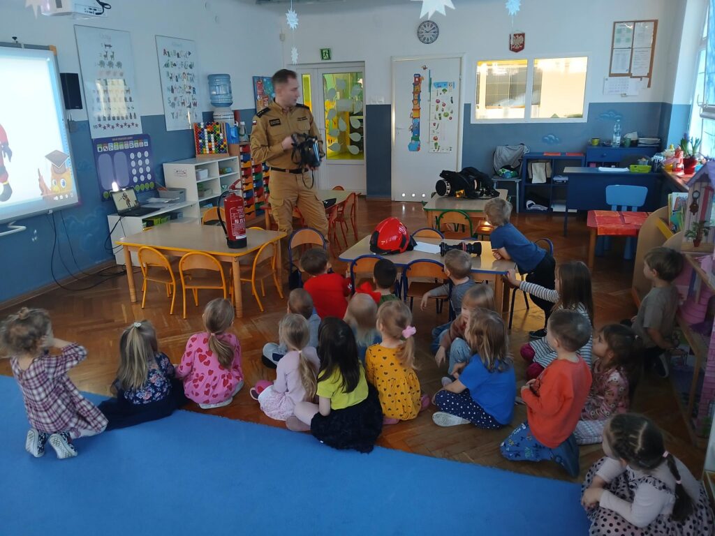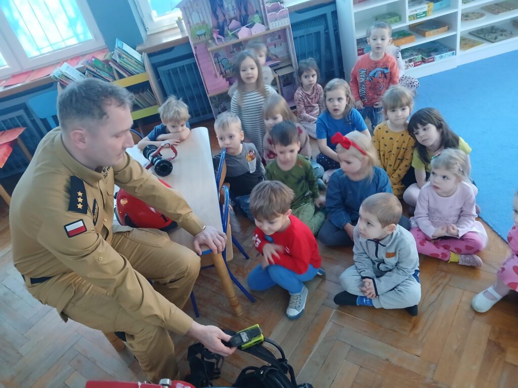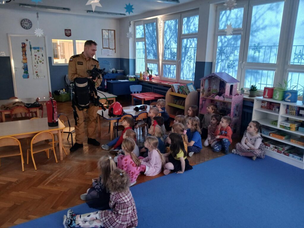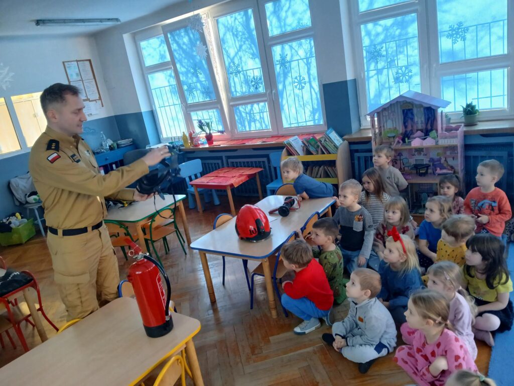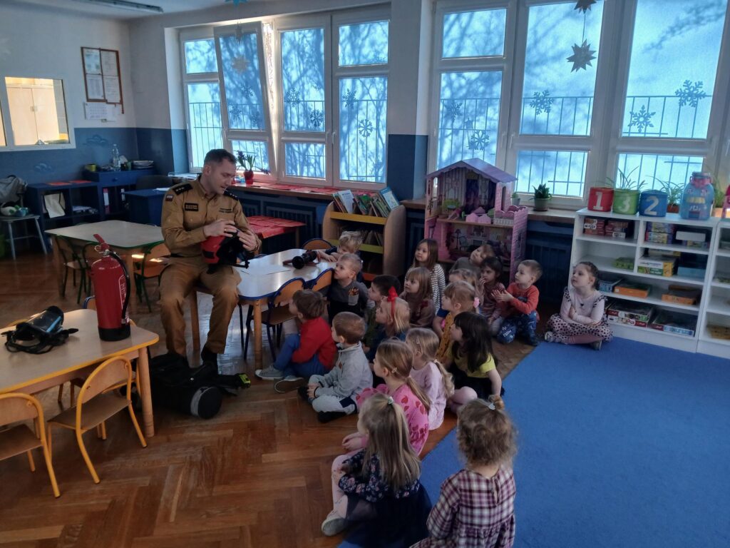 W styczniu u Biedronek odbyło się wyjątkowe spotkanie z tatą Hani, który jest strażakiem. Pan Sławek opowiedział na czym polega jego praca i w jakich akcjach brał udział. Dzieci z zaciekawieniem wysłuchały opowieści o tym trudnym, ważnymi i niebezpiecznym zawodzie. Poznały numer alarmowy, obejrzały strój i sprzęt strażacki. Dziękujemy za prezentację i poświęcony czas.