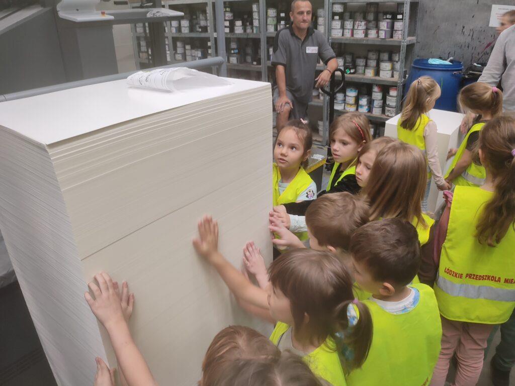 Wielkość urządzeń drukarskich oraz hali fabrycznej wzbudziła u przedszkolaków wielki podziw