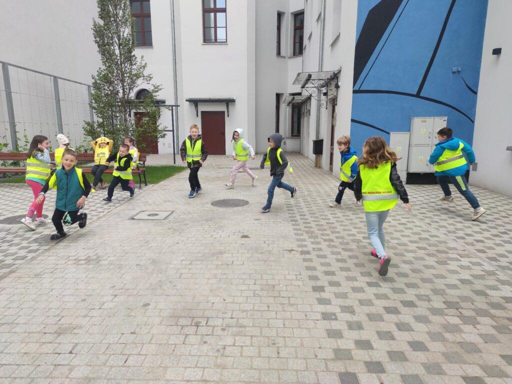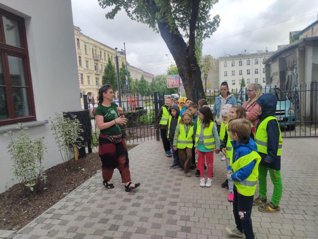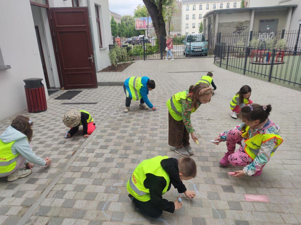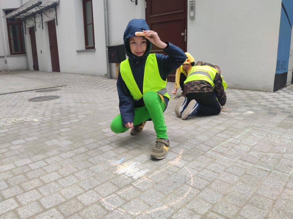 Kiedy dotarliśmy na miejsce Pani Oksana poprosiła nas abyśmy ozdobili kredą chodnik