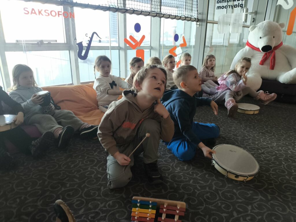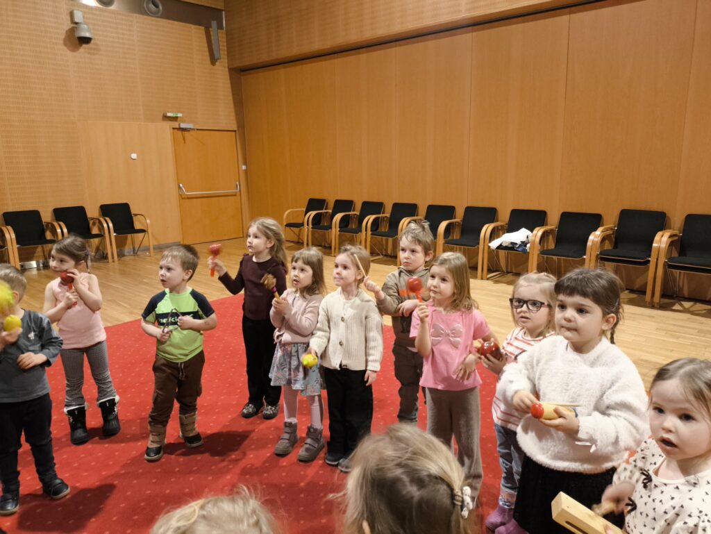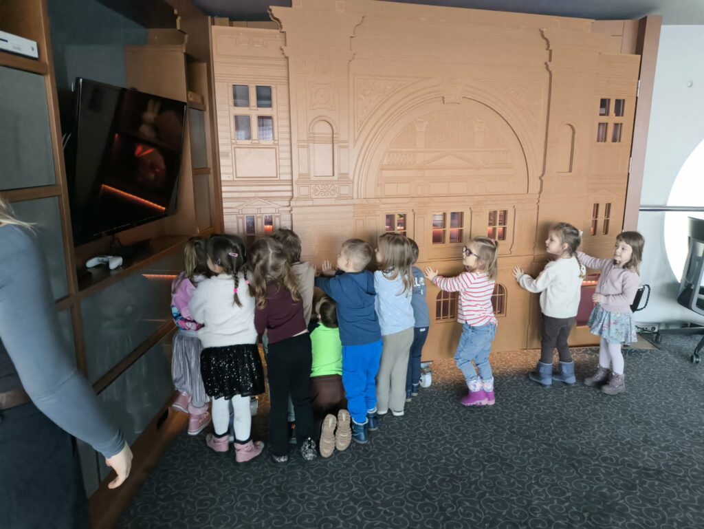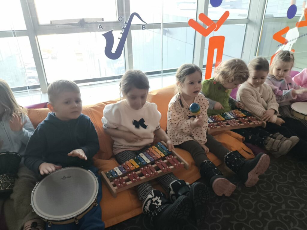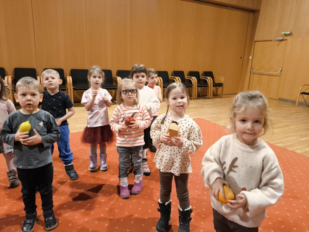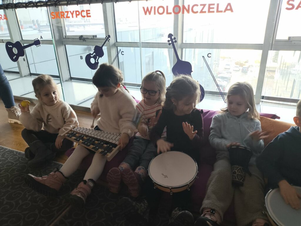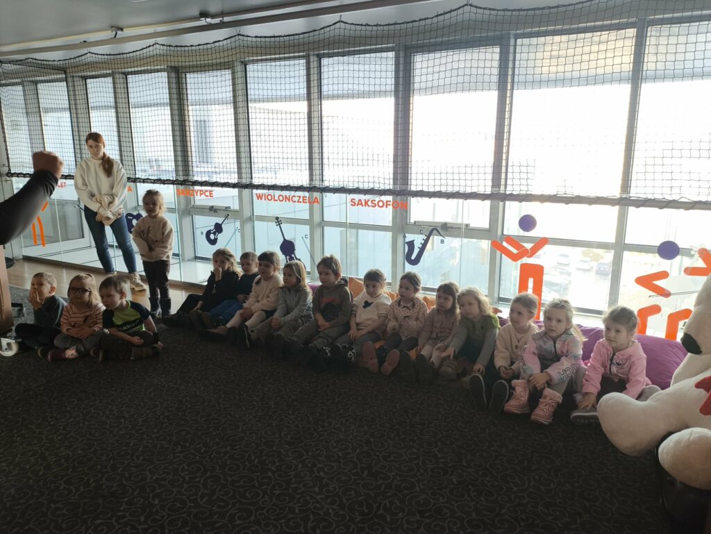 15 stycznia br. wybraliśmy się z grupą Zajączków na wycieczkę do Filharmonii Łódzkiej. W pierwszej kolejności mieliśmy okazję przysłuchać się próbie orkiestry. Na scenie zobaczyliśmy wielu muzyków, którzy przygotowywali się do występu. Następnie pani Julia oprowadziła nas po Filharmonii. Zobaczyliśmy miejsca, które mogą zobaczyć wszyscy, którzy przyjdą na koncert, a także inne zakątki, które dostępne są tylko dla pracowników Filharmonii. Odwiedziliśmy garderobę chóru – tam mogliśmy przymierzyć ich rekwizyty oraz poczuć się jak prawdziwy chórzysta. Dotarliśmy także do bawialni, w której graliśmy na różnych instrumentach. Wzięliśmy udział w warsztatach pt. ,,Mieszka we mnie muzyka”. Dowiedzieliśmy się, że nasze ciało wydaje wiele ciekawych dźwięków. Na koniec Pani Julia zabrała nas w podróż po kontynentach, gdzie mogliśmy usłyszeć charakterystyczną dla nich muzykę, a także spróbować ją zagrać i zatańczyć. Zabawy było co nie miara. Wszyscy bawiliśmy się wspaniale! Joanna Owczarek