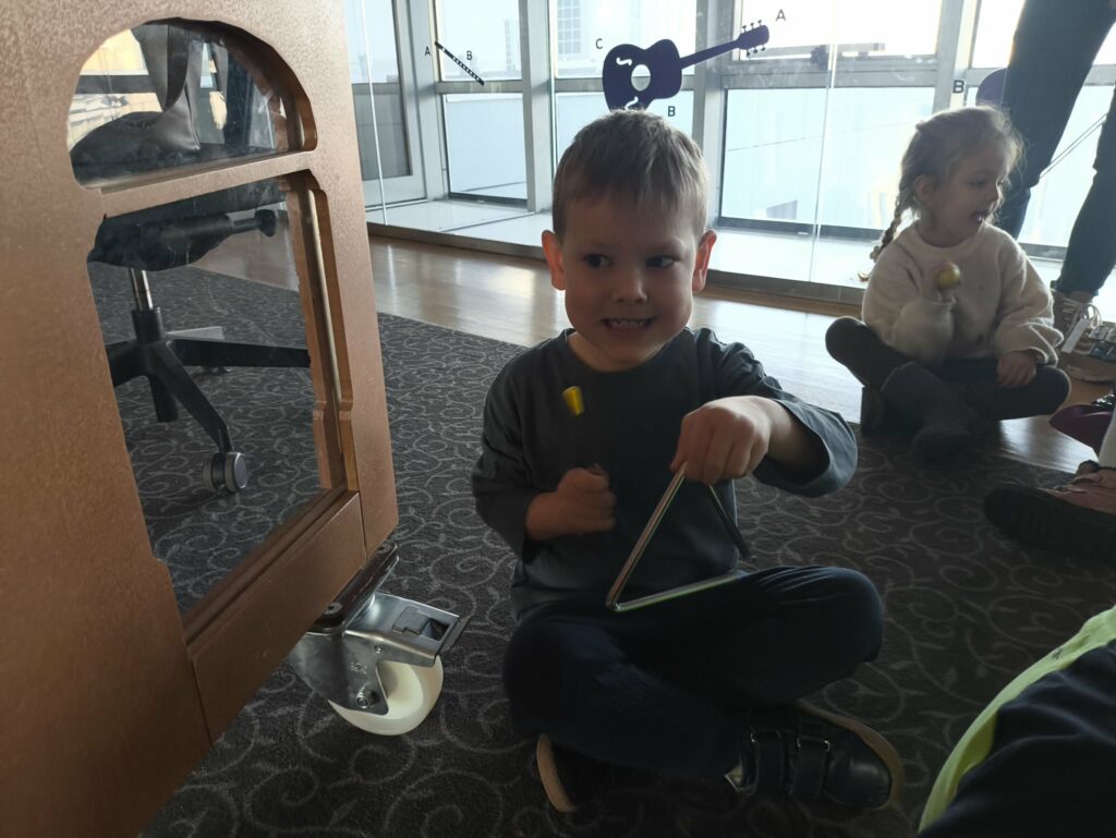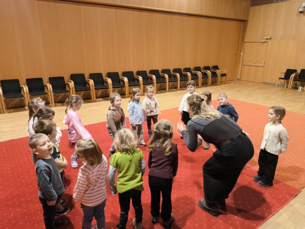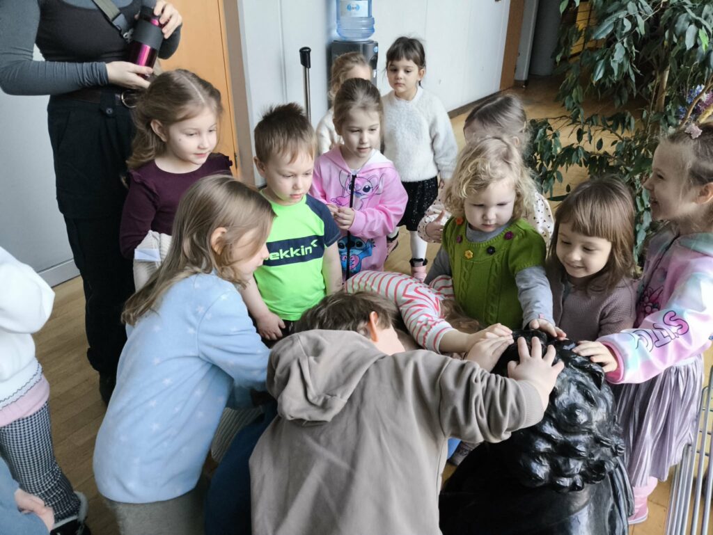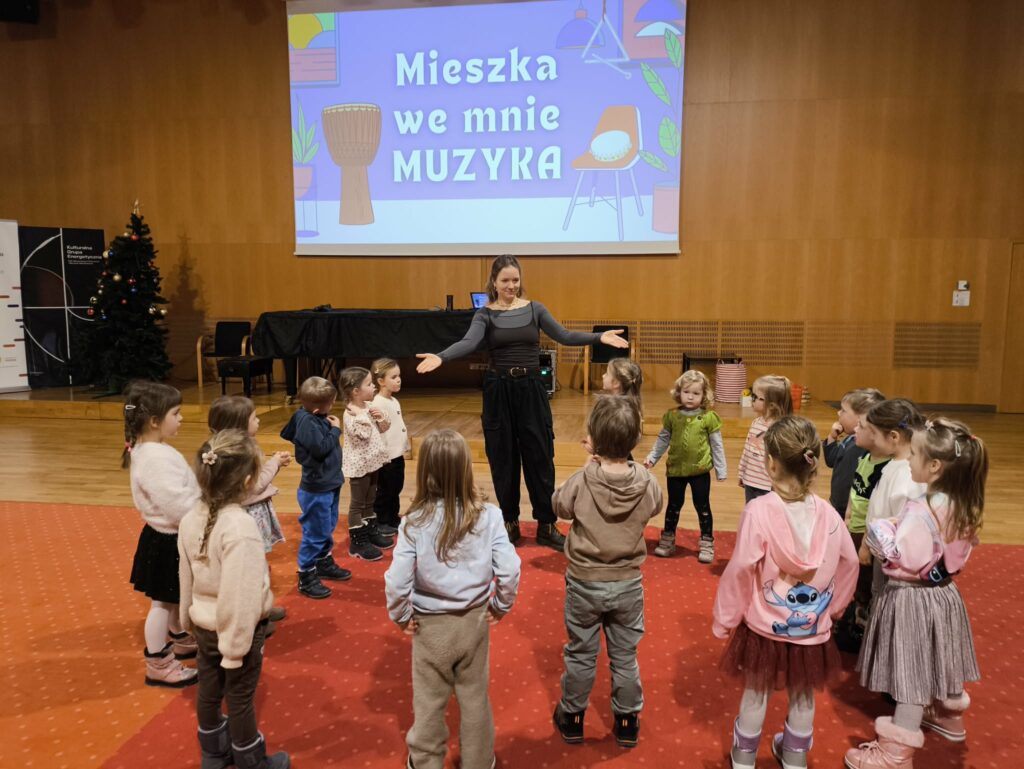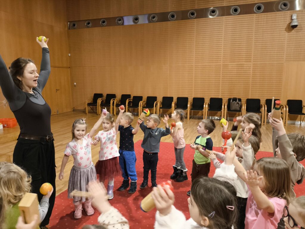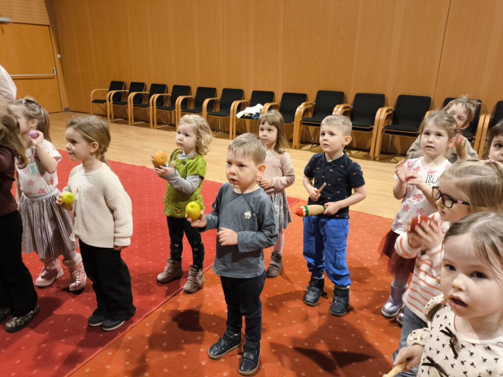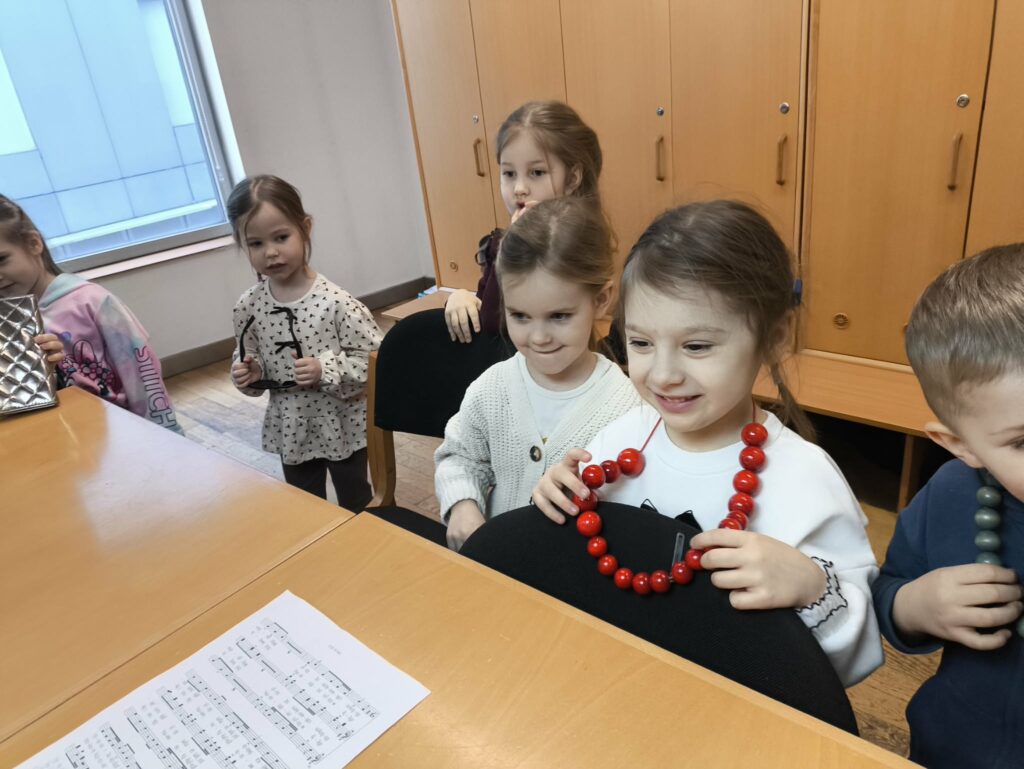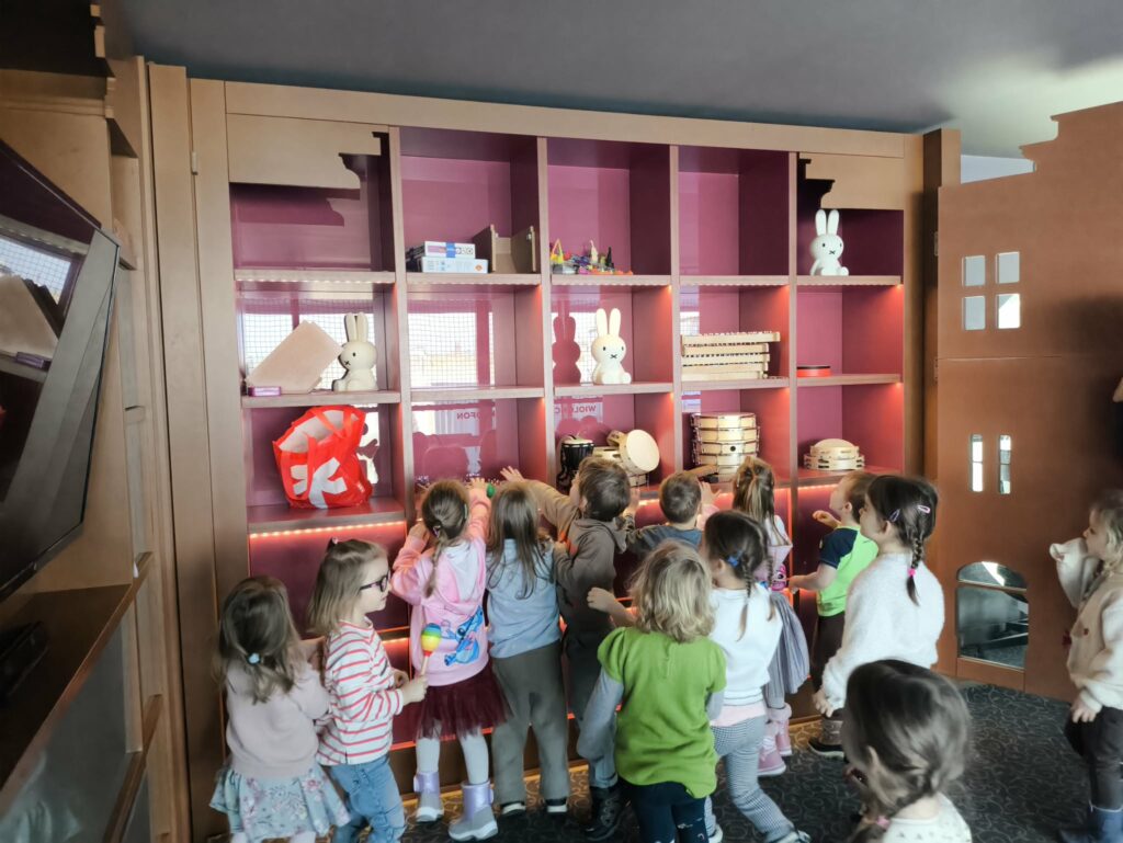 15 stycznia br. wybraliśmy się z grupą Zajączków na wycieczkę do Filharmonii Łódzkiej. W pierwszej kolejności mieliśmy okazję przysłuchać się próbie orkiestry. Na scenie zobaczyliśmy wielu muzyków, którzy przygotowywali się do występu. Następnie pani Julia oprowadziła nas po Filharmonii. Zobaczyliśmy miejsca, które mogą zobaczyć wszyscy, którzy przyjdą na koncert, a także inne zakątki, które dostępne są tylko dla pracowników Filharmonii. Odwiedziliśmy garderobę chóru – tam mogliśmy przymierzyć ich rekwizyty oraz poczuć się jak prawdziwy chórzysta. Dotarliśmy także do bawialni, w której graliśmy na różnych instrumentach. Wzięliśmy udział w warsztatach pt. ,,Mieszka we mnie muzyka”. Dowiedzieliśmy się, że nasze ciało wydaje wiele ciekawych dźwięków. Na koniec Pani Julia zabrała nas w podróż po kontynentach, gdzie mogliśmy usłyszeć charakterystyczną dla nich muzykę, a także spróbować ją zagrać i zatańczyć. Zabawy było co nie miara. Wszyscy bawiliśmy się wspaniale! Joanna Owczarek