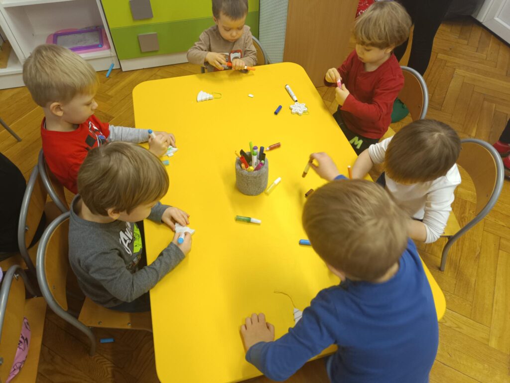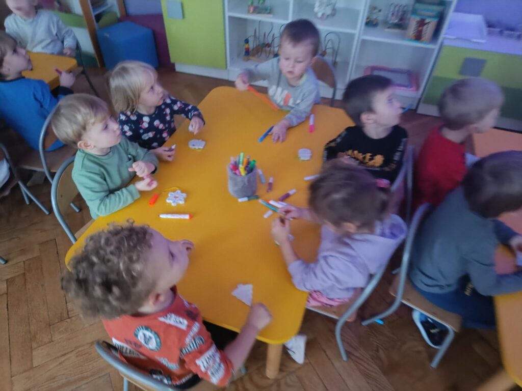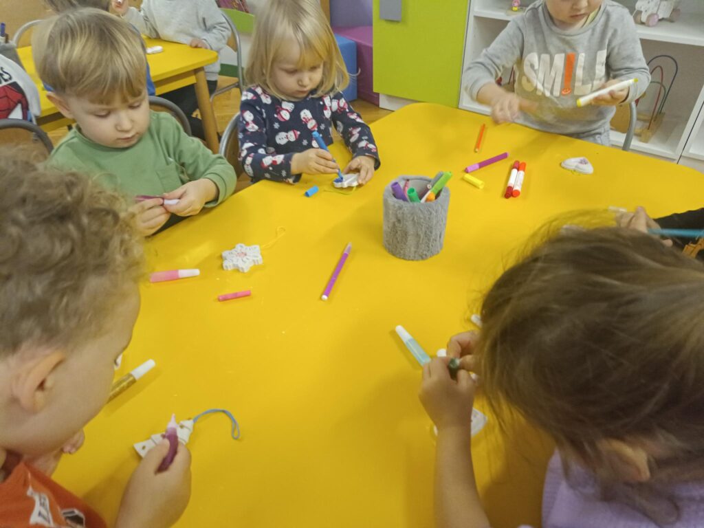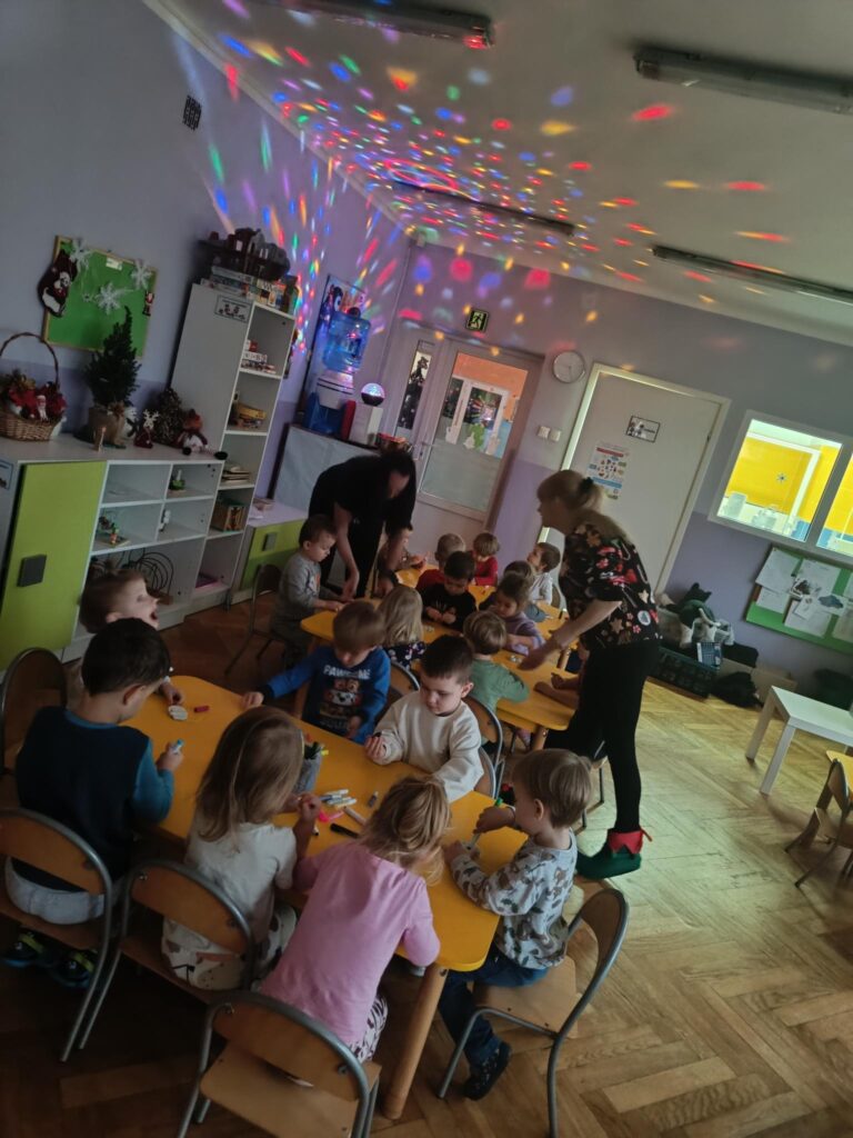 We wtorek 10 listopada w grupie misiów odbyły się warsztaty . Dzieci wysłuchały bajki pt.,, Pierwsza gwiazdka Świętego Mikołaja” oraz ,,Tajemnica Świętego Mikołaja”. Następnie ozdobiliśmy przygotowane bombki, słuchając przy tym świątecznych piosenek.