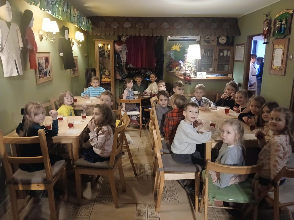W piątek, 12 grudnia dzieci z grupy Zajączków i Sów wybrały się do Baśniowej Kawiarenki na spektakl pt: ,,Wesoła Nowina”. Podczas przedstawienia dzieci miały okazje poznać tajemnicę Bożego Narodzenia , zrozumieć charakter wigilijnej nocy oraz wzajemnego wybaczania. W przedstawieniu biorą udział Pastuszkowie, Herod, Aniołowie, Diabeł oraz Święta Rodzina do której przybywają baśniowi goście. W pewien sposób dzieci również mogły wziąć udział w spektaklu śpiewając z Aktorami kolędy. Na koniec czekał nas słodki poczęstunek.