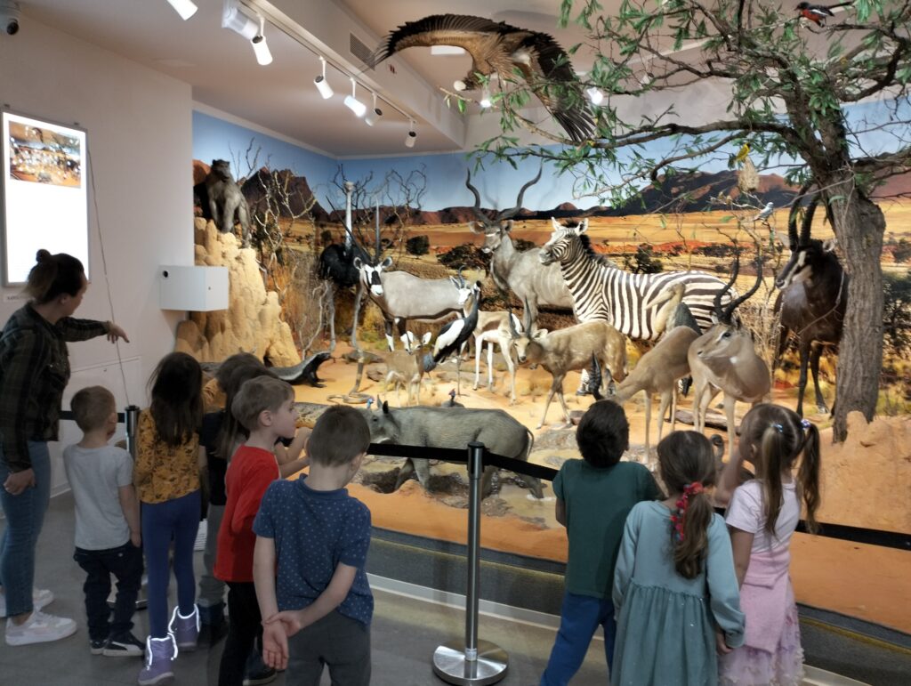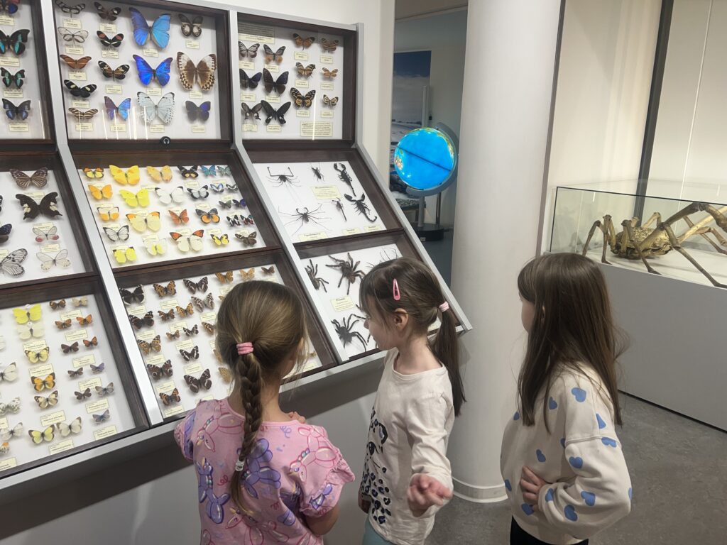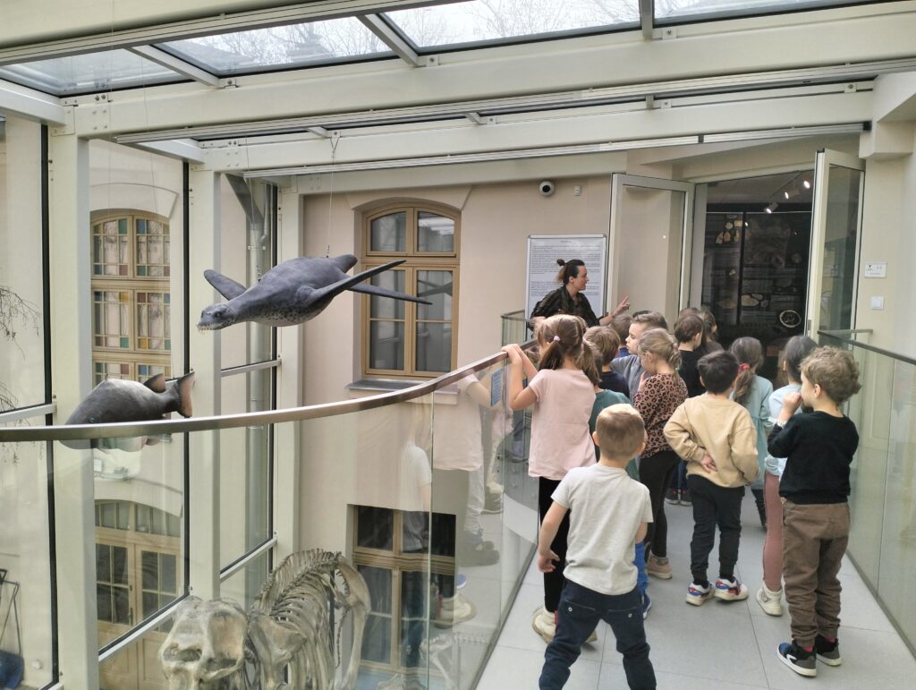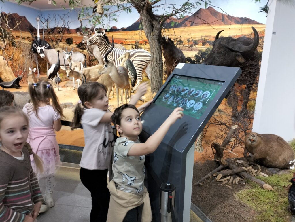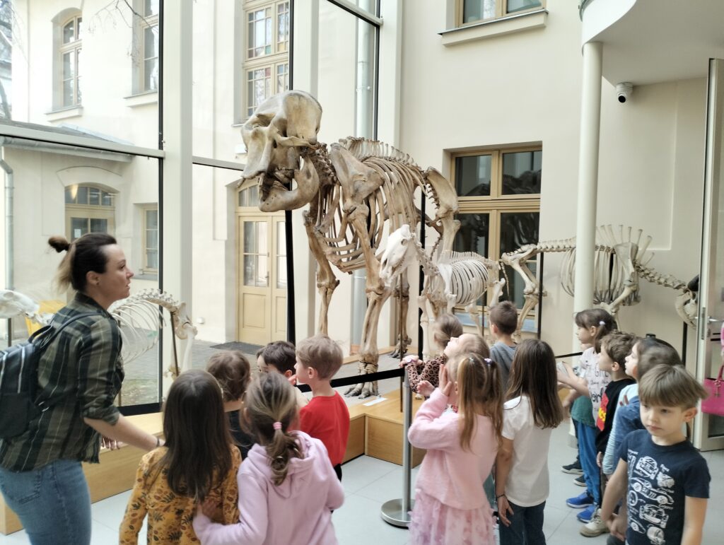 Na początku marca dzieci z grupy Zajączków i Wiewiórek wybrały się na wycieczkę do Muzeum Przyrodniczego Uniwersytetu Łódzkiego, które mieści się w pięknym parku im. Henryka Sienkiewicza w Łodzi. Przedszkolaki miały okazję zobaczyć z bliska przedstawicieli fauny żyjących na wszystkich kontynentach, zarówno na ladzie, w wodzie, jak i w powietrzu. Dzieci z zainteresowaniom przyglądały się kościom, szkieletom, wykopaliskom, ale przede wszystkim podziwiały różne rodzaje zwierząt, które zamieszkiwały bądź nadal zamieszkują naszą planetę. To była wspaniała wycieczka, podczas której wiele się nauczyliśmy.