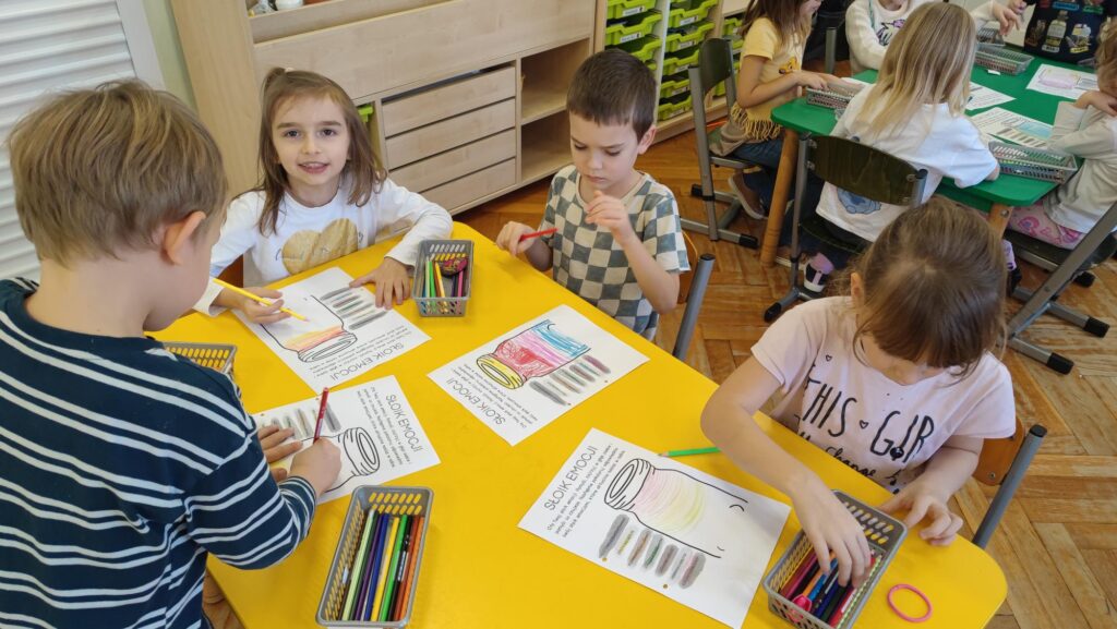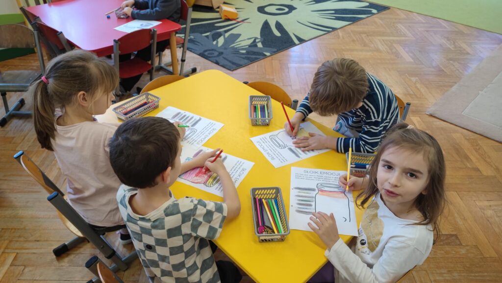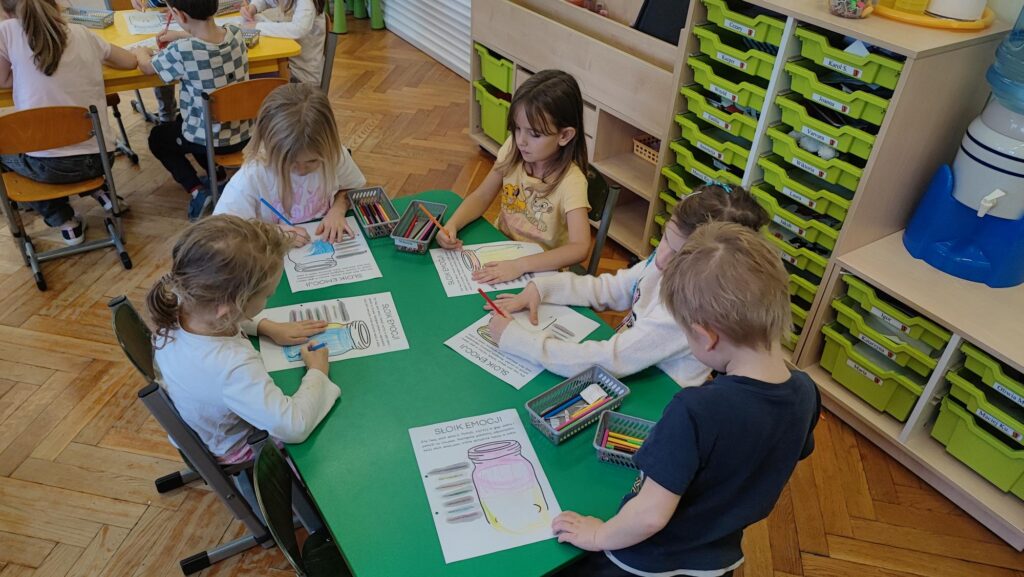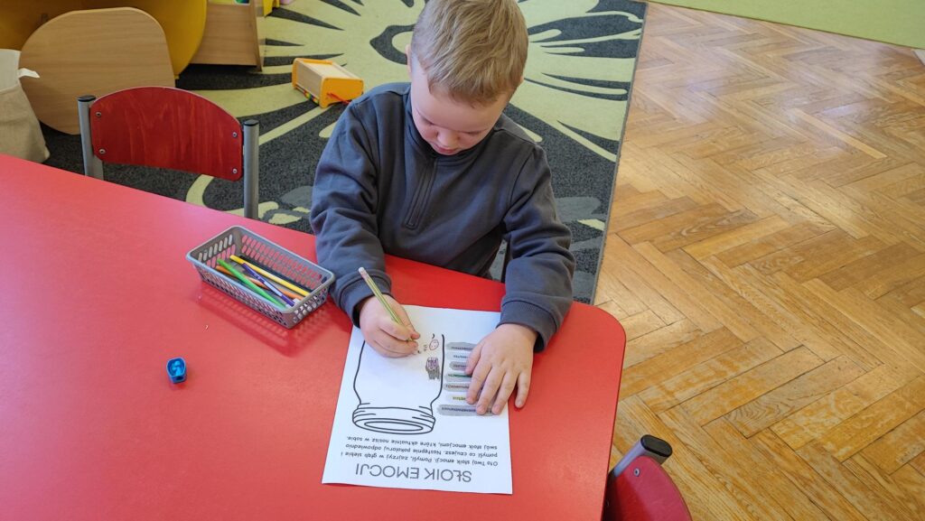 22.listopada odbyły się w naszej grupie warsztaty o emocjach. Zajęcia prowadzone były przez naszą panią psycholog. Dzieci rozpoznawały i nazywały różne emocje oraz opisywały własne doświadczenia z nimi związane. Każdy z uczestników wykonał swój własny słoik emocji, który wypełnił swoimi odczuciami odzwierciedlając je w postaci kolorów. Na końcu odbyła się prezentacja słoików.