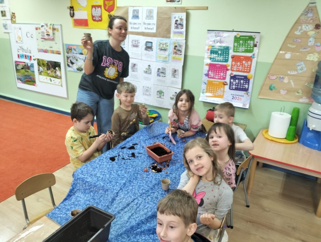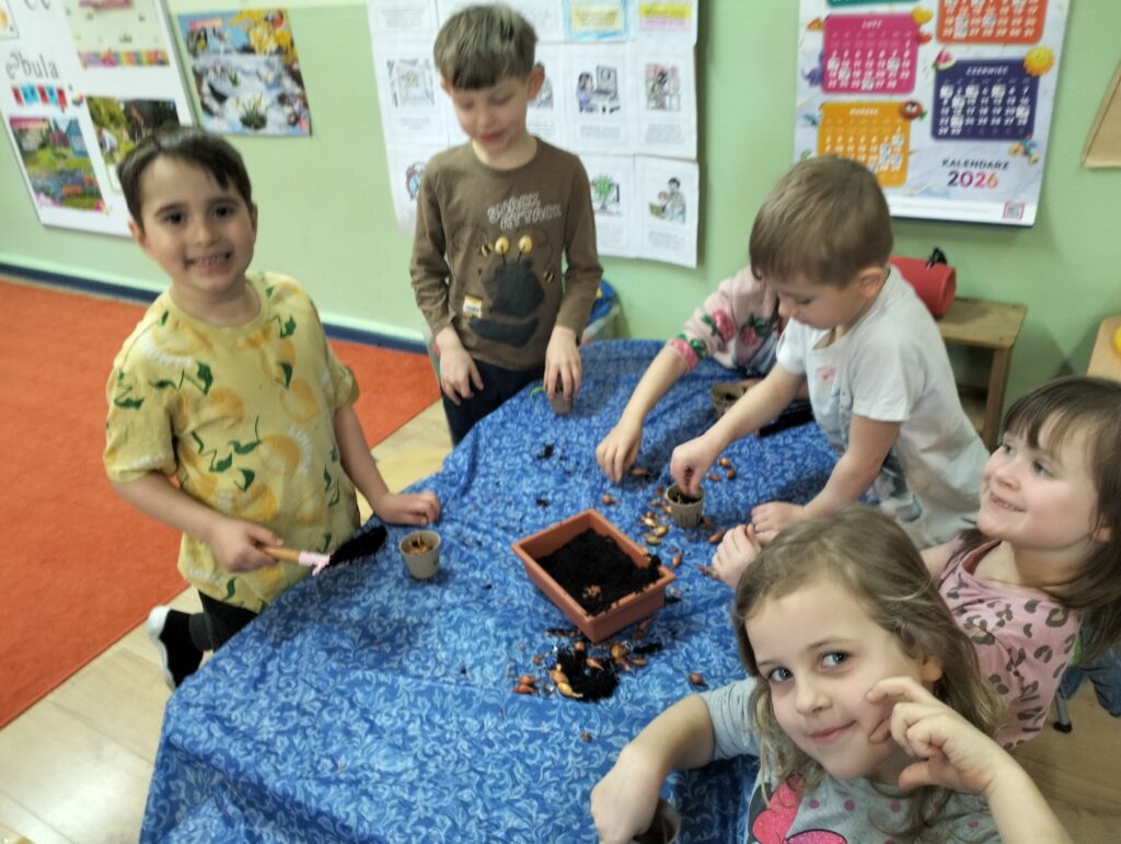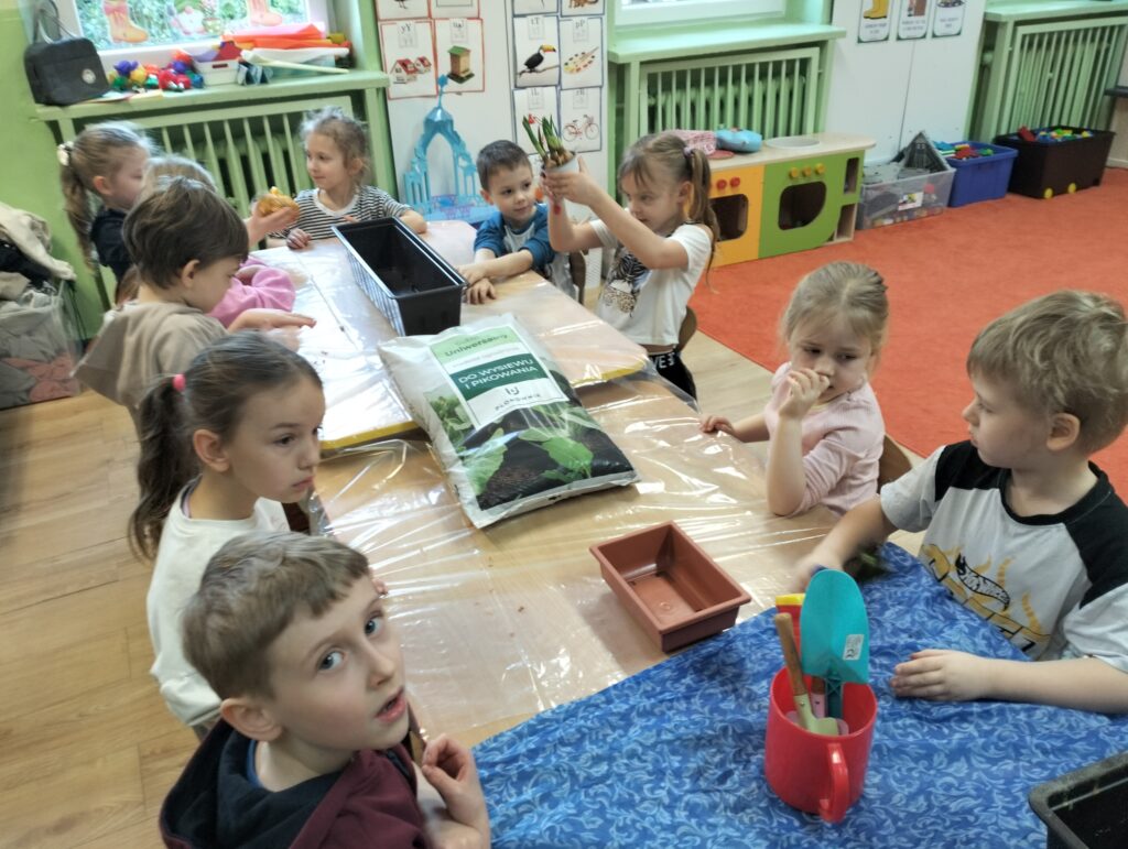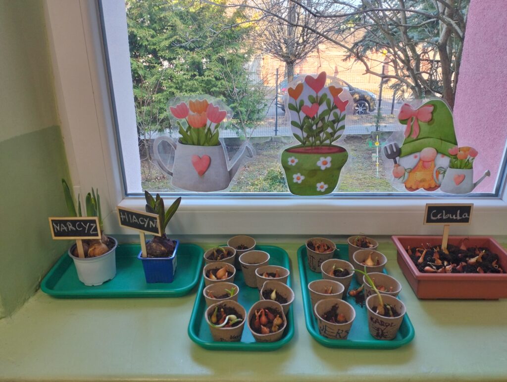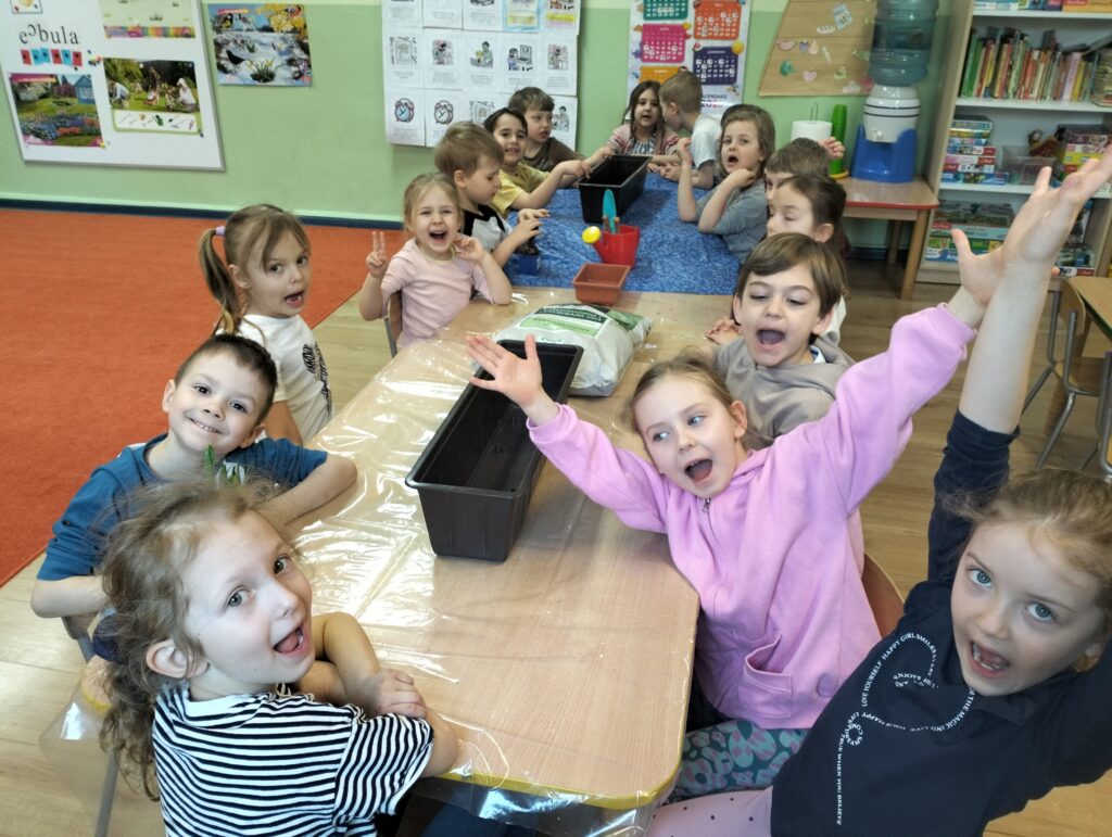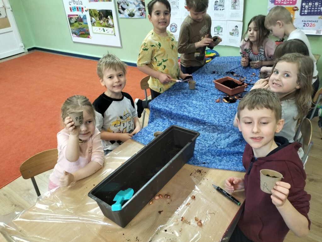W pierwszej połowie marca dzieci z grupy Sów postanowiły zaprosić wiosnę do naszej sali i zrealizowały kolejne zadanie w ramach programu ,,Skąd się biorą produkty ekologiczne?”. Tym razem przedszkolaki zamienili się w małych ogrodników i założyły w sali zielony ogródek. Przed przystąpieniem do pracy przypomnieliśmy sobie, co jest potrzebne roślinom do prawidłowego wzrostu i zabraliśmy się za sadzenie. W doniczkach znalazły się cebulki, fasola i piękne kwiaty. Teraz pozostaje tylko czekać, aż nasze roślinki wyrosną.