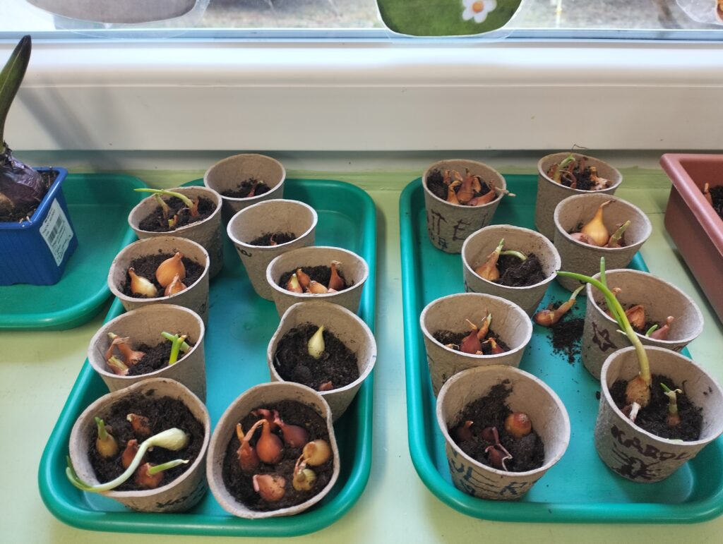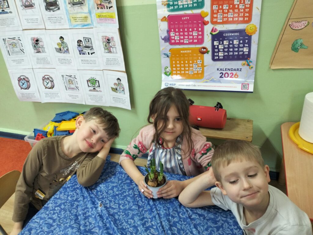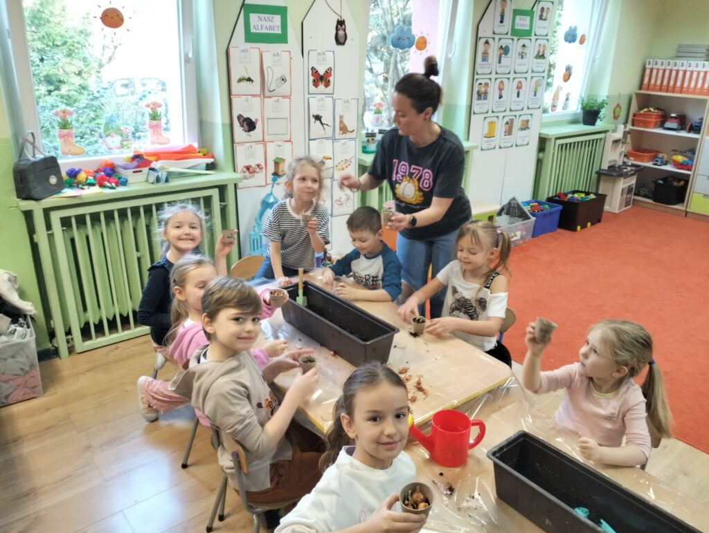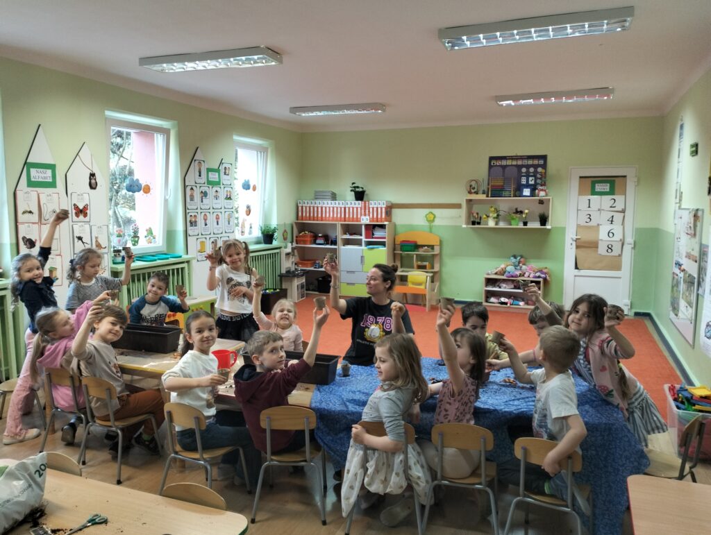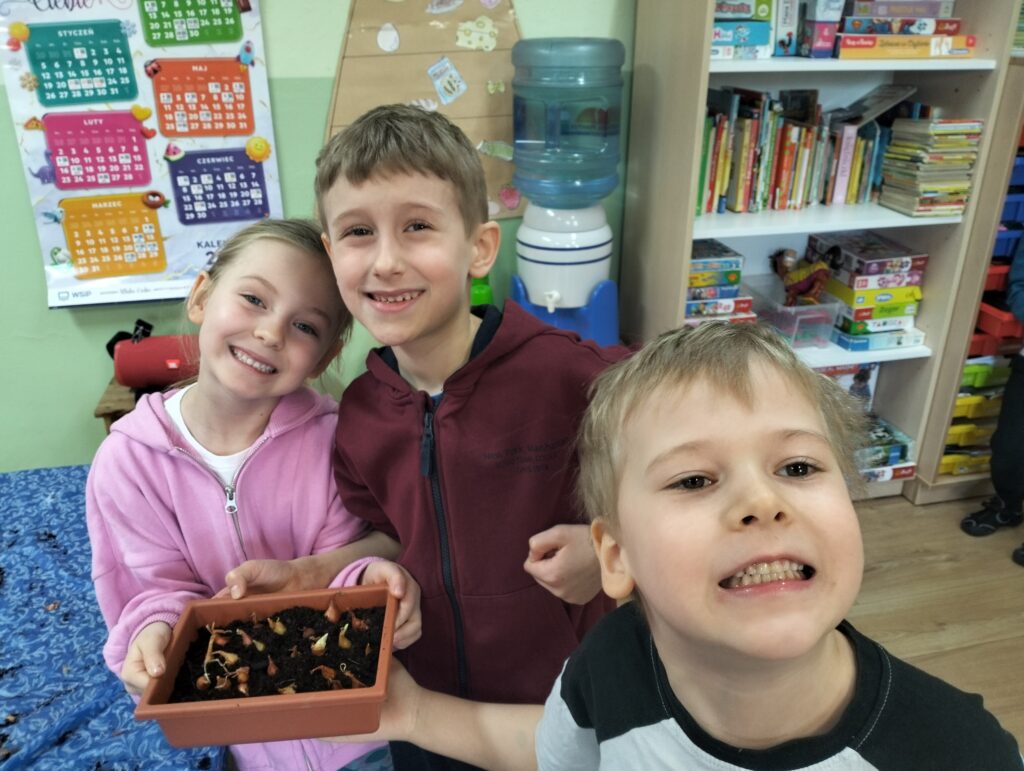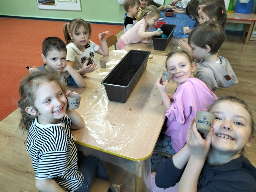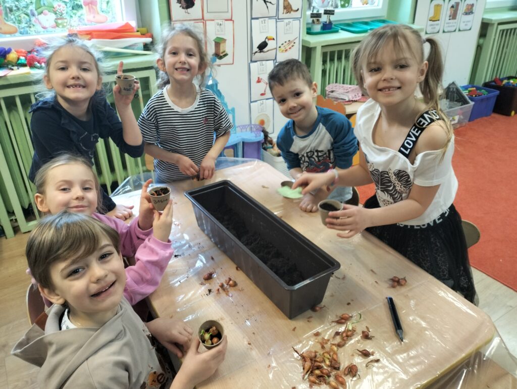 W pierwszej połowie marca dzieci z grupy Sów postanowiły zaprosić wiosnę do naszej sali i zrealizowały kolejne zadanie w ramach programu ,,Skąd się biorą produkty ekologiczne?”. Tym razem przedszkolaki zamienili się w małych ogrodników i założyły w sali zielony ogródek. Przed przystąpieniem do pracy przypomnieliśmy sobie, co jest potrzebne roślinom do prawidłowego wzrostu i zabraliśmy się za sadzenie. W doniczkach znalazły się cebulki, fasola i piękne kwiaty. Teraz pozostaje tylko czekać, aż nasze roślinki wyrosną.
